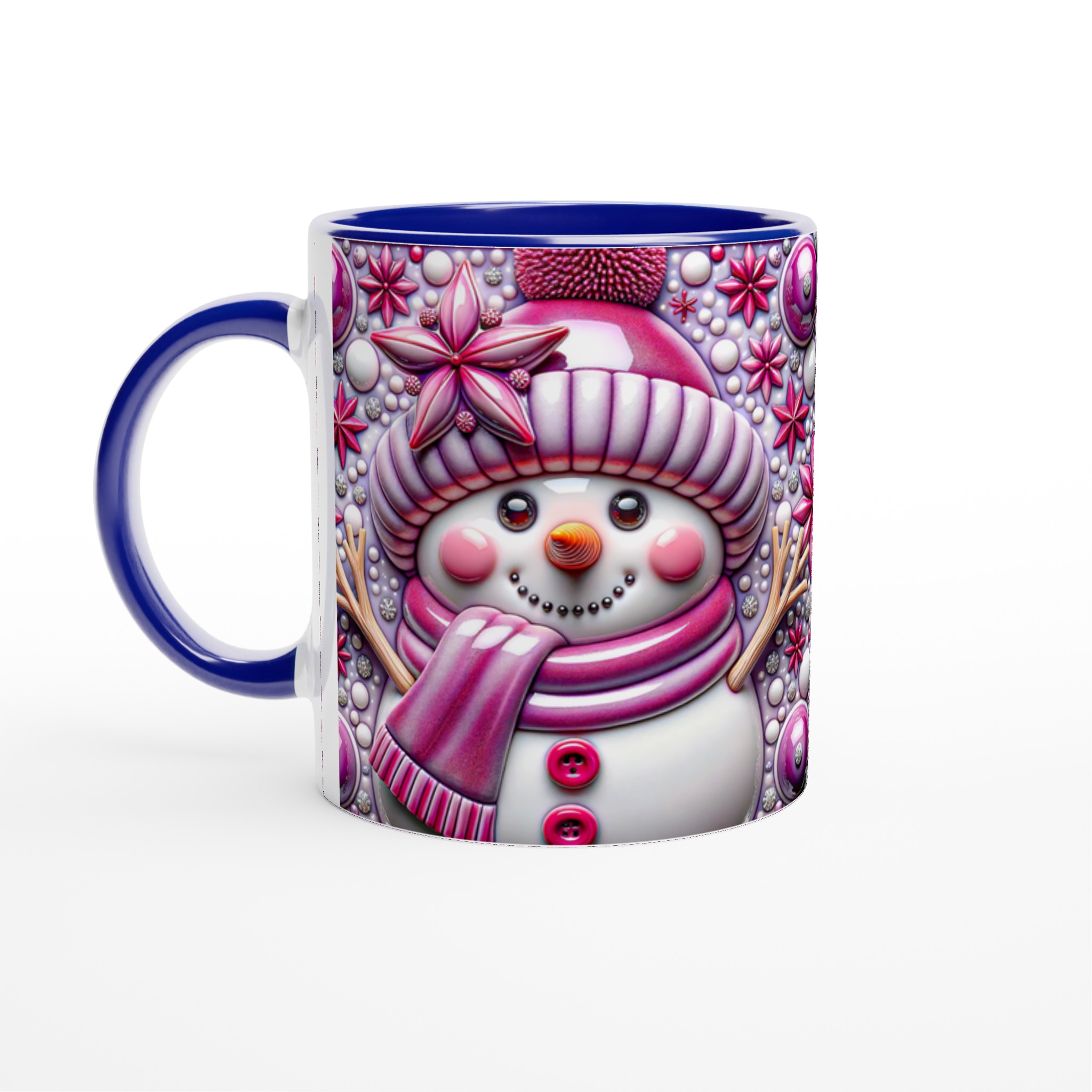 Sparkling Winter Snowman 11oz Ceramic Mug – Whimsical Pink & Purple Holiday Design