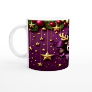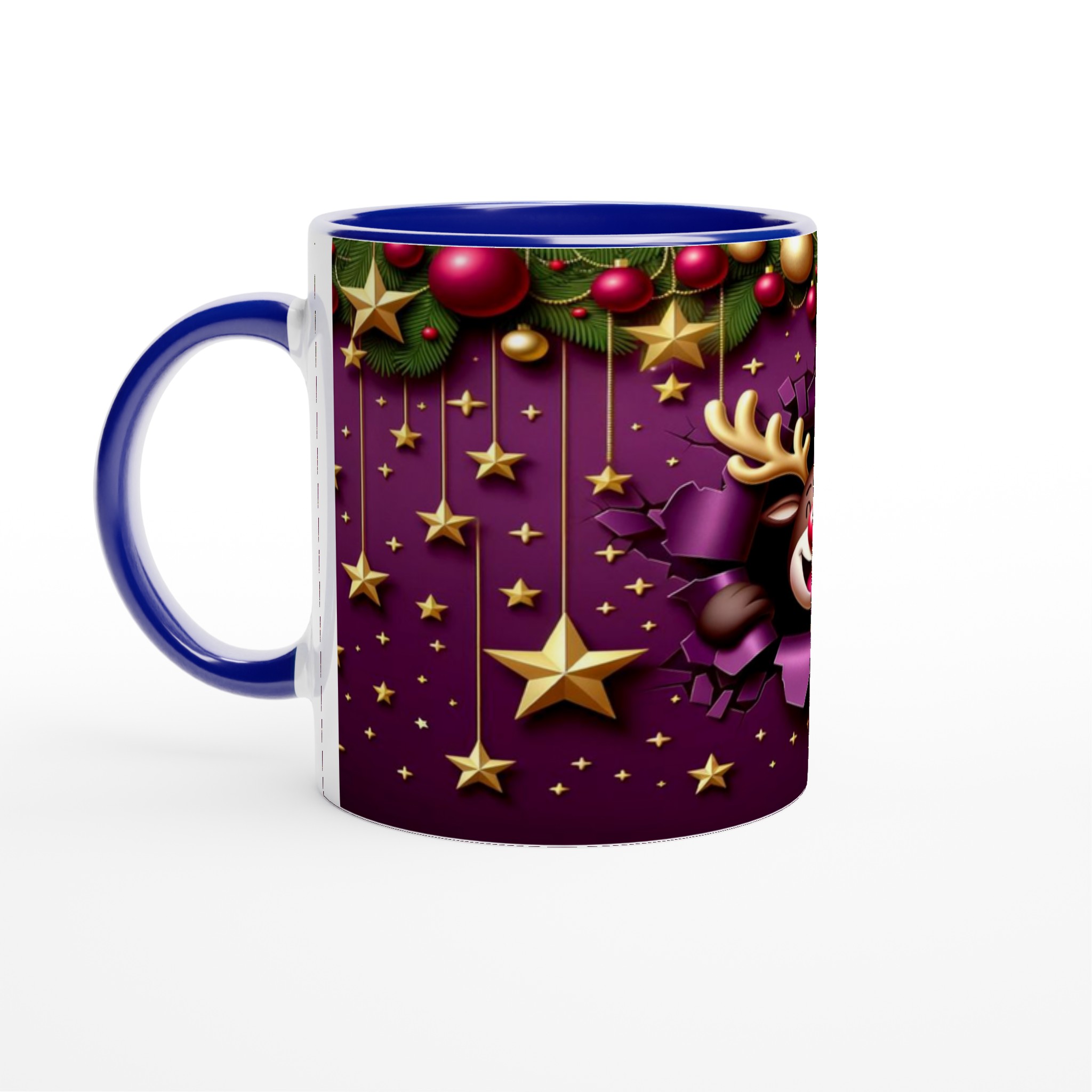 Jolly Reindeer Burst Christmas 11oz Ceramic Mug – Choose Your Holiday Hue!