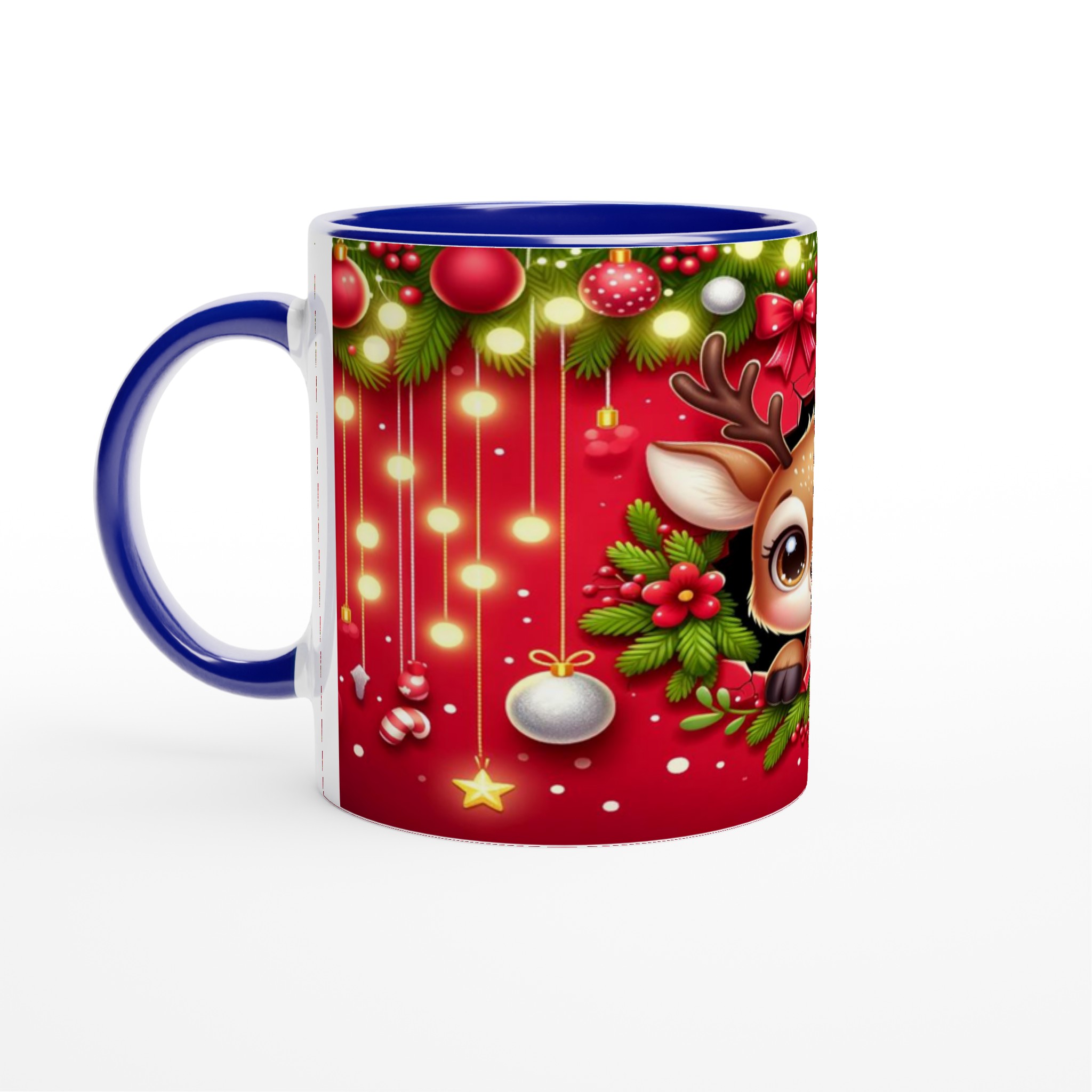 Charming Reindeer Christmas Mug – Festive 11oz Ceramic Mug in Your Choice of Seven Vibrant Hues