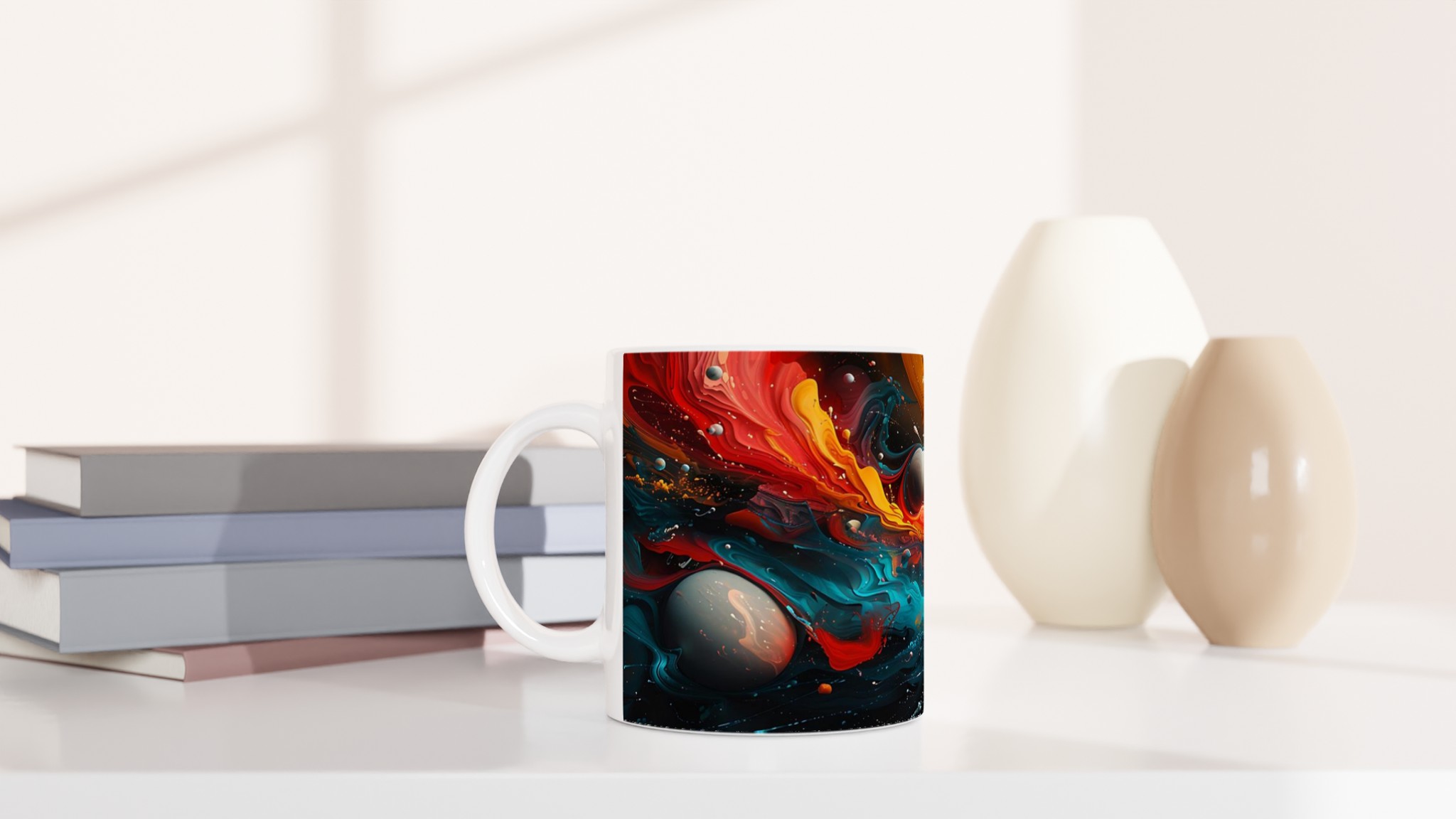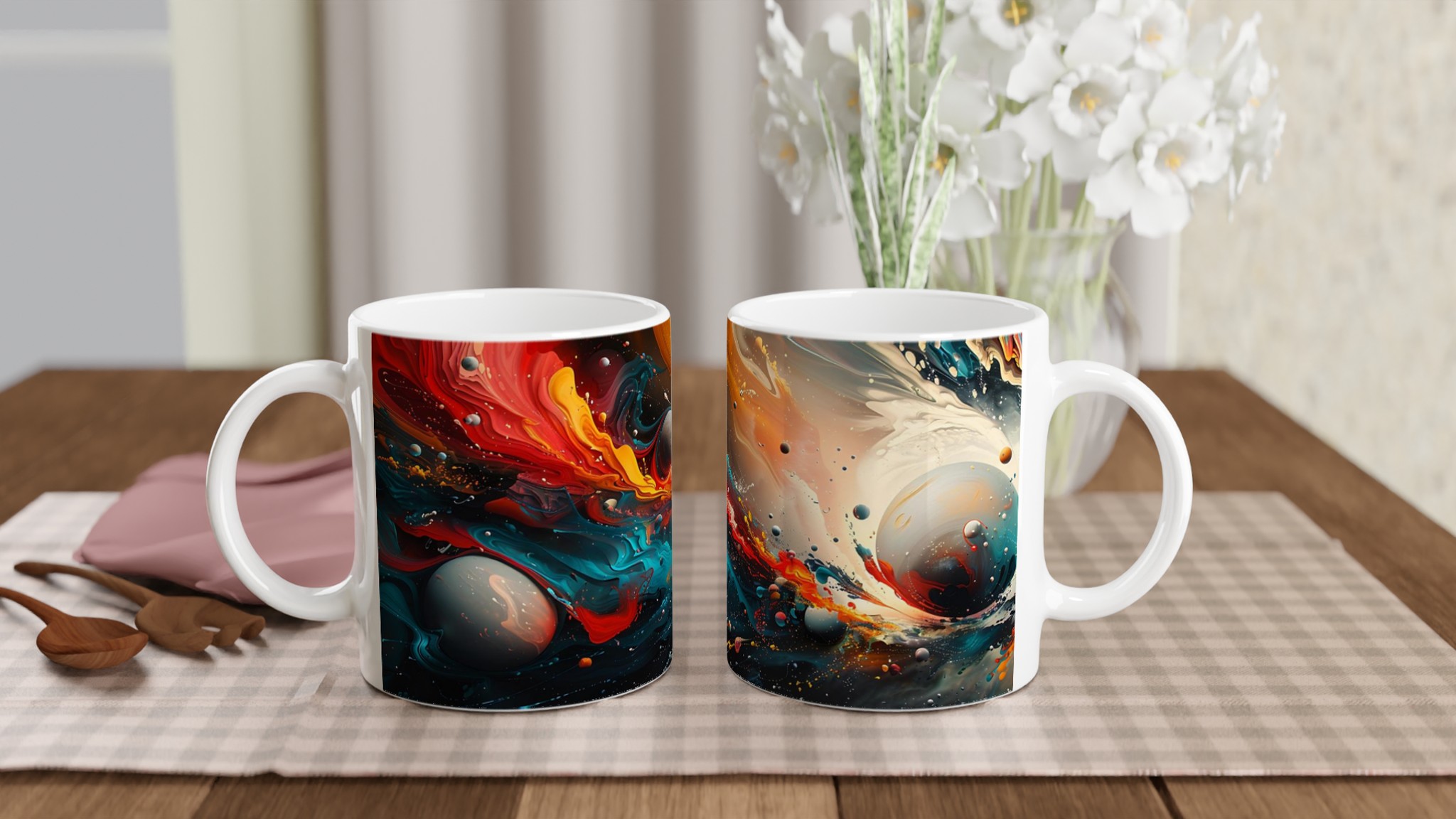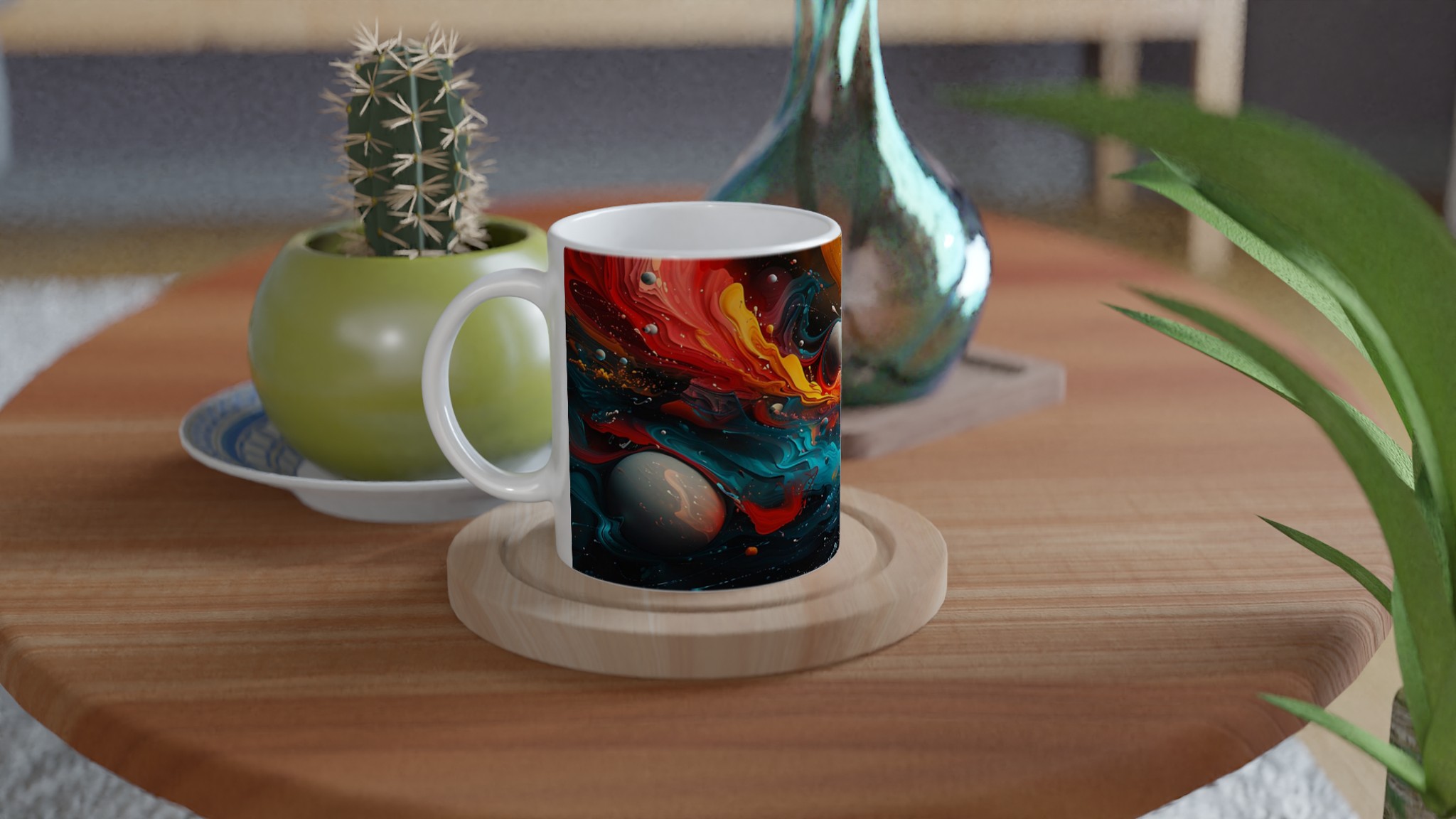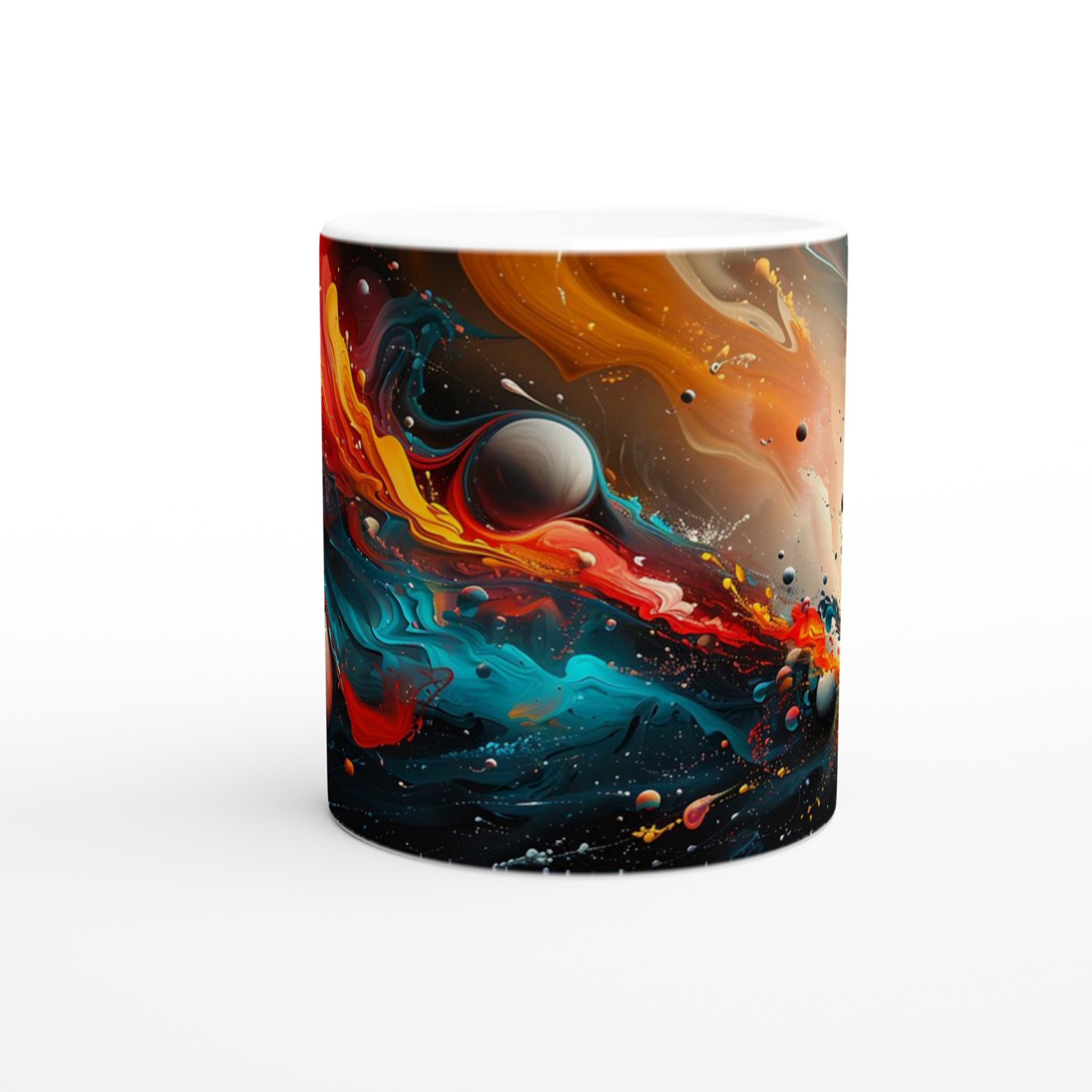 Cosmic Swirls – Vibrant Abstract Ceramic Mug, 11oz – Choose Your Base Color!
