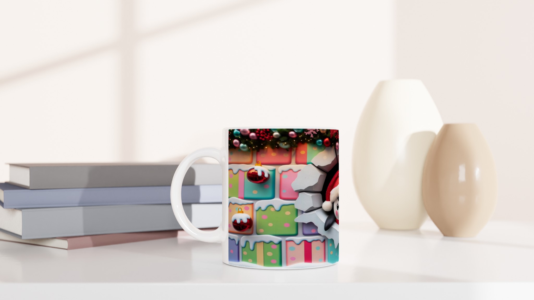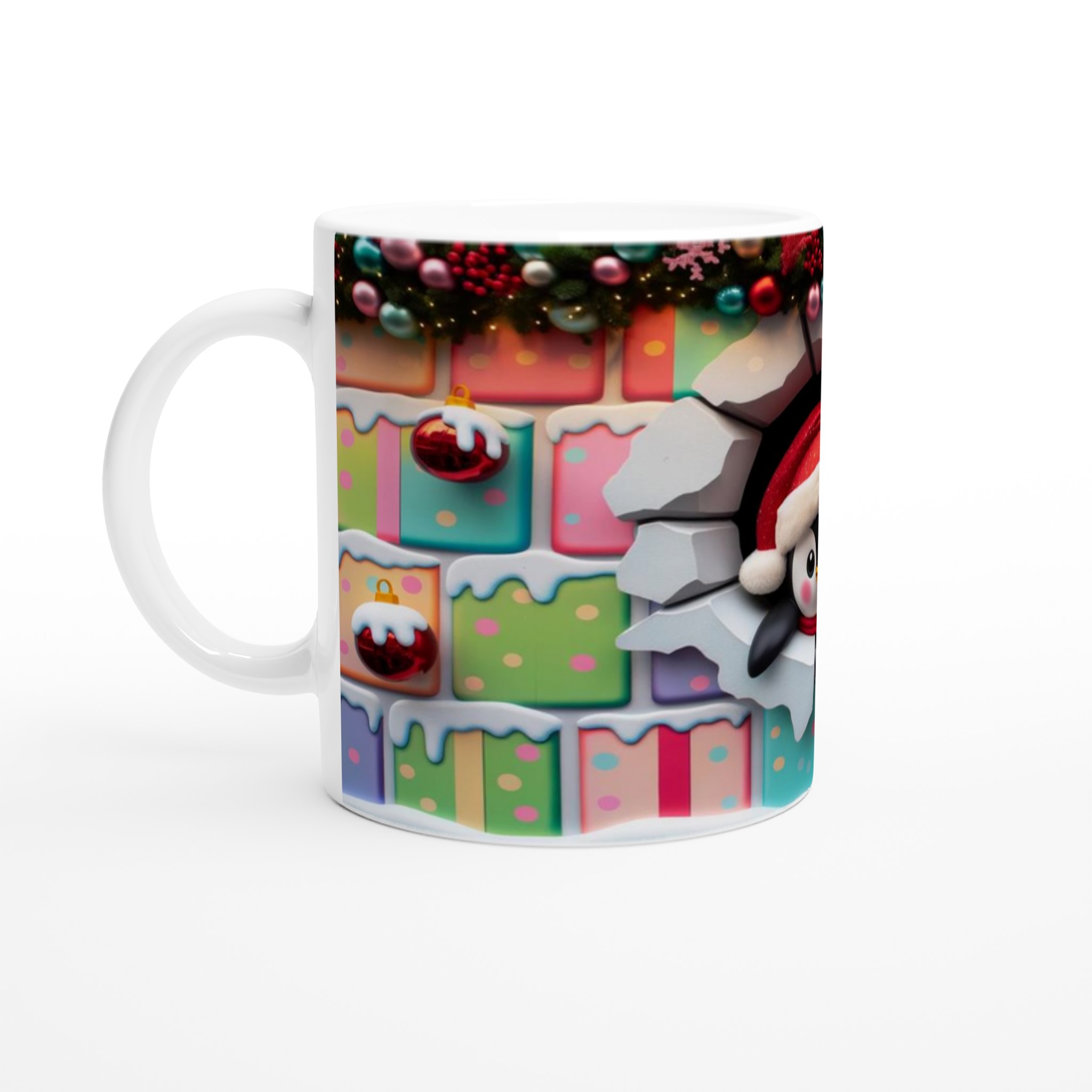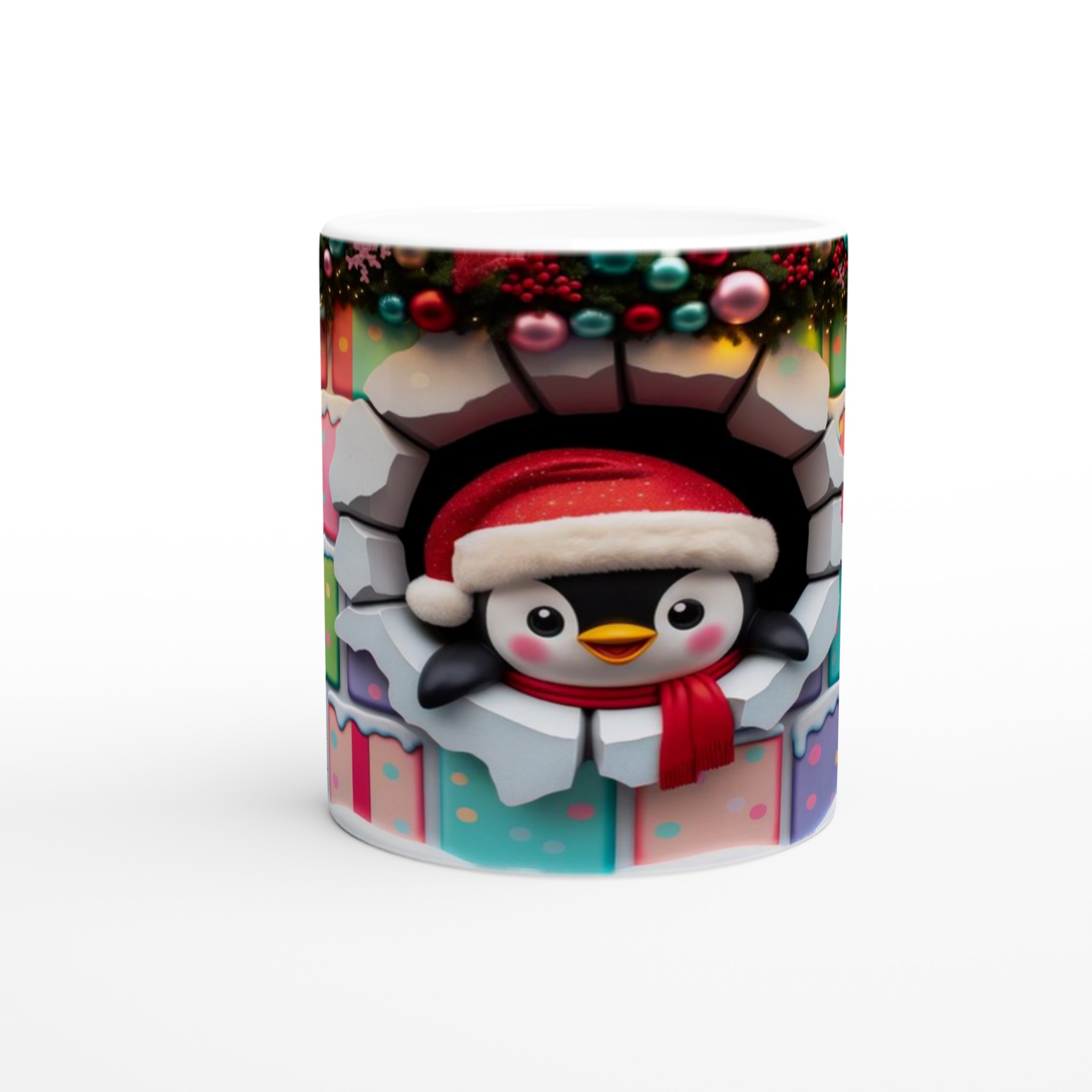 Cute Holiday Penguin Peek-a-Boo 11oz Ceramic Mug – Dishwasher & Microwave Safe for Cozy Sips!