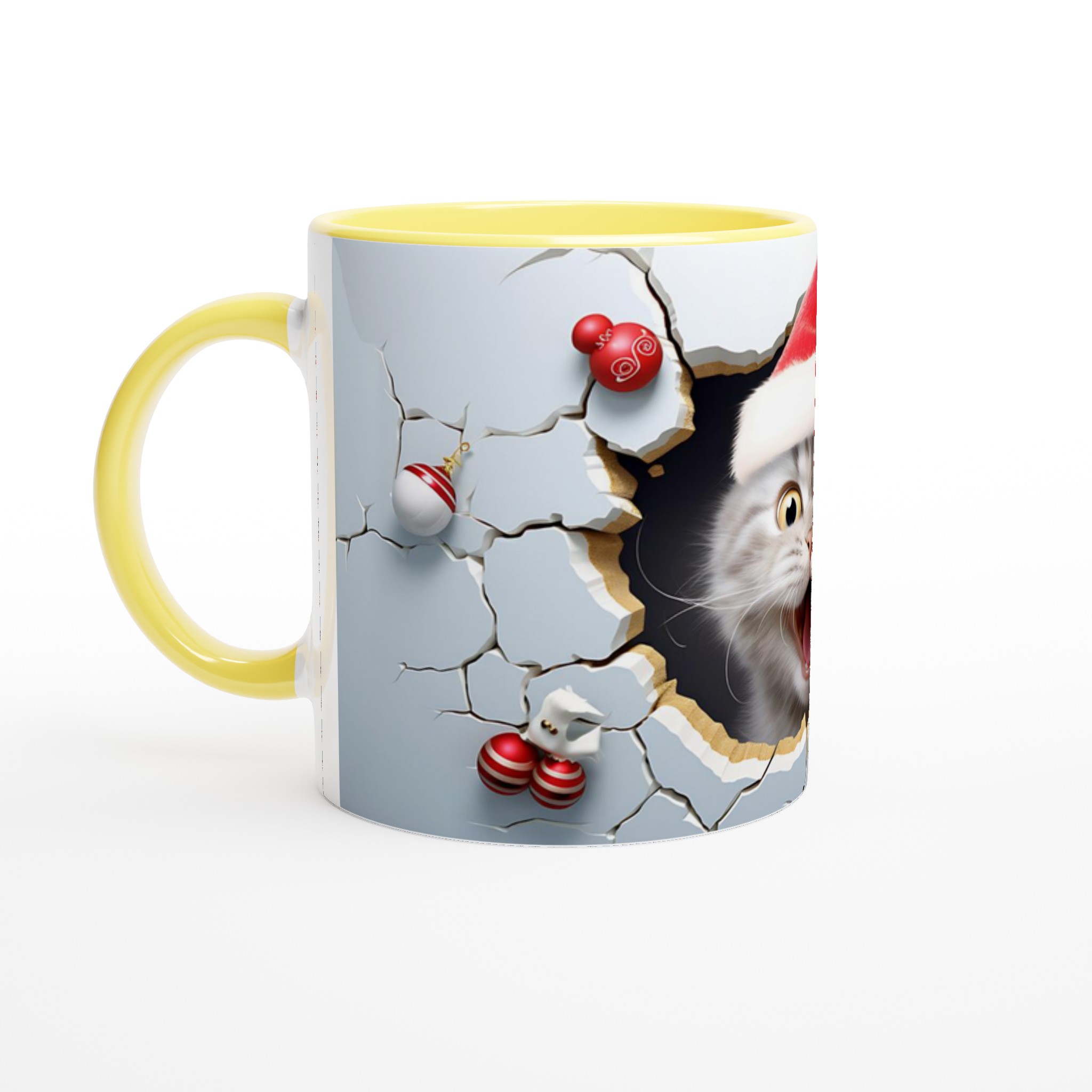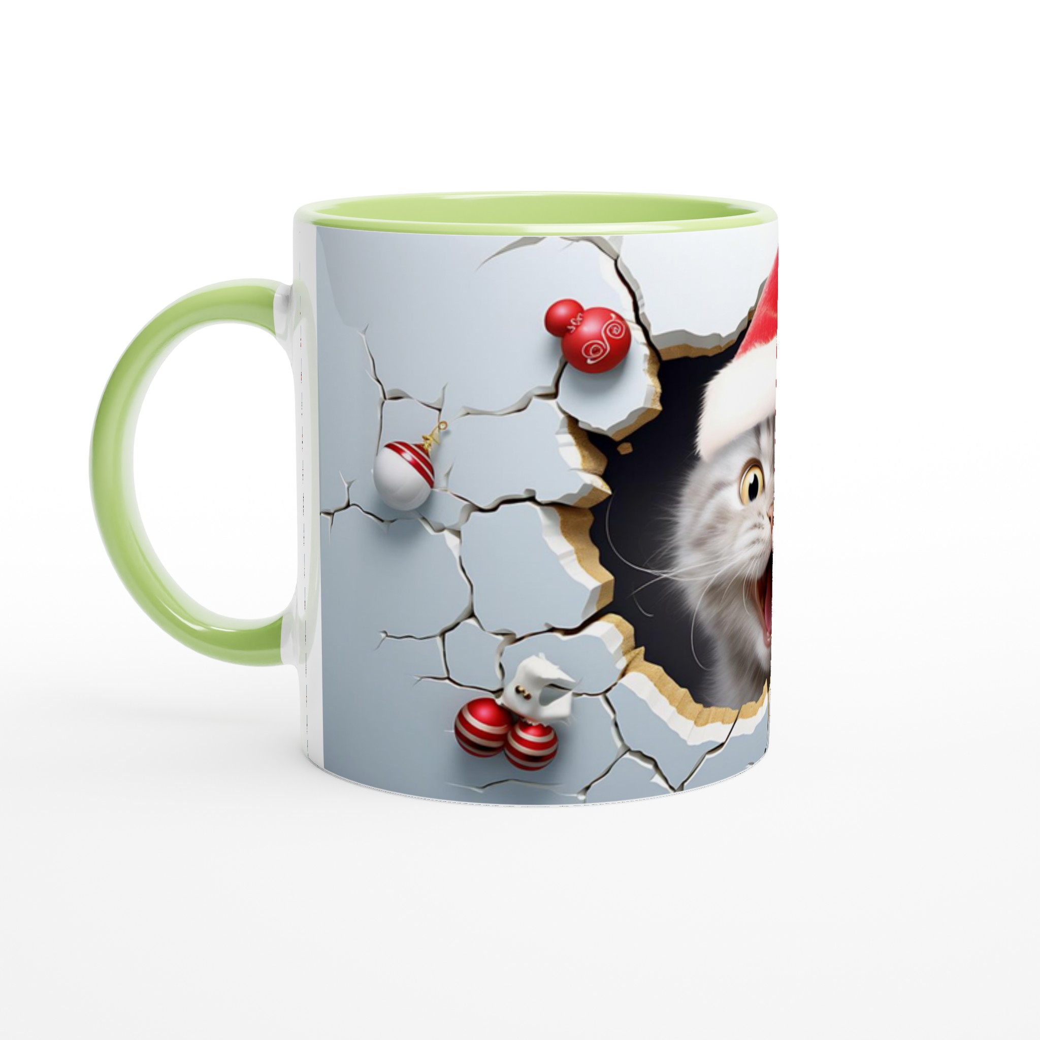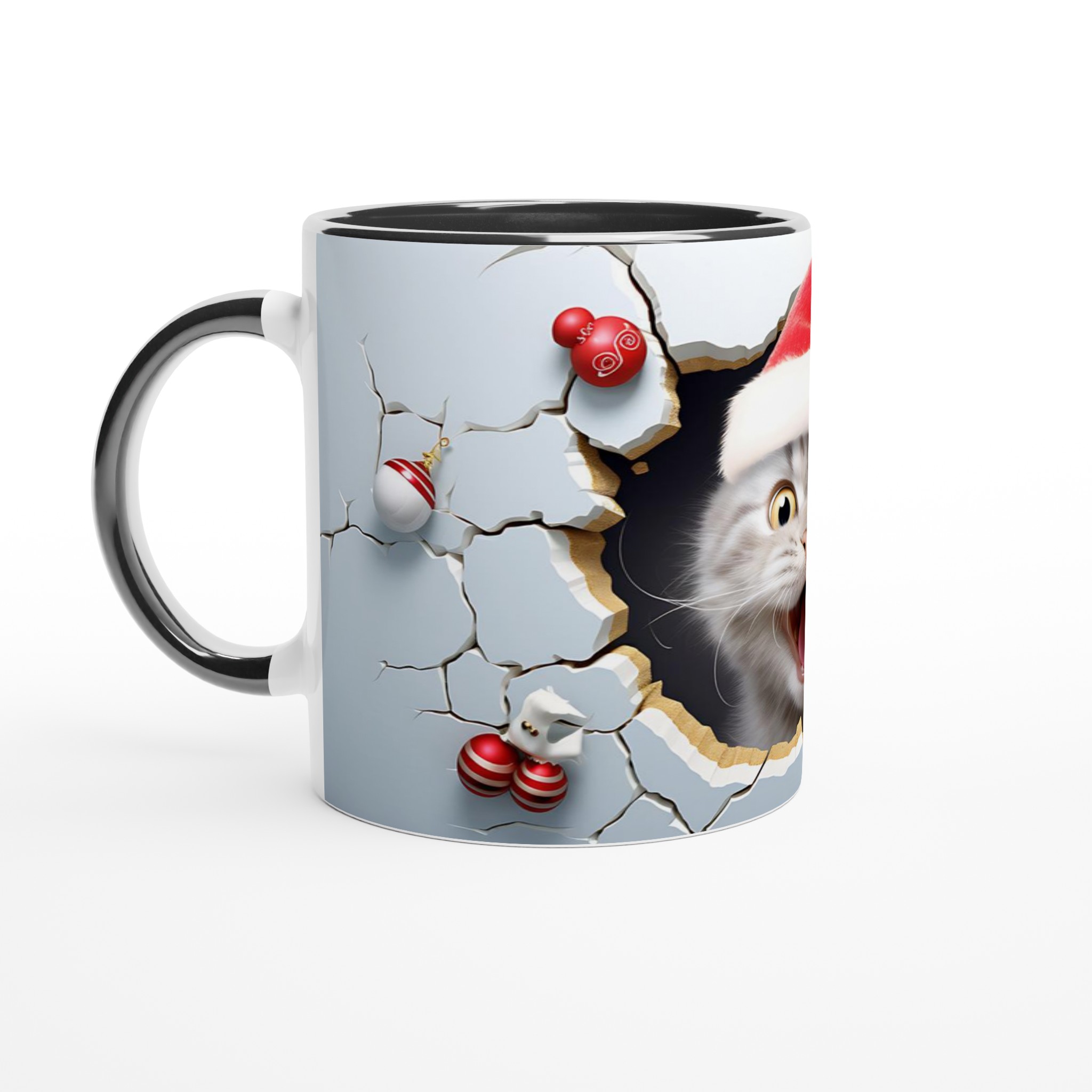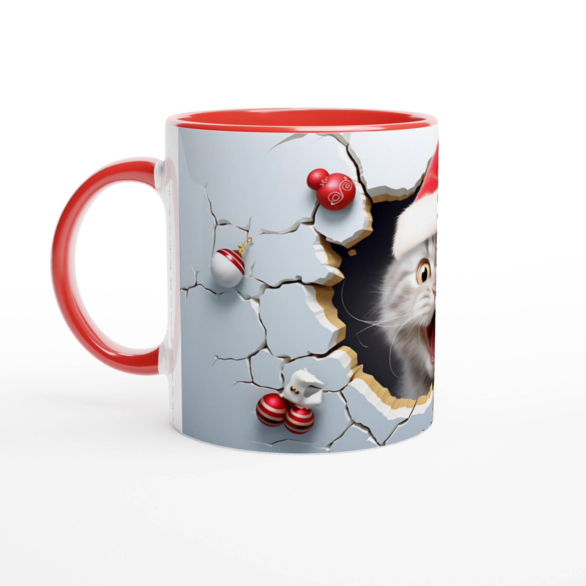 Festive Peeking Cat 11oz Ceramic Mug – Purr-fect Holiday Fun in Your Choice of 7 Vibrant Colors