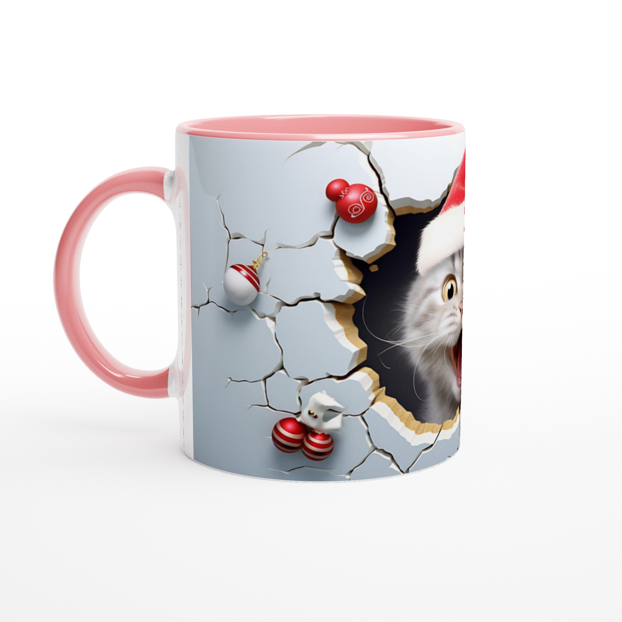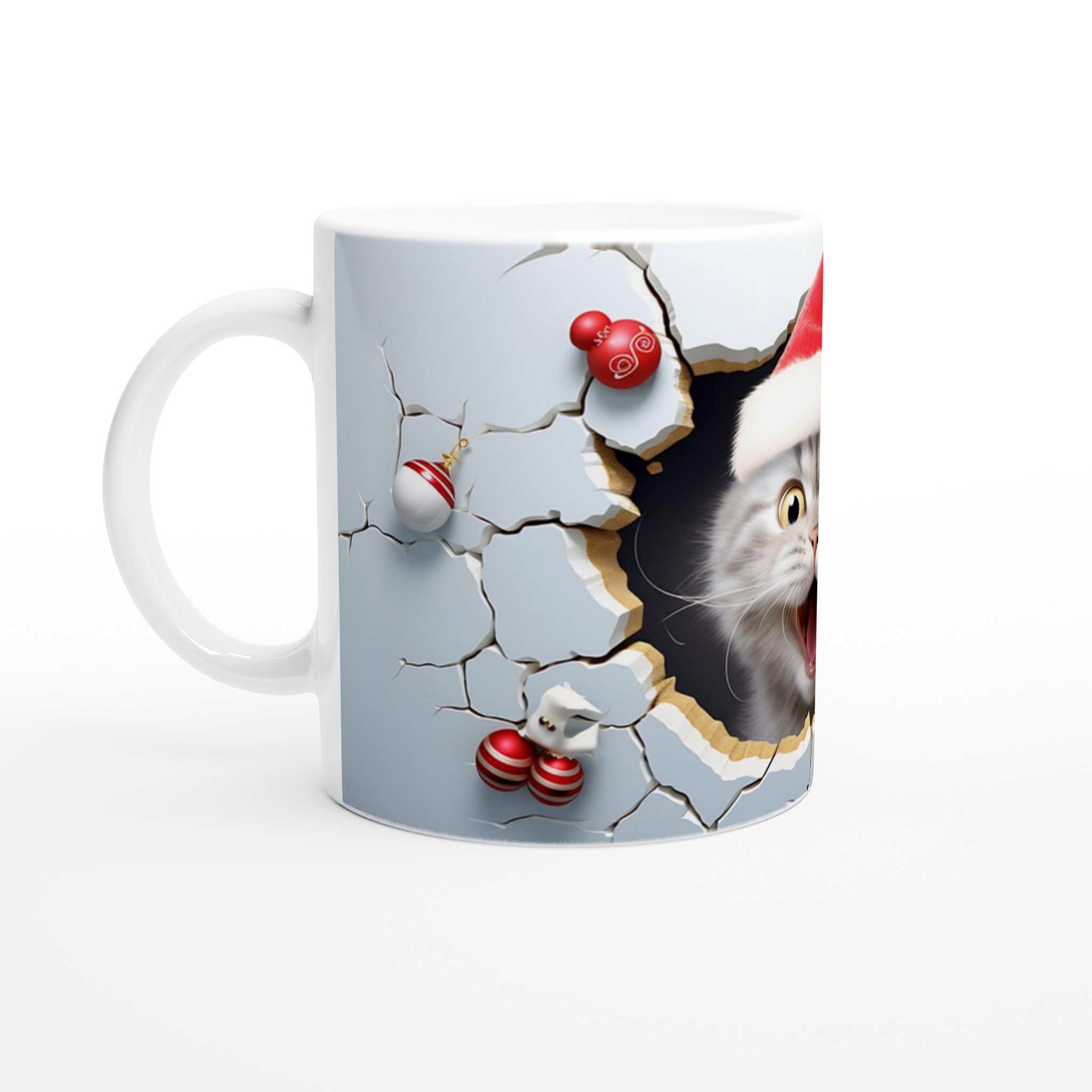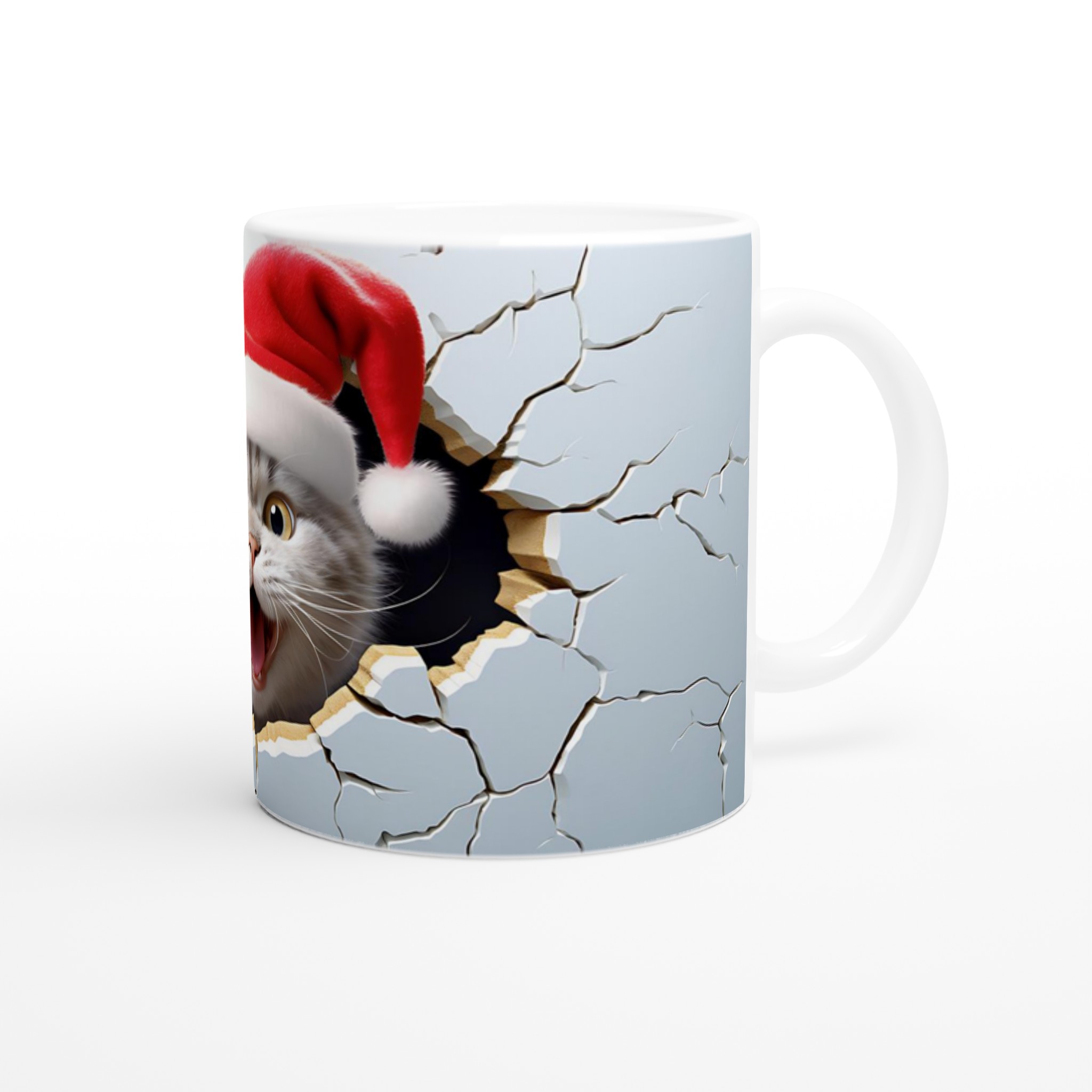 Festive Peeking Cat 11oz Ceramic Mug – Purr-fect Holiday Fun in Your Choice of 7 Vibrant Colors