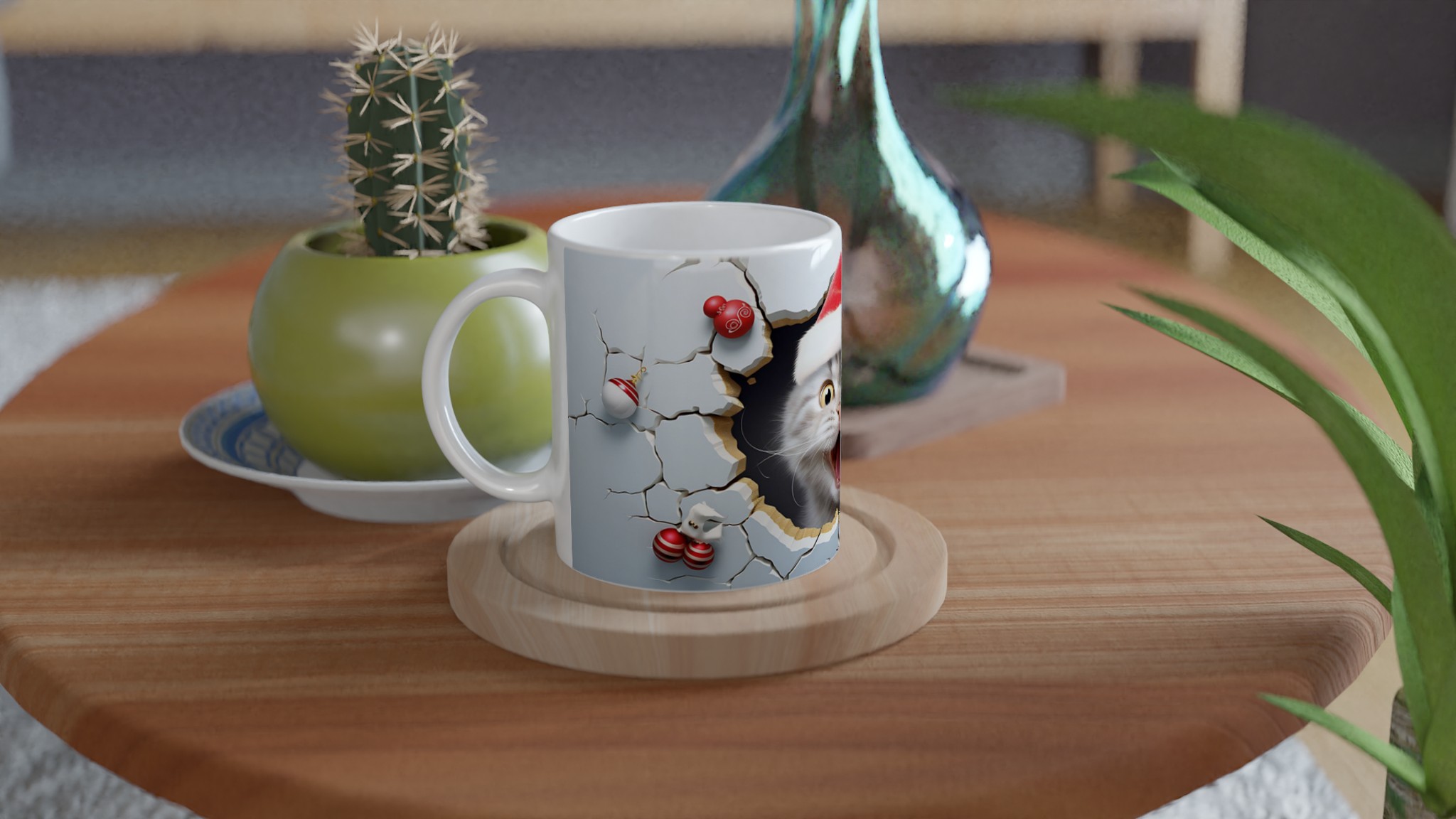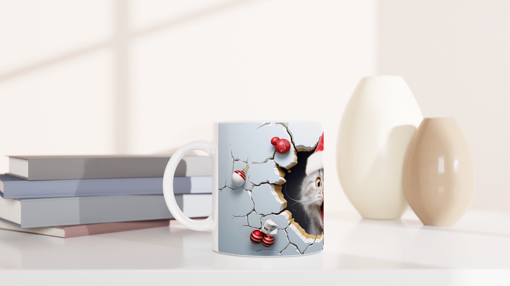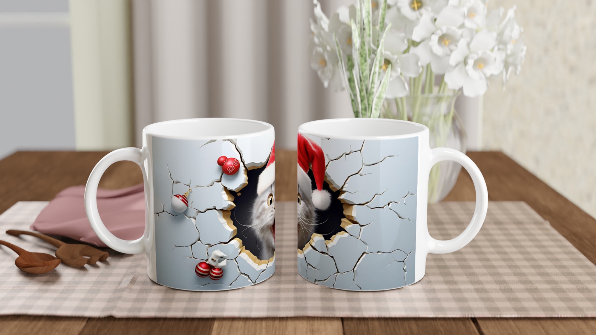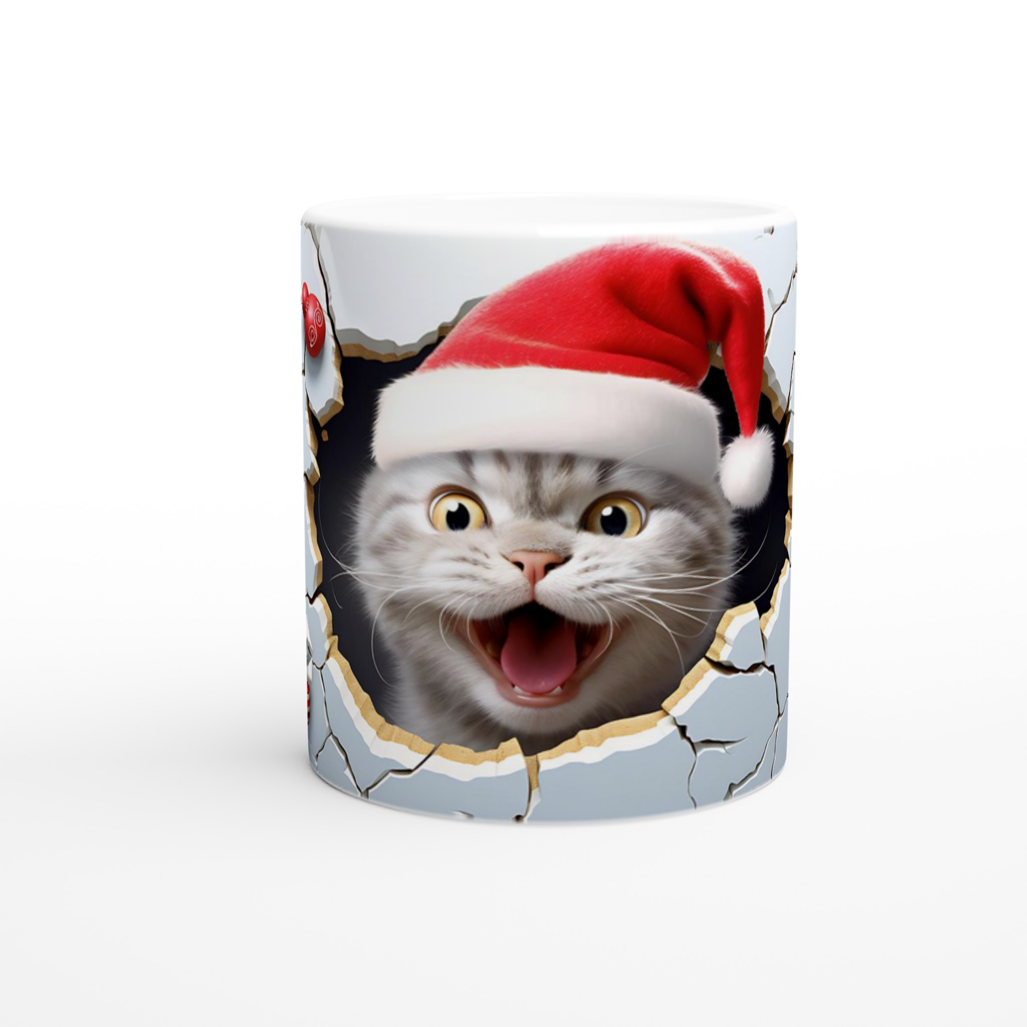 Festive Peeking Cat 11oz Ceramic Mug – Purr-fect Holiday Fun in Your Choice of 7 Vibrant Colors