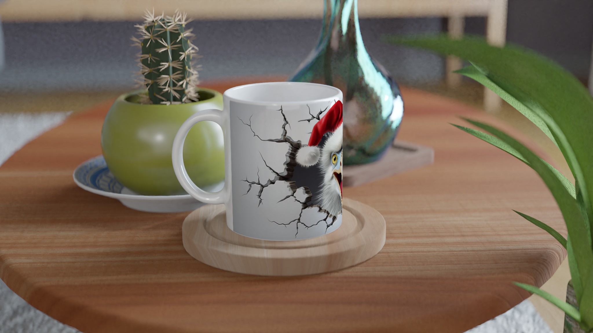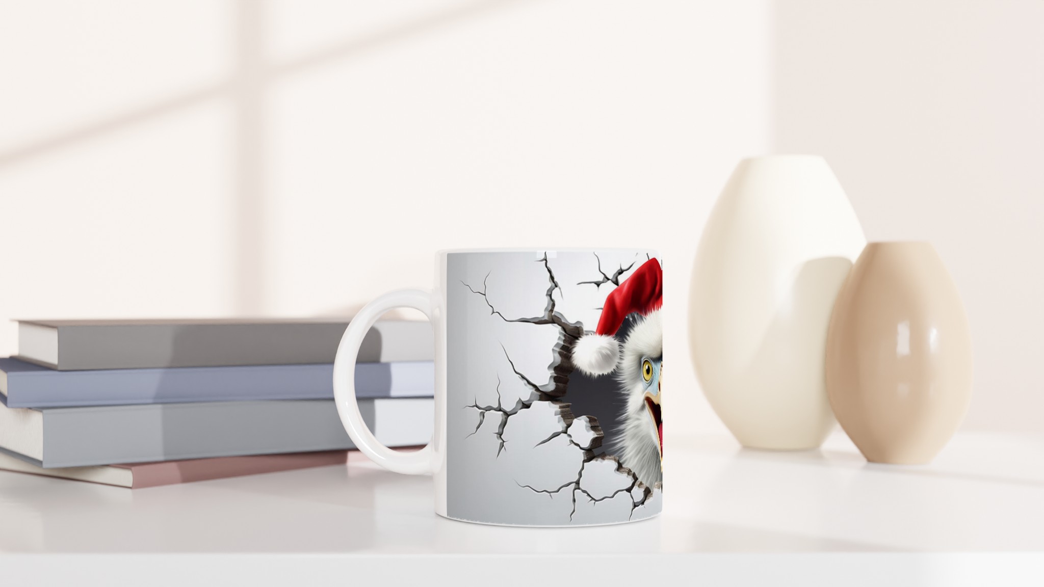 Festive Screaming Eagle with Santa Hat 11oz Ceramic Mug – Choose Your Color!