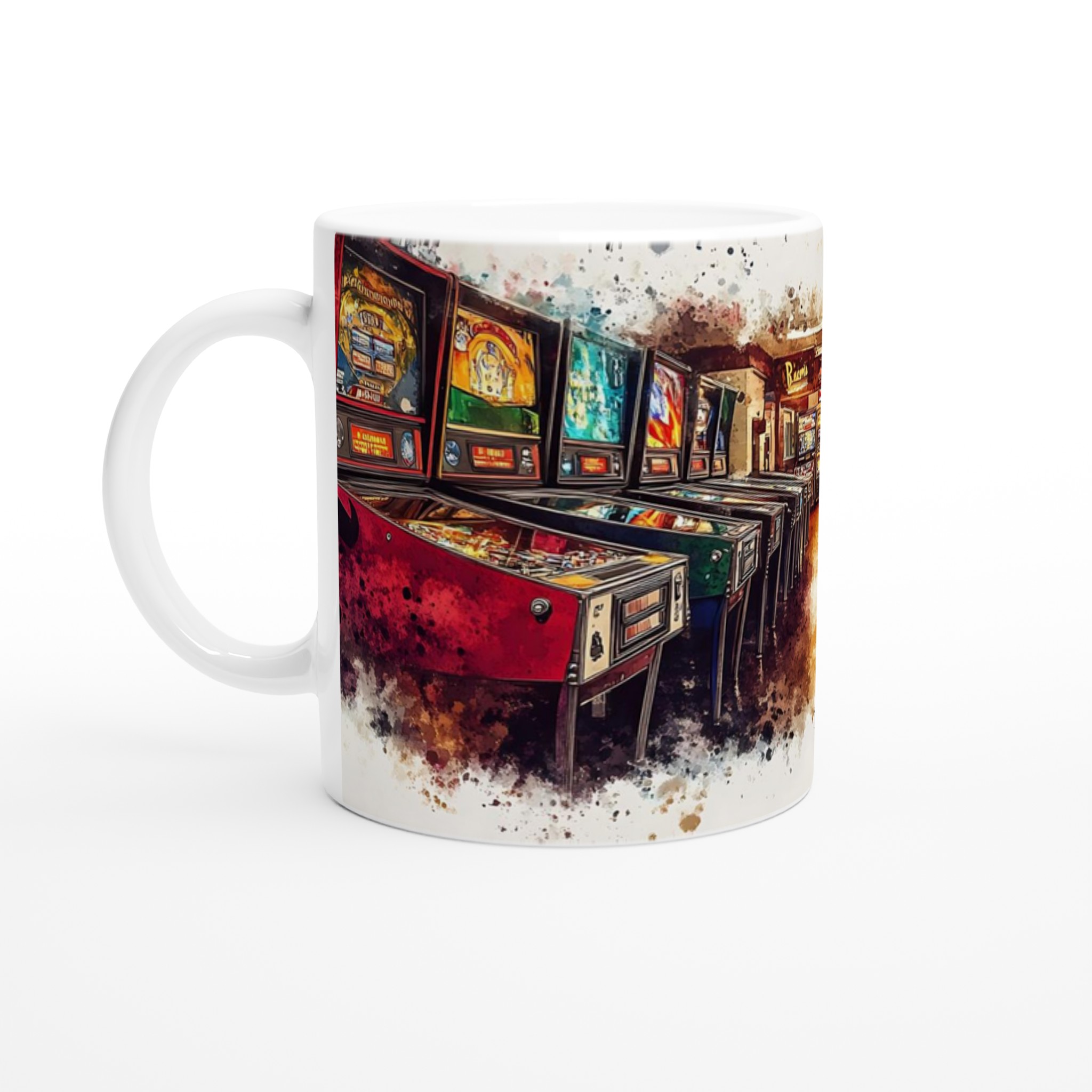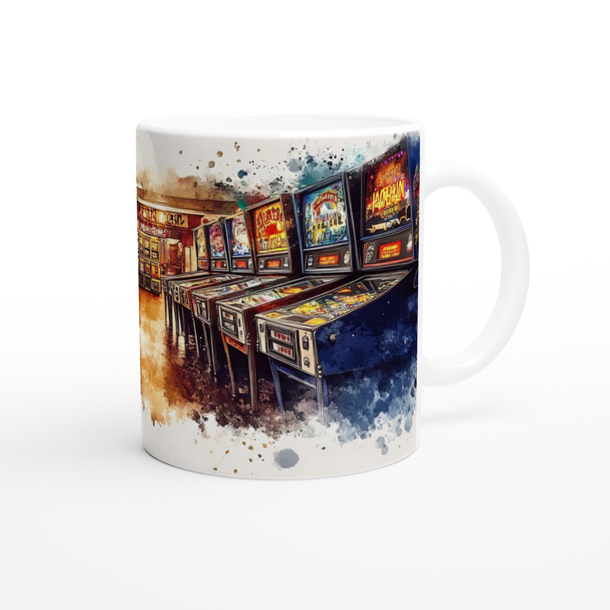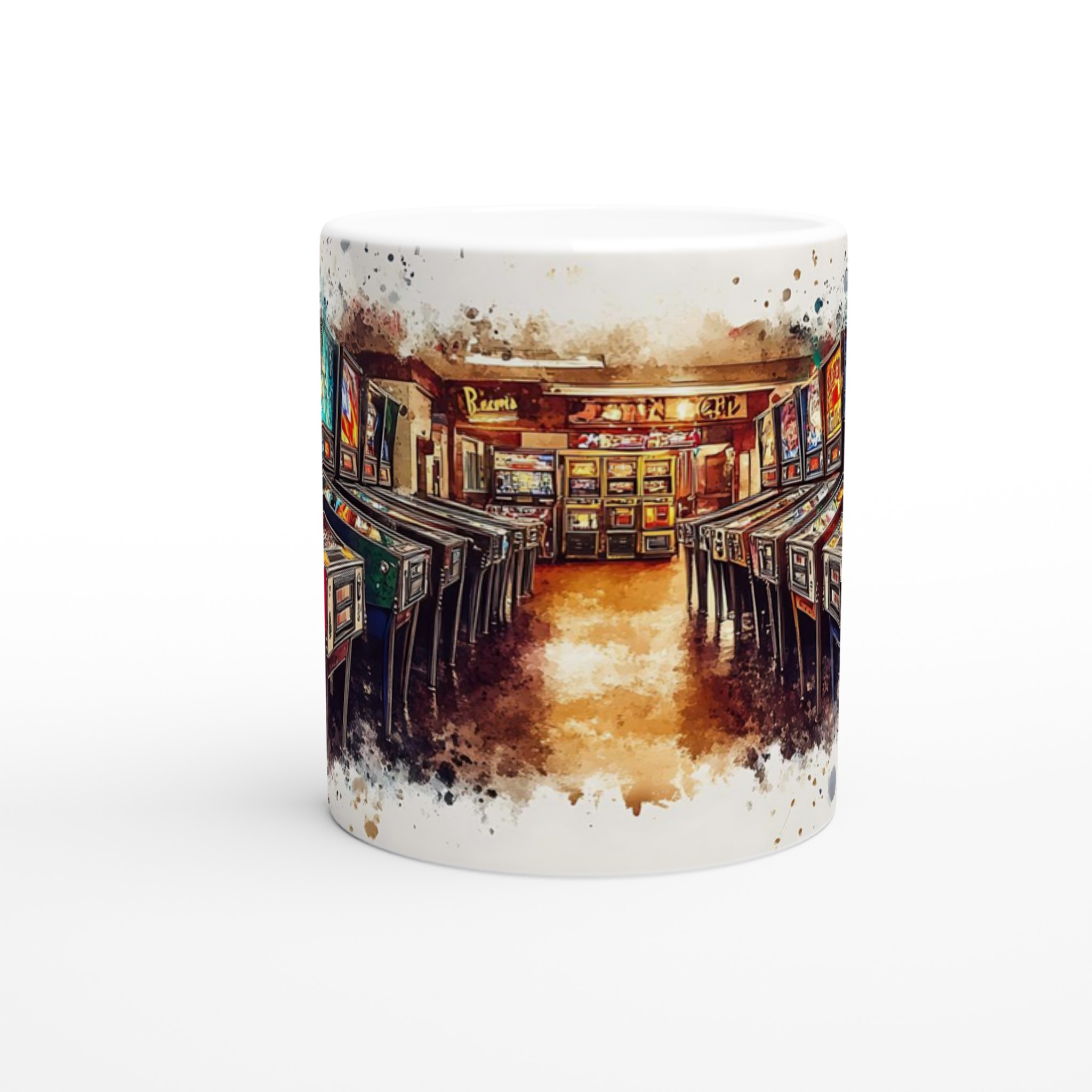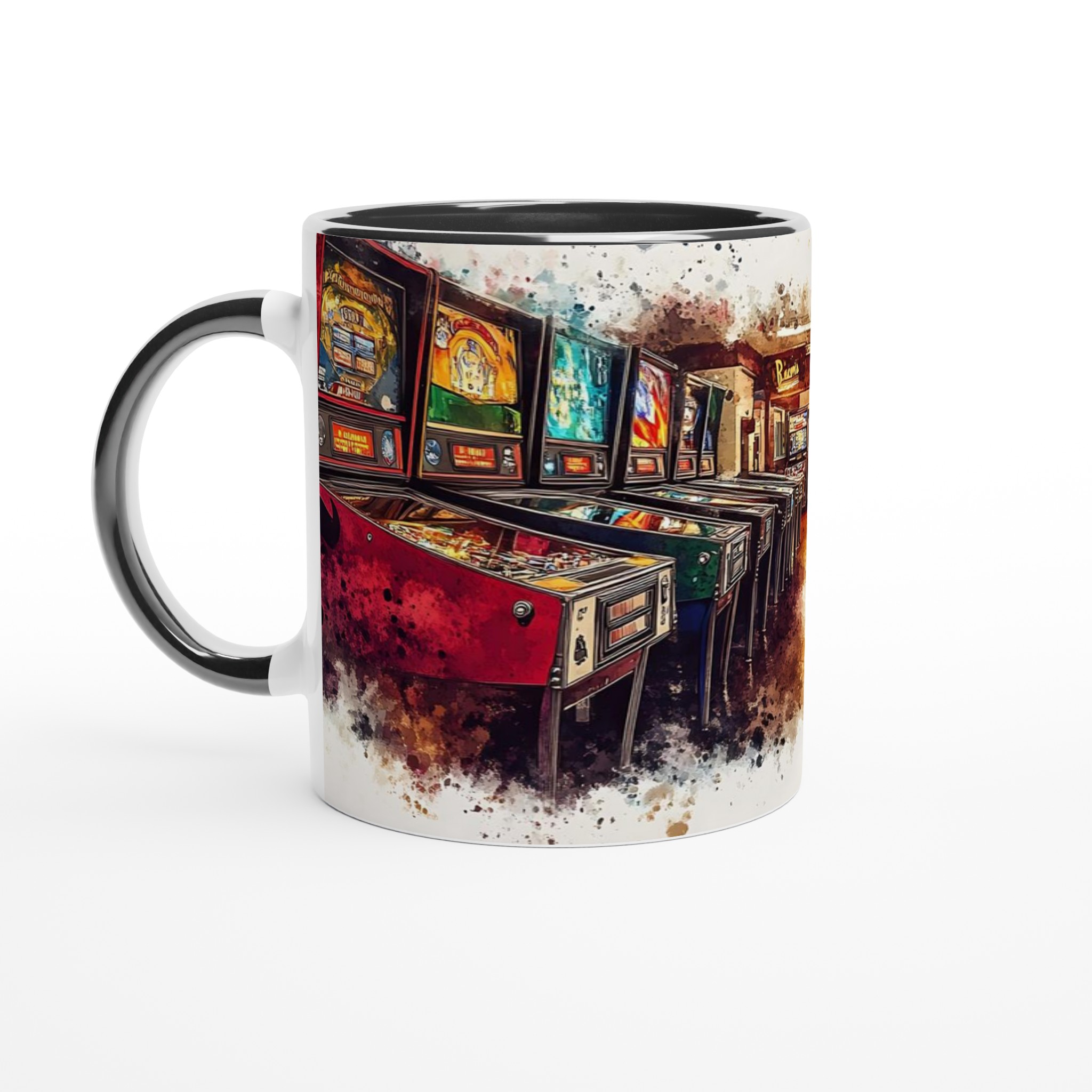 Retro arcade pinball alley watercolor mug – choose your color, 11oz ceramic tar dig tillbaka till en tid då stil var tidlös. Inspirerad av klassisk design, med en modern twist.