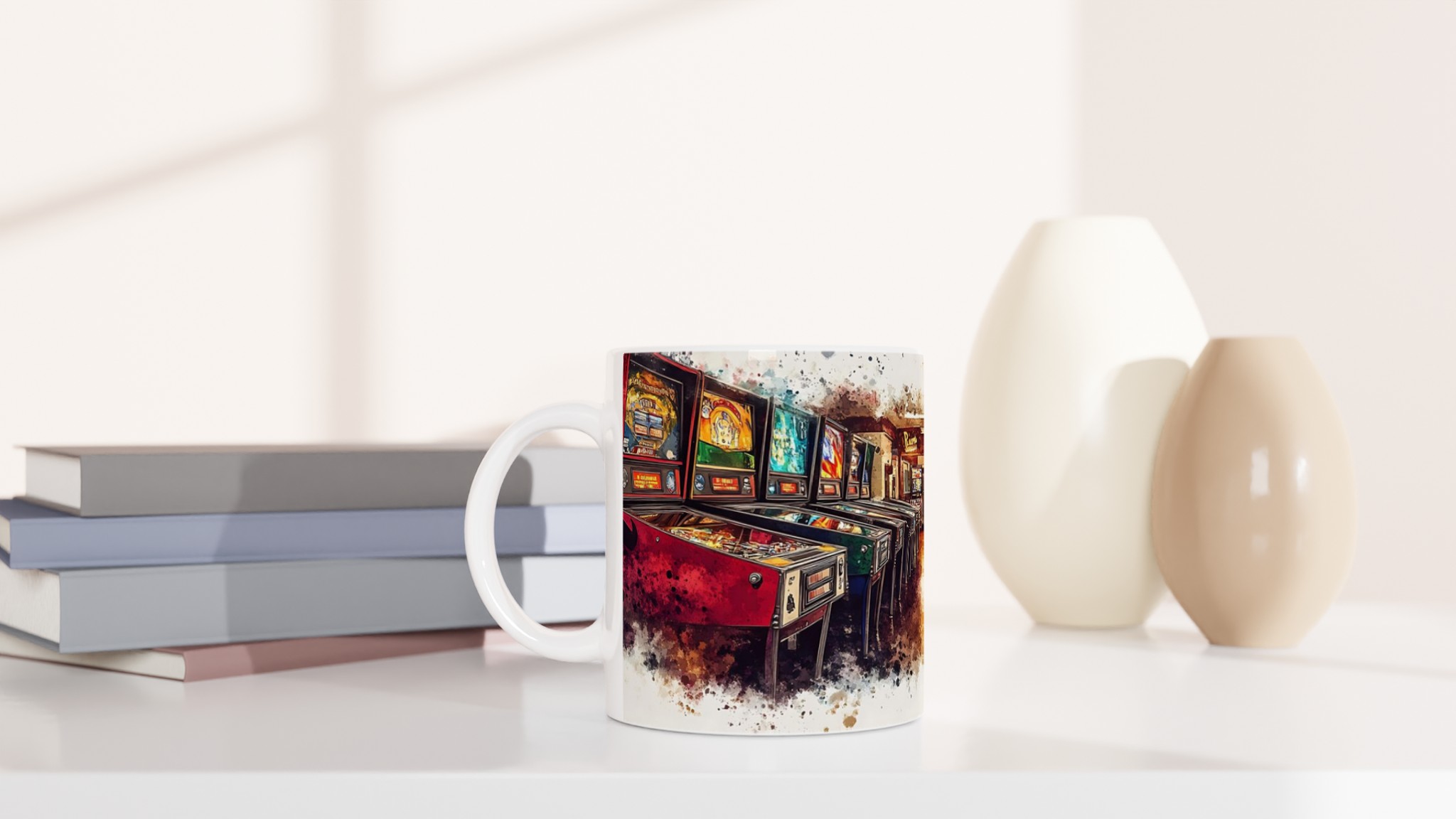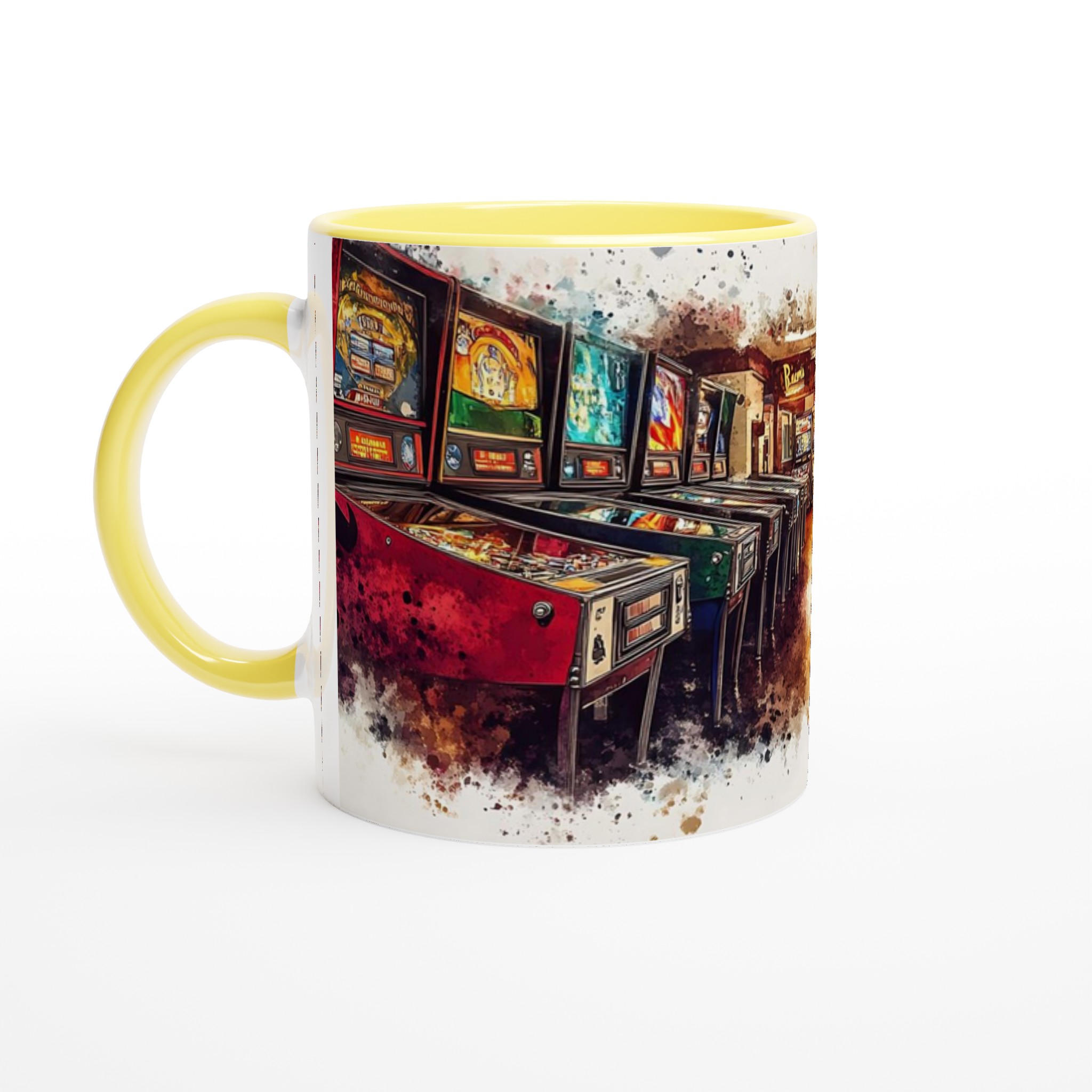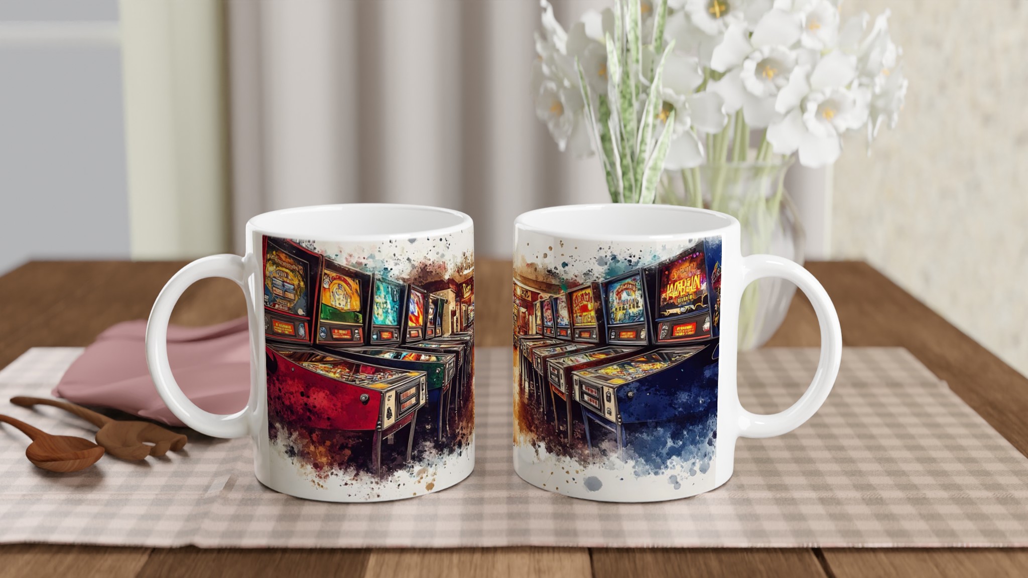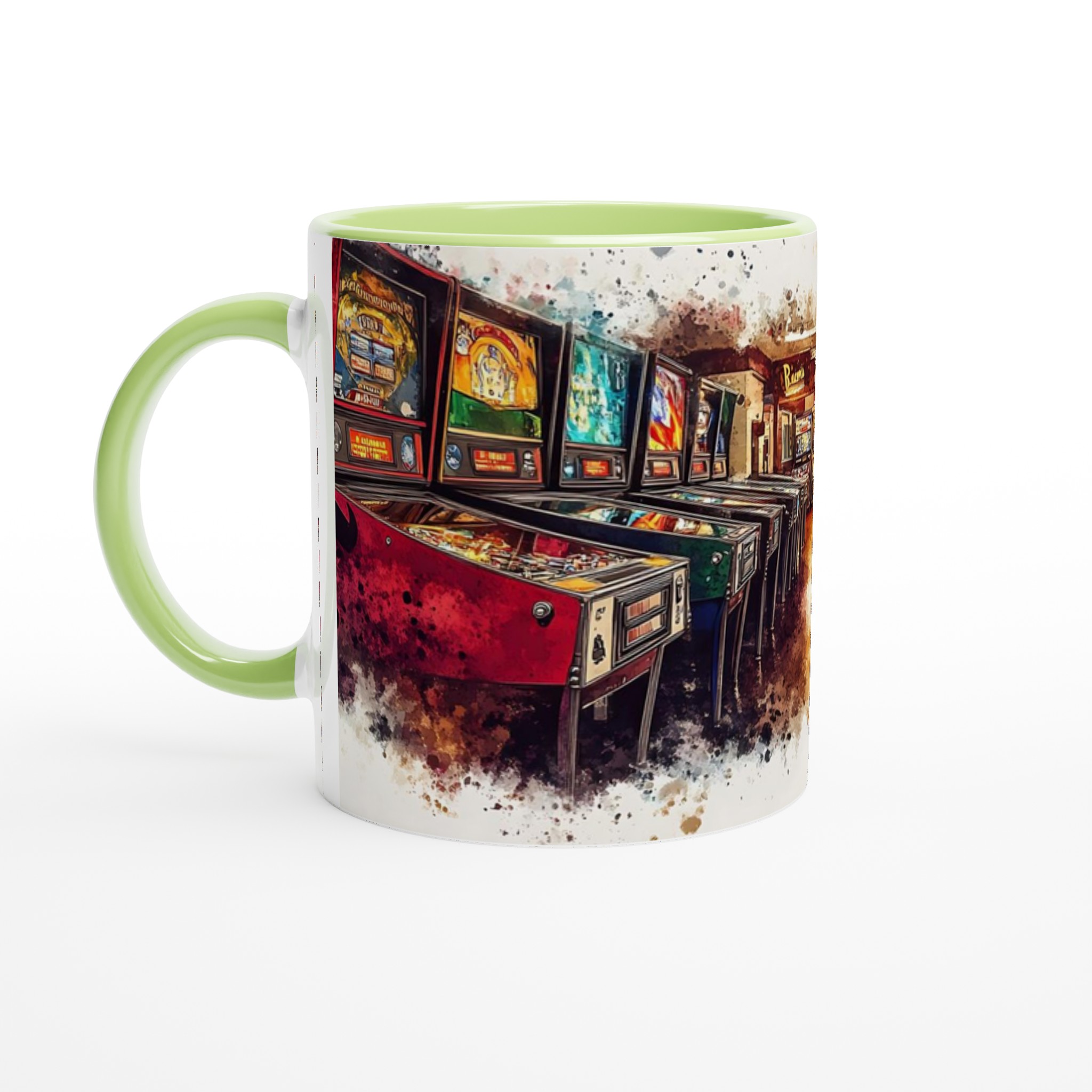 Retro arcade pinball alley watercolor mug – choose your color, 11oz ceramic tar dig tillbaka till en tid då stil var tidlös. Inspirerad av klassisk design, med en modern twist.