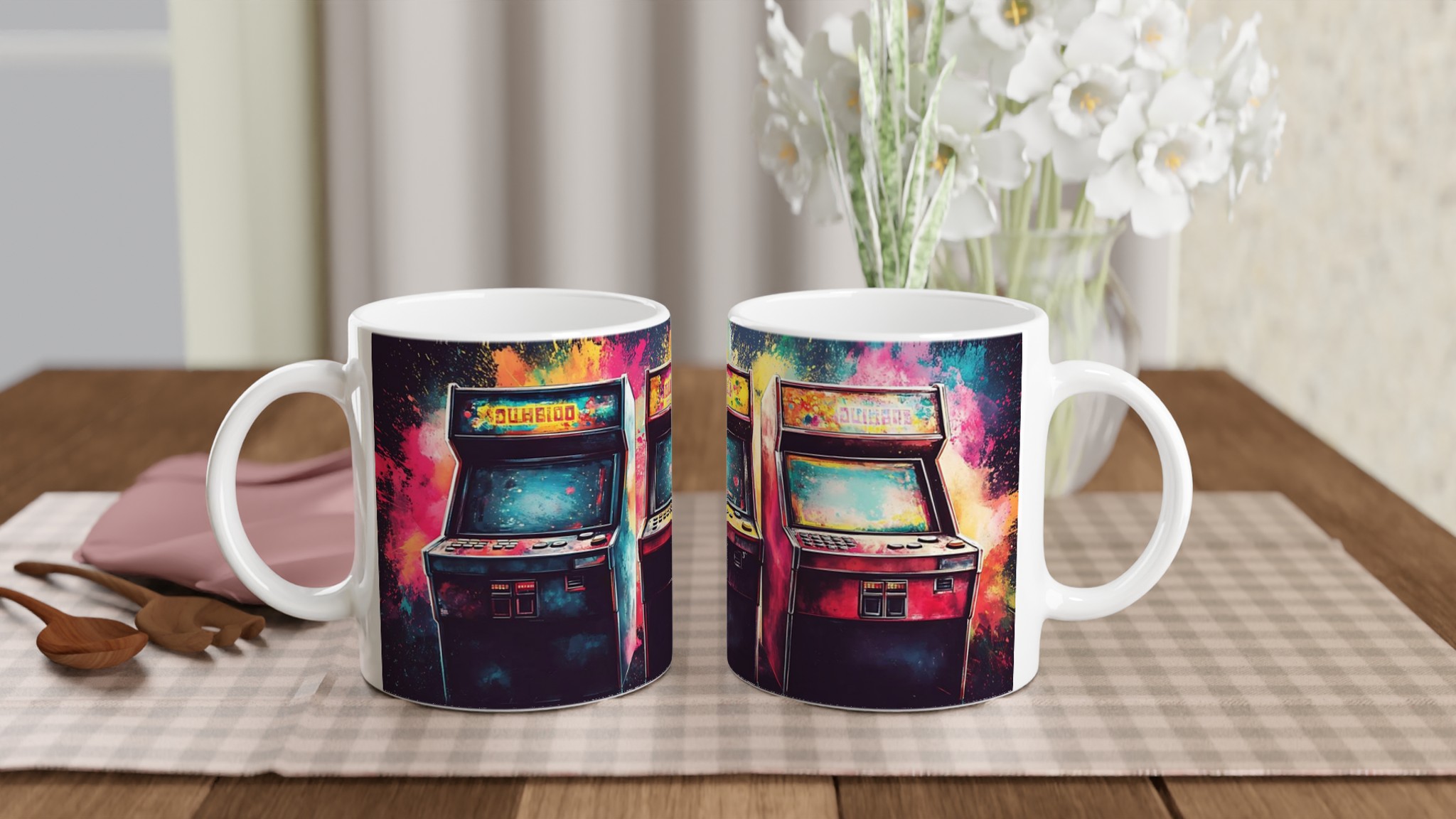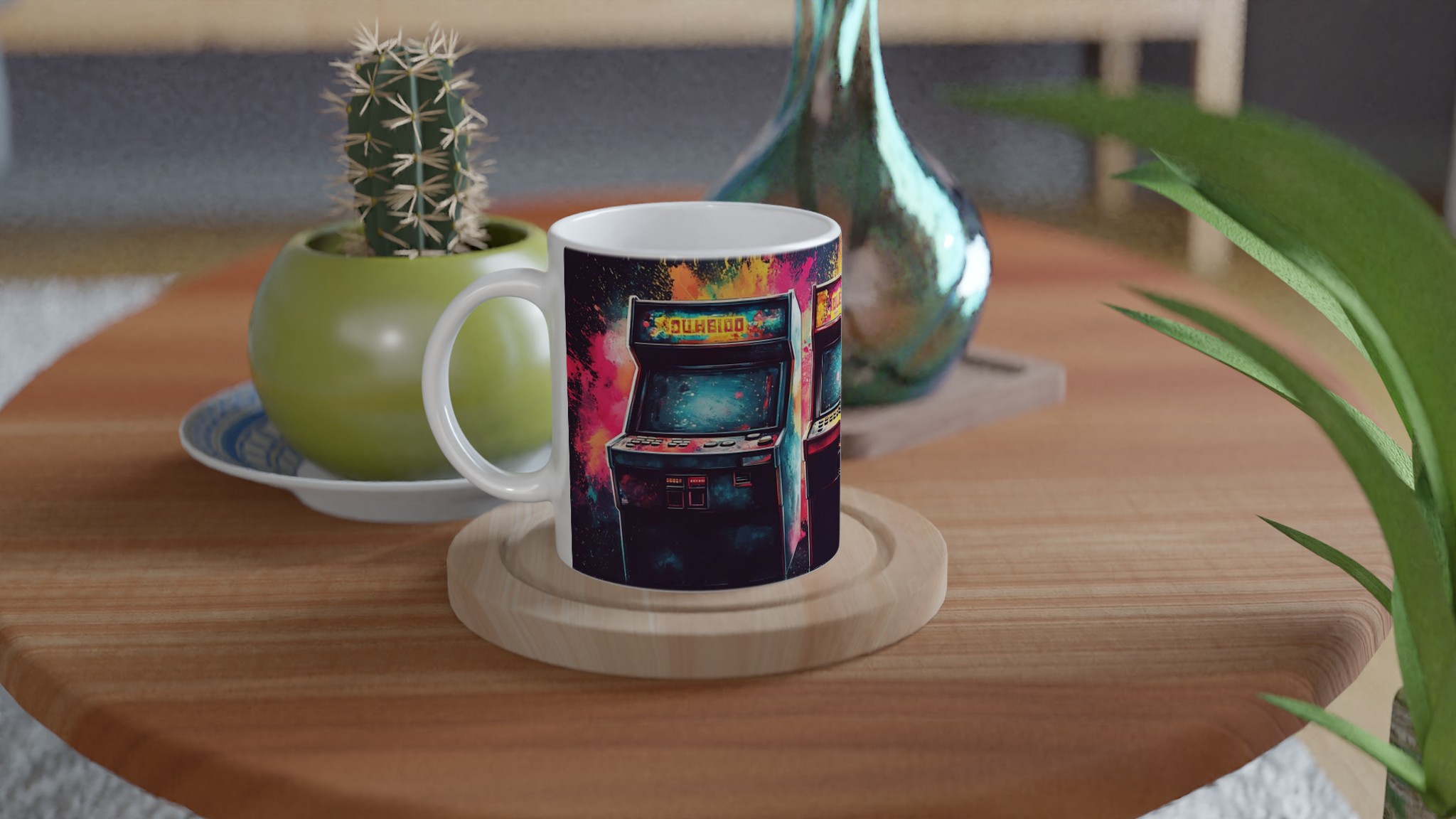 Retro arcade splash – 11oz ceramic mug in a spectrum of colors tar dig tillbaka till en tid då stil var tidlös. Inspirerad av klassisk design, med en modern twist.