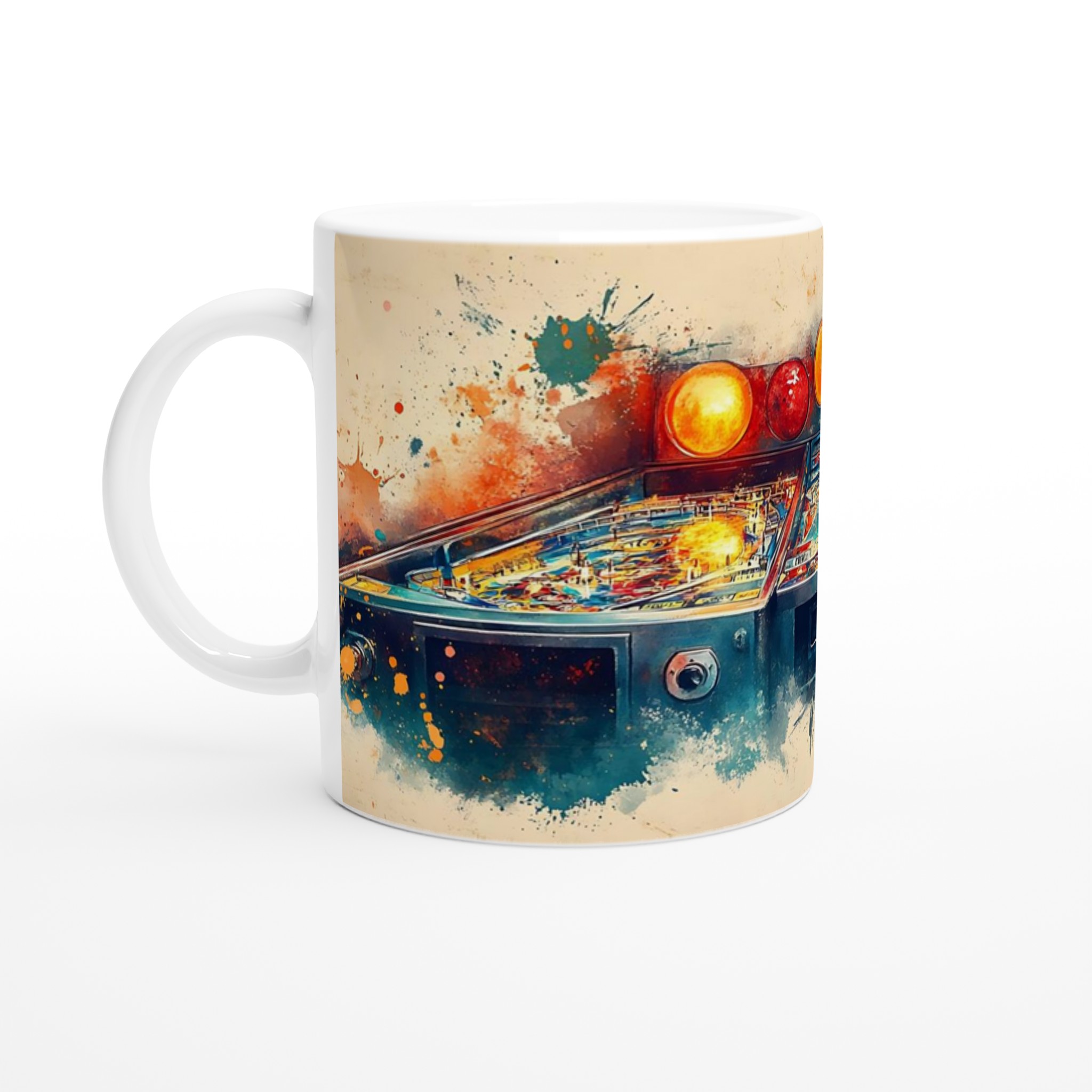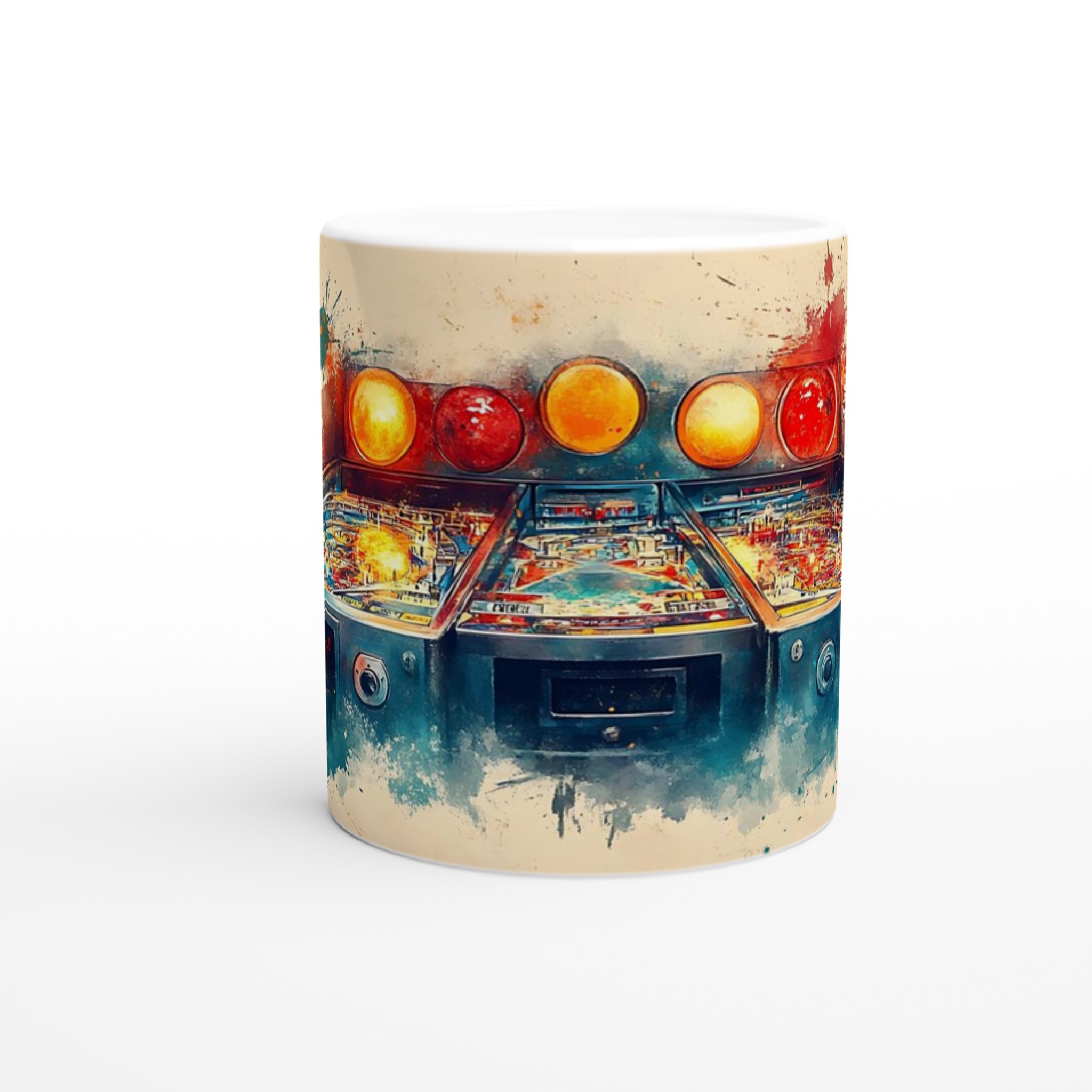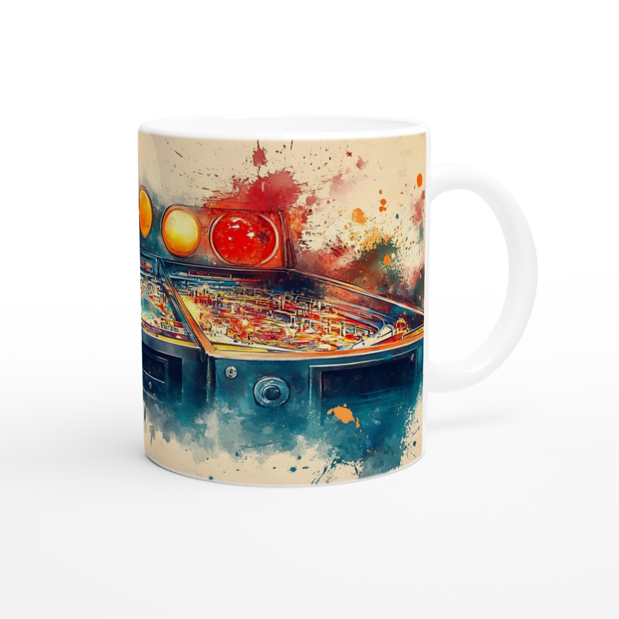 Retro Arcade Splash – Abstract Pinball Art Ceramic Mug 11oz – Choose Your Color