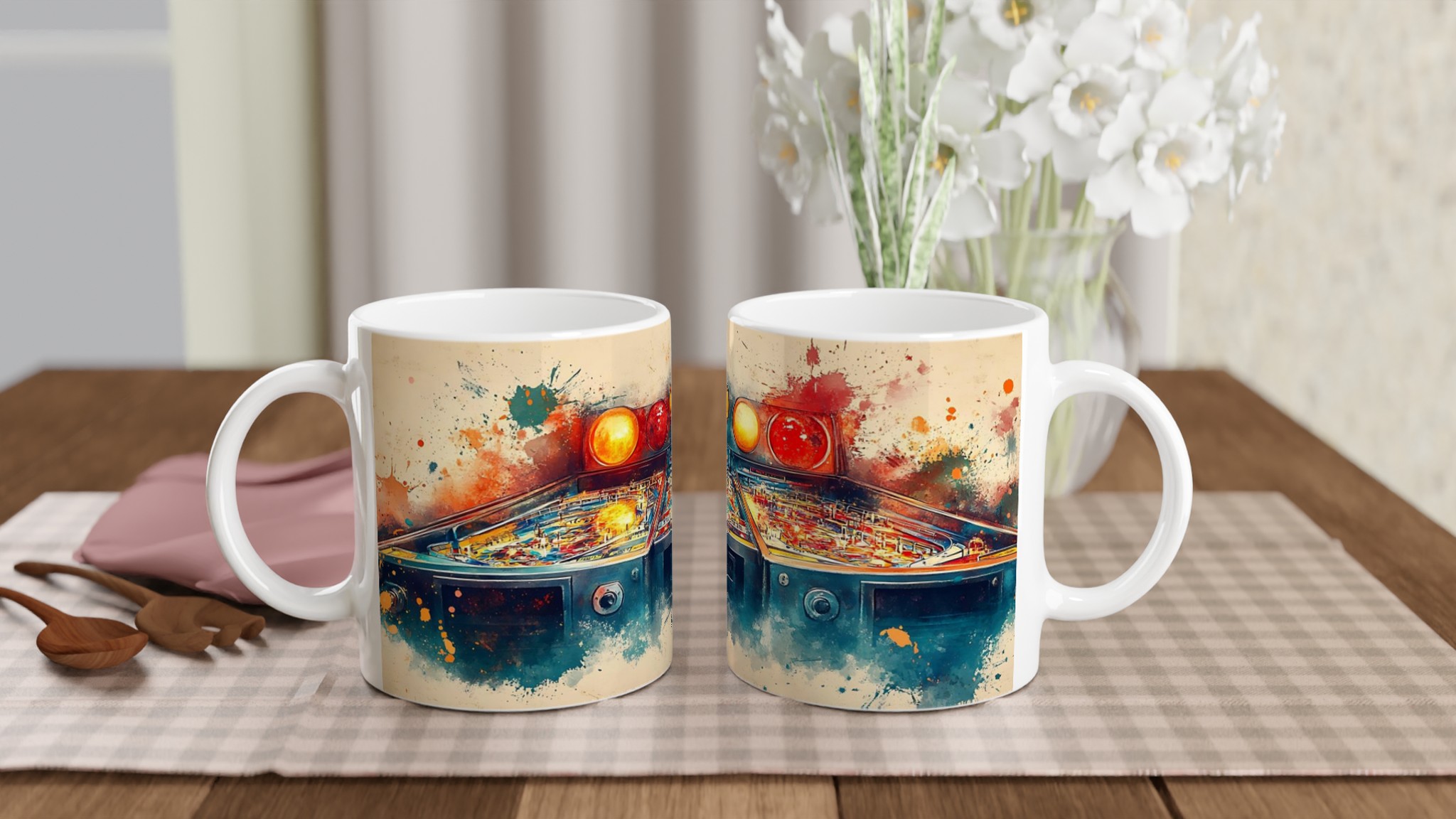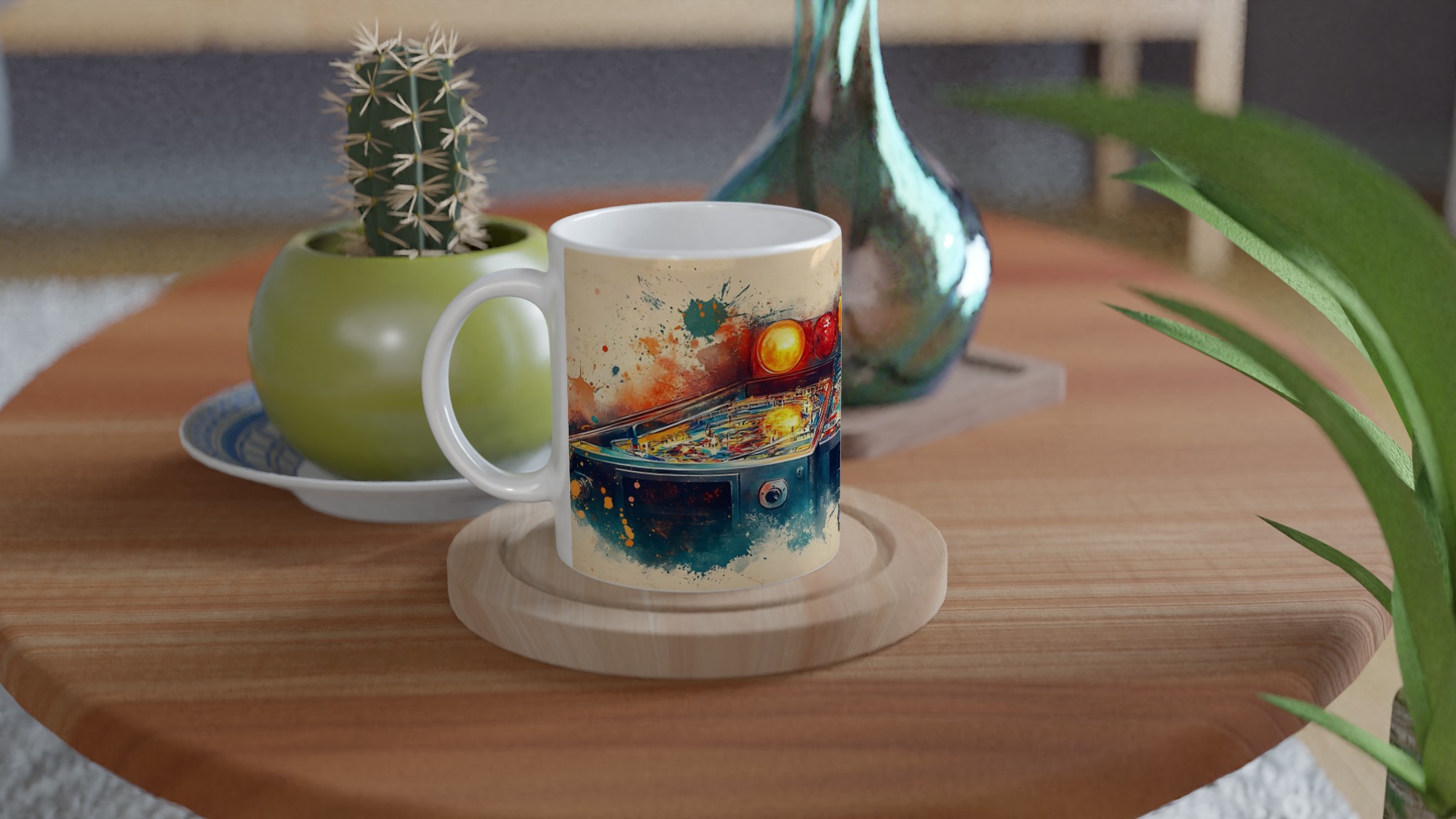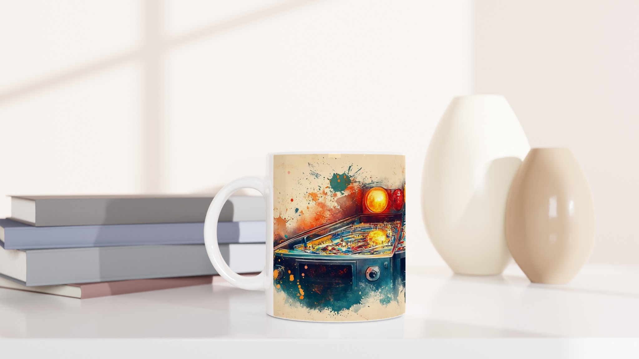 Retro Arcade Splash – Abstract Pinball Art Ceramic Mug 11oz – Choose Your Color