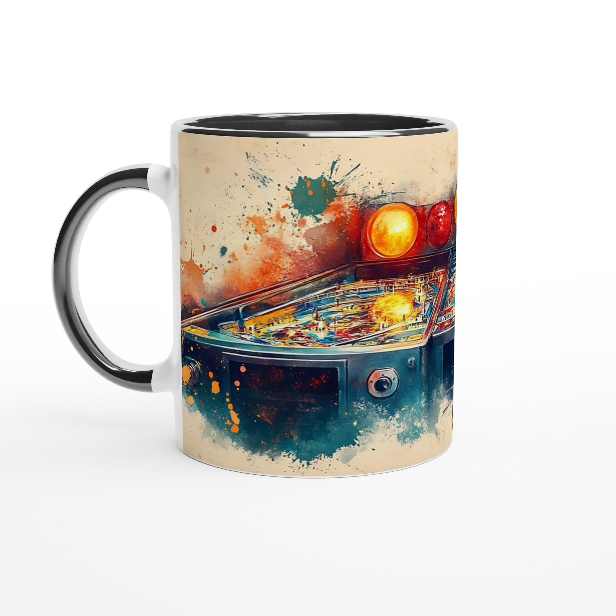 Be the first to review “Retro Arcade Splash – Abstract Pinball Art Ceramic Mug 11oz – Choose Your Color”
