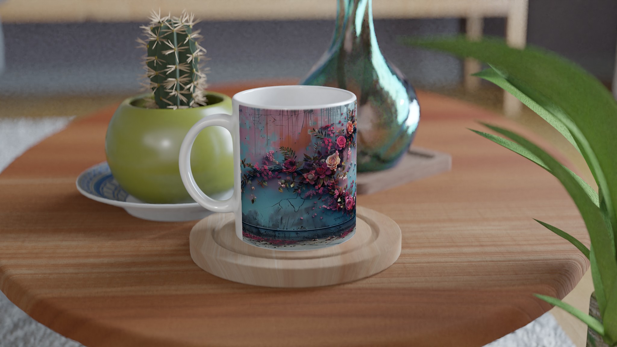 Rustic Floral Charm Mug – Everyday Ceramic Coffee Mug with Elegant Rose Design, Available in 7 Colors