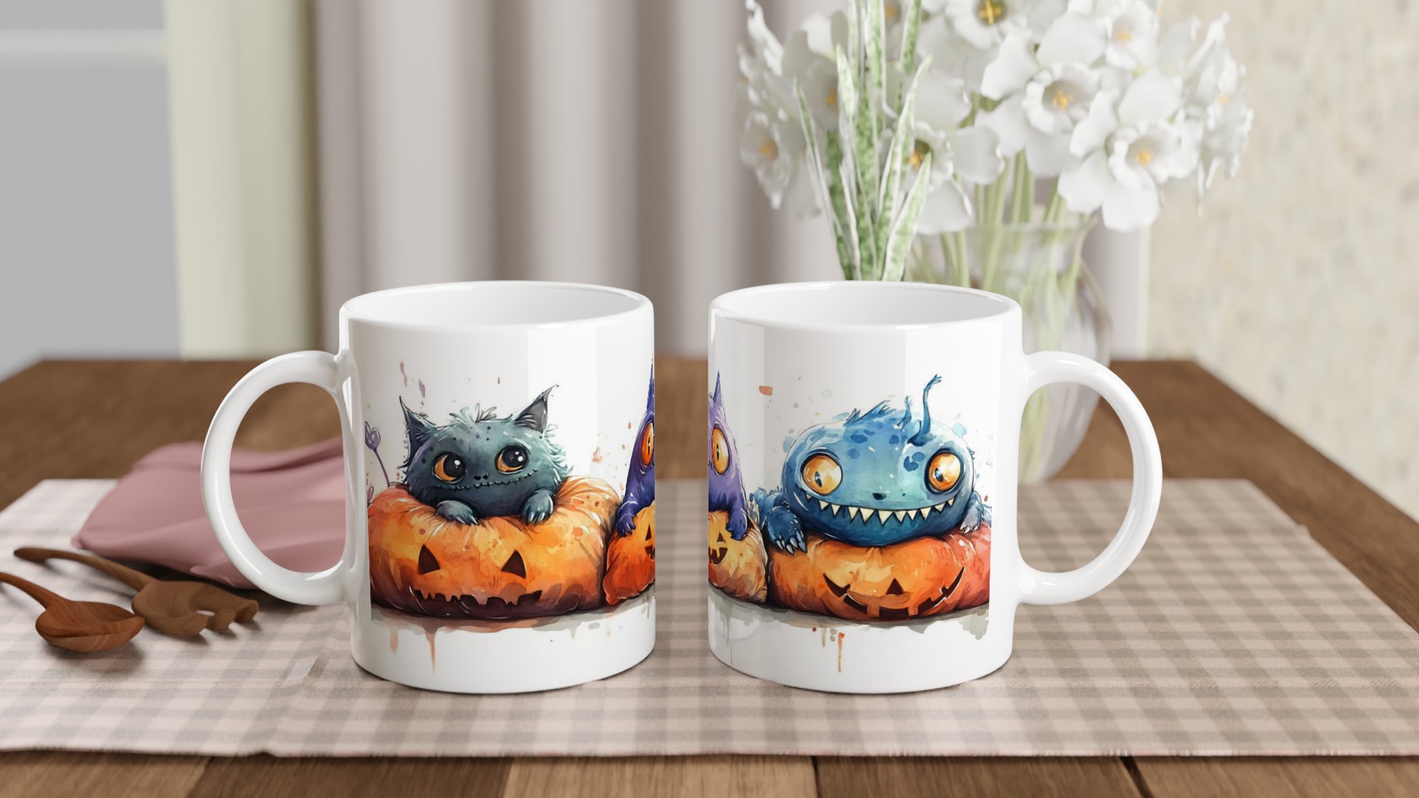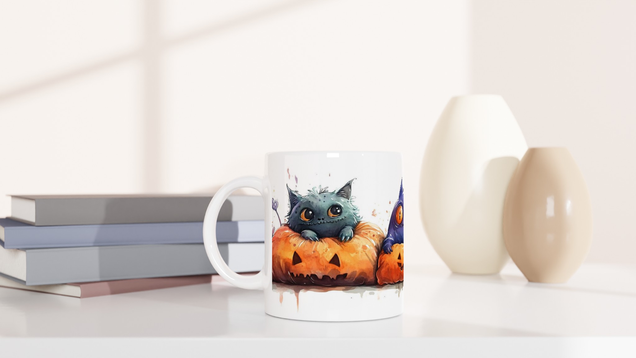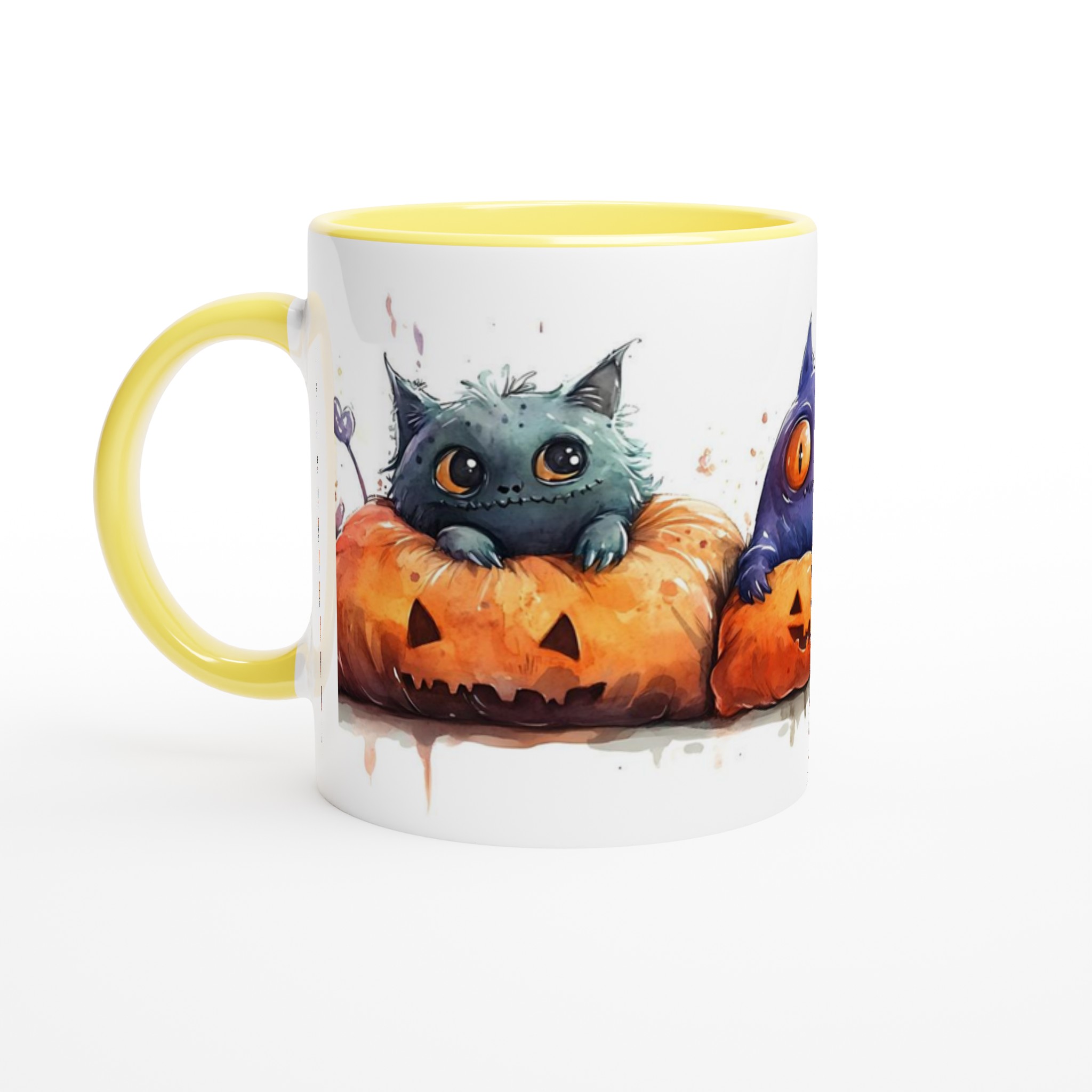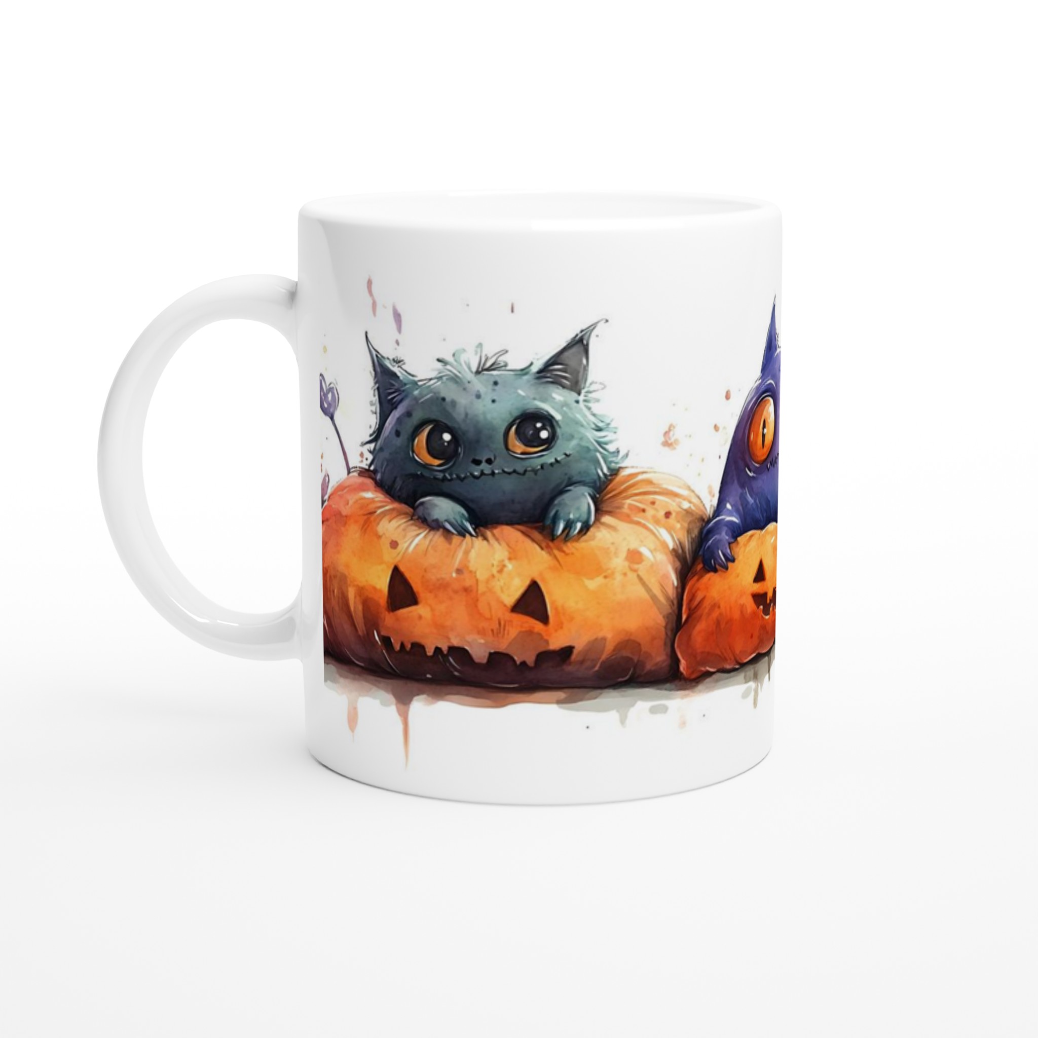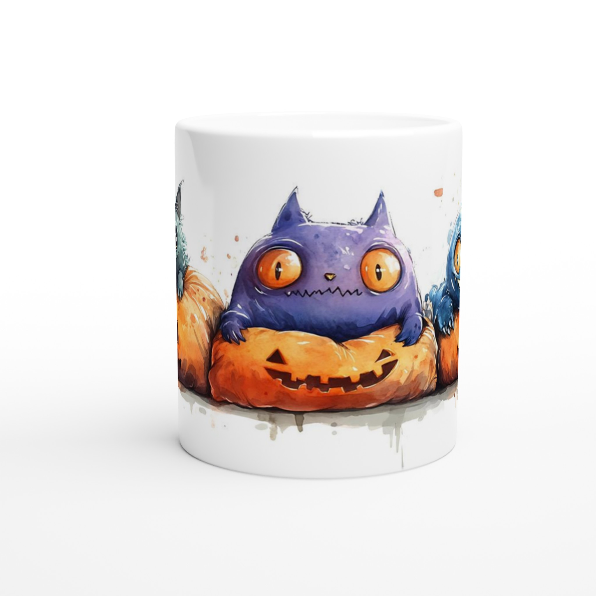 Spooky cute watercolor monsters in pumpkins 11oz ceramic mug – choose your color! är ett mångsidigt och stilrent tryck som passar nästan vem som helst. Med en snygg design och ett tydligt budskap blir den snabbt en favorit i garderoben.