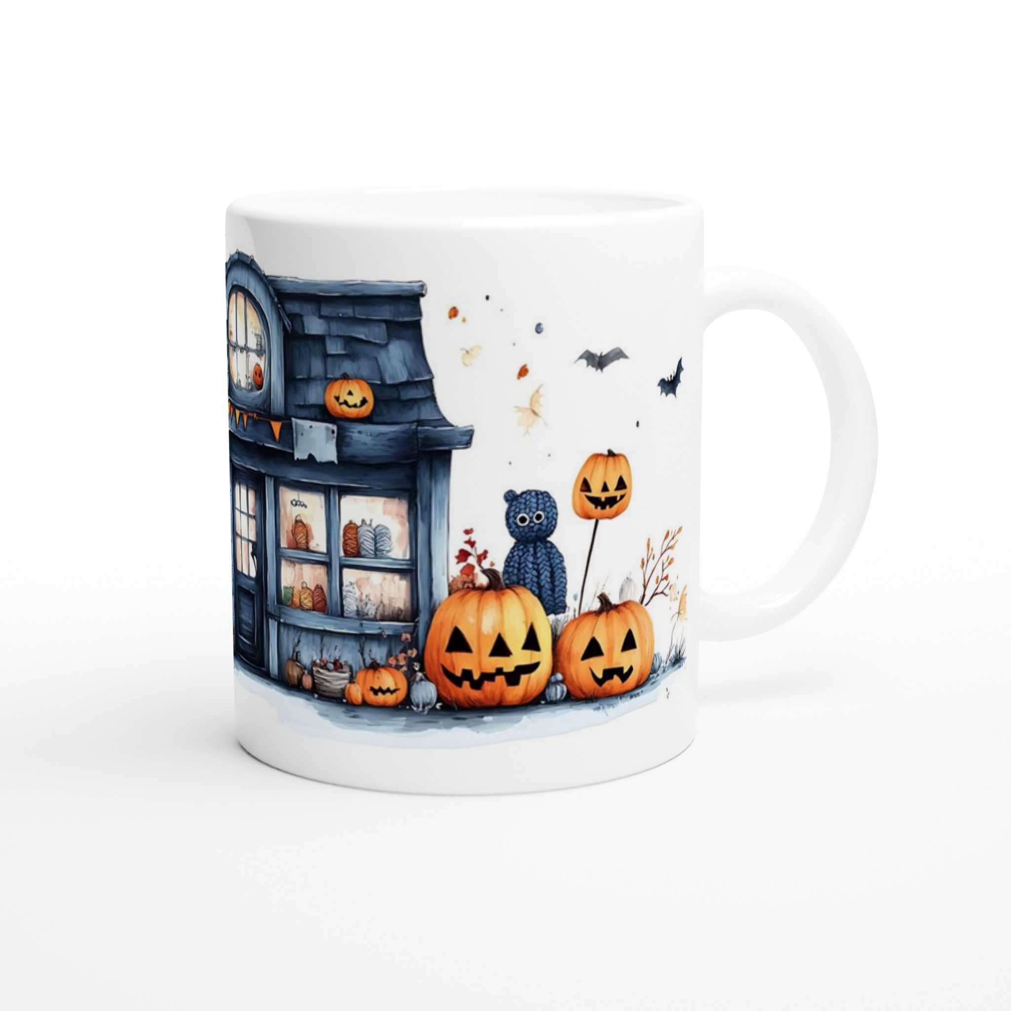 Spooky fun halloween house 11oz ceramic mug – choose your perfect color! är ett mångsidigt och stilrent tryck som passar nästan vem som helst. Med en snygg design och ett tydligt budskap blir den snabbt en favorit i garderoben.