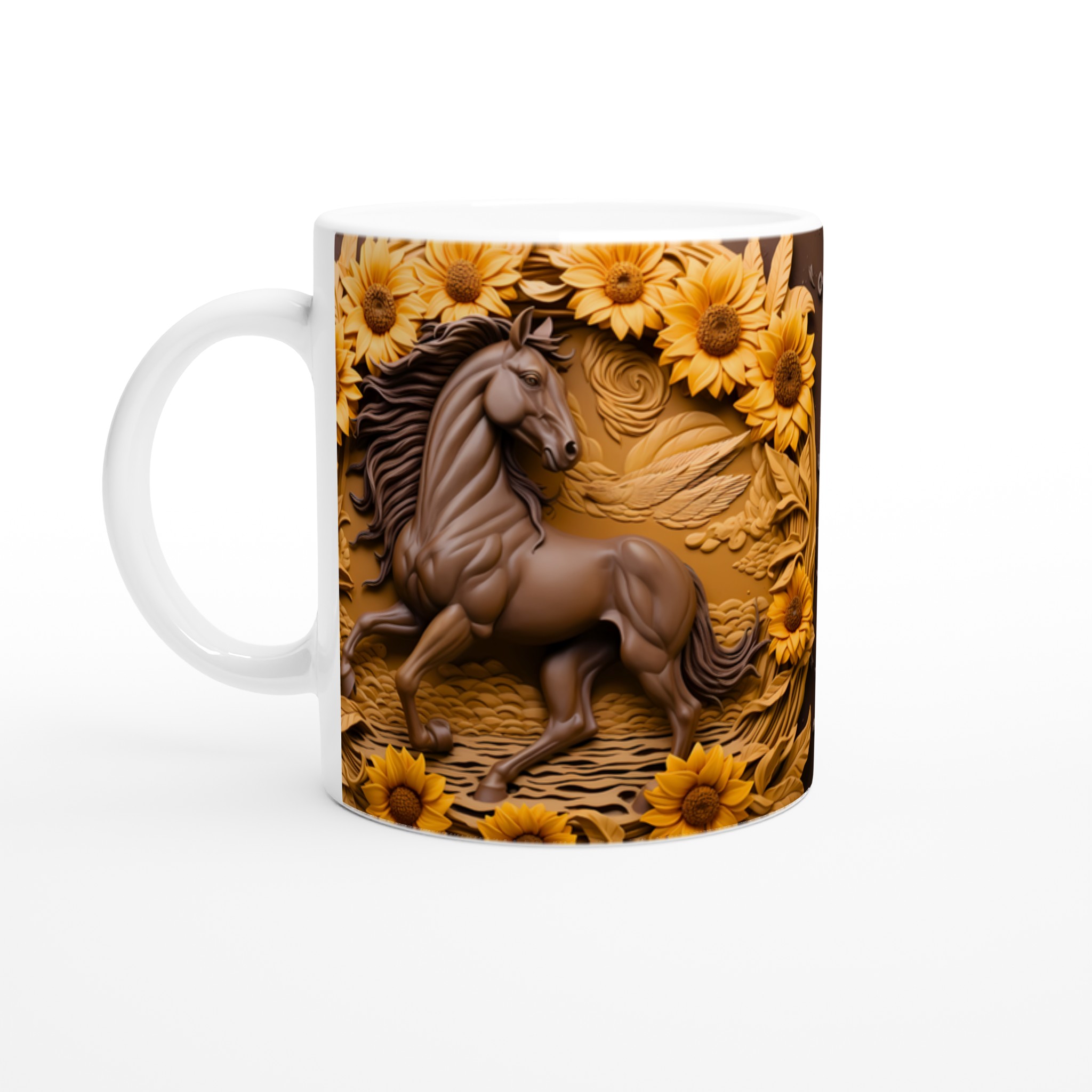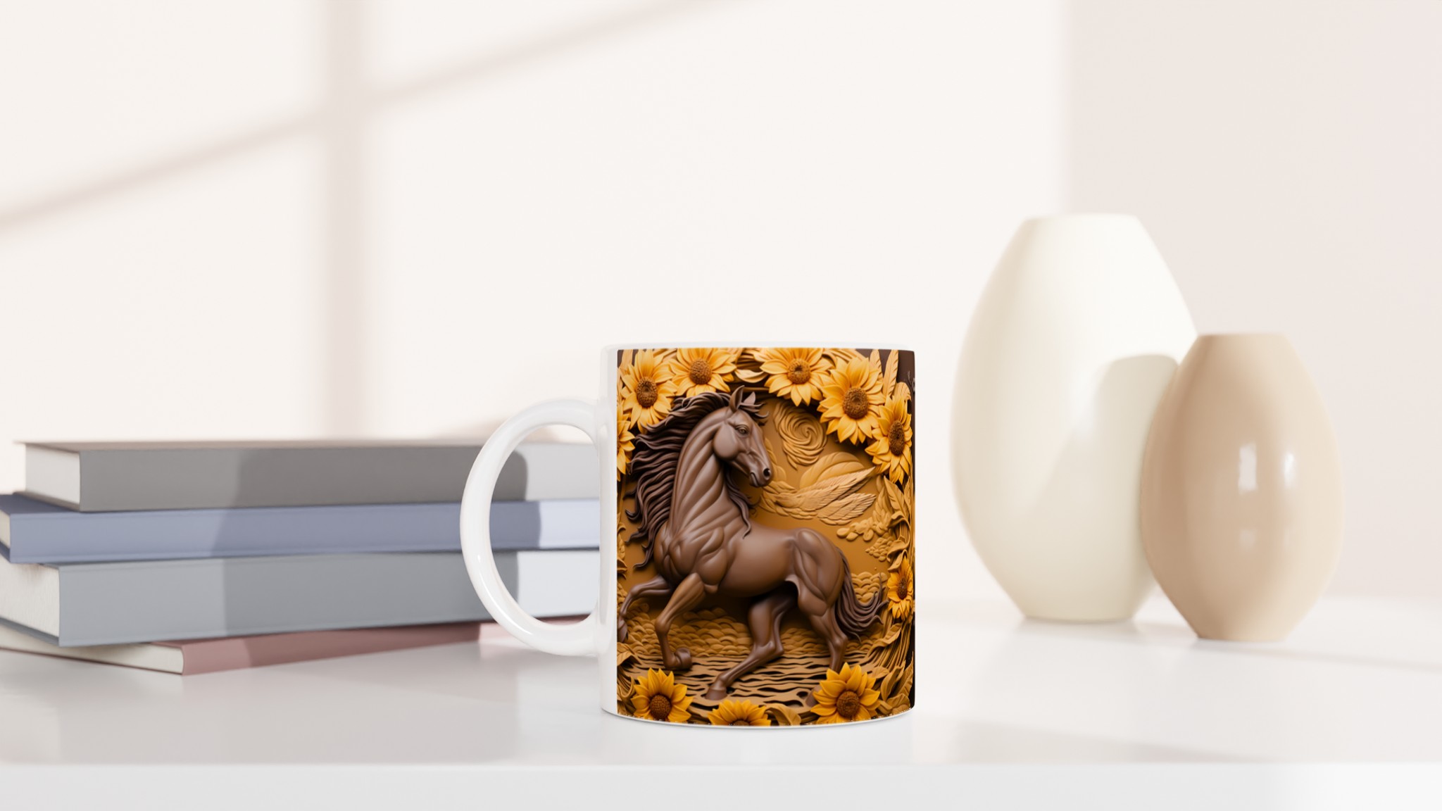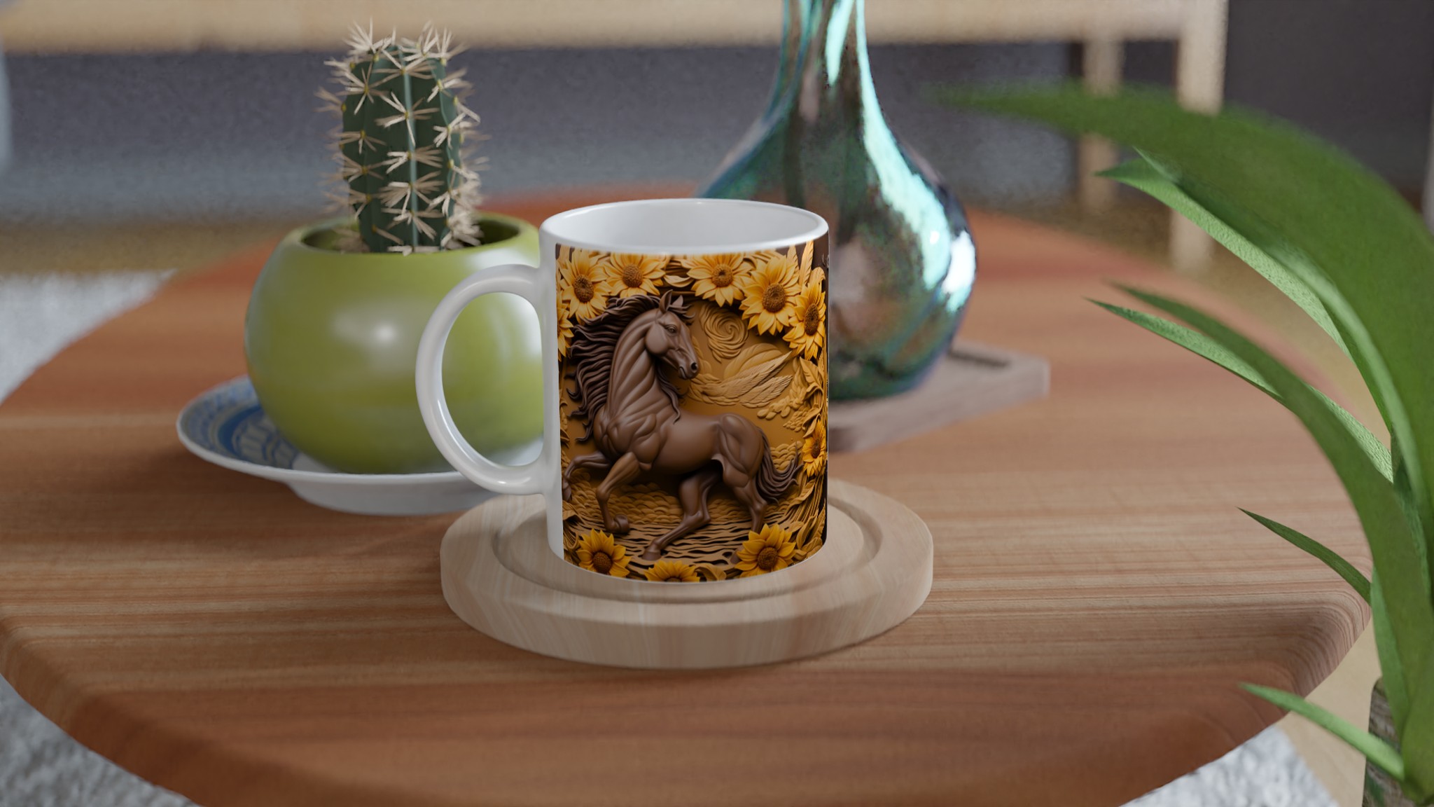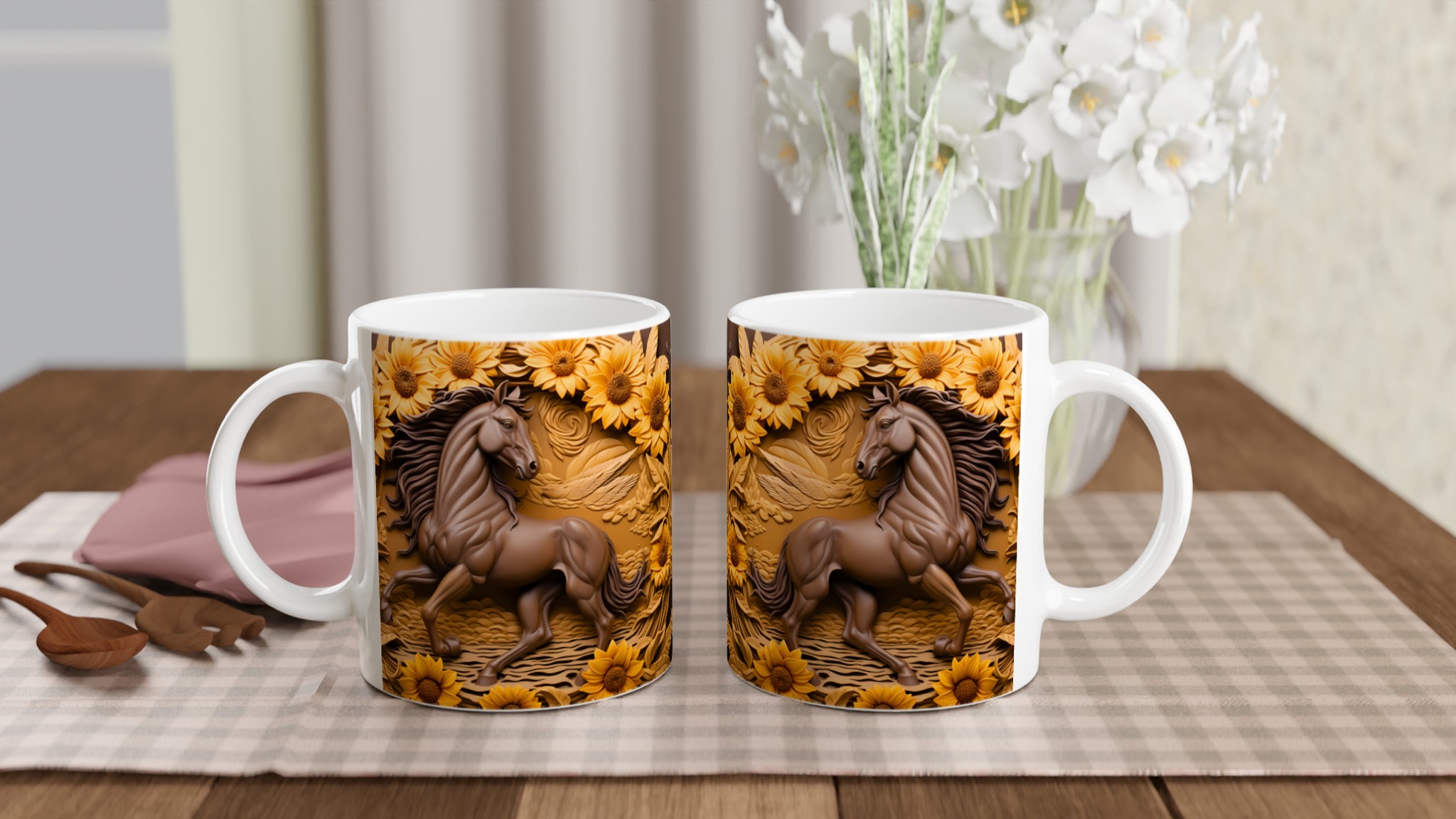 Sun-Kissed Equine Artistry – Ceramic Mug 11oz, in Your Choice of Seven Vibrant Hues