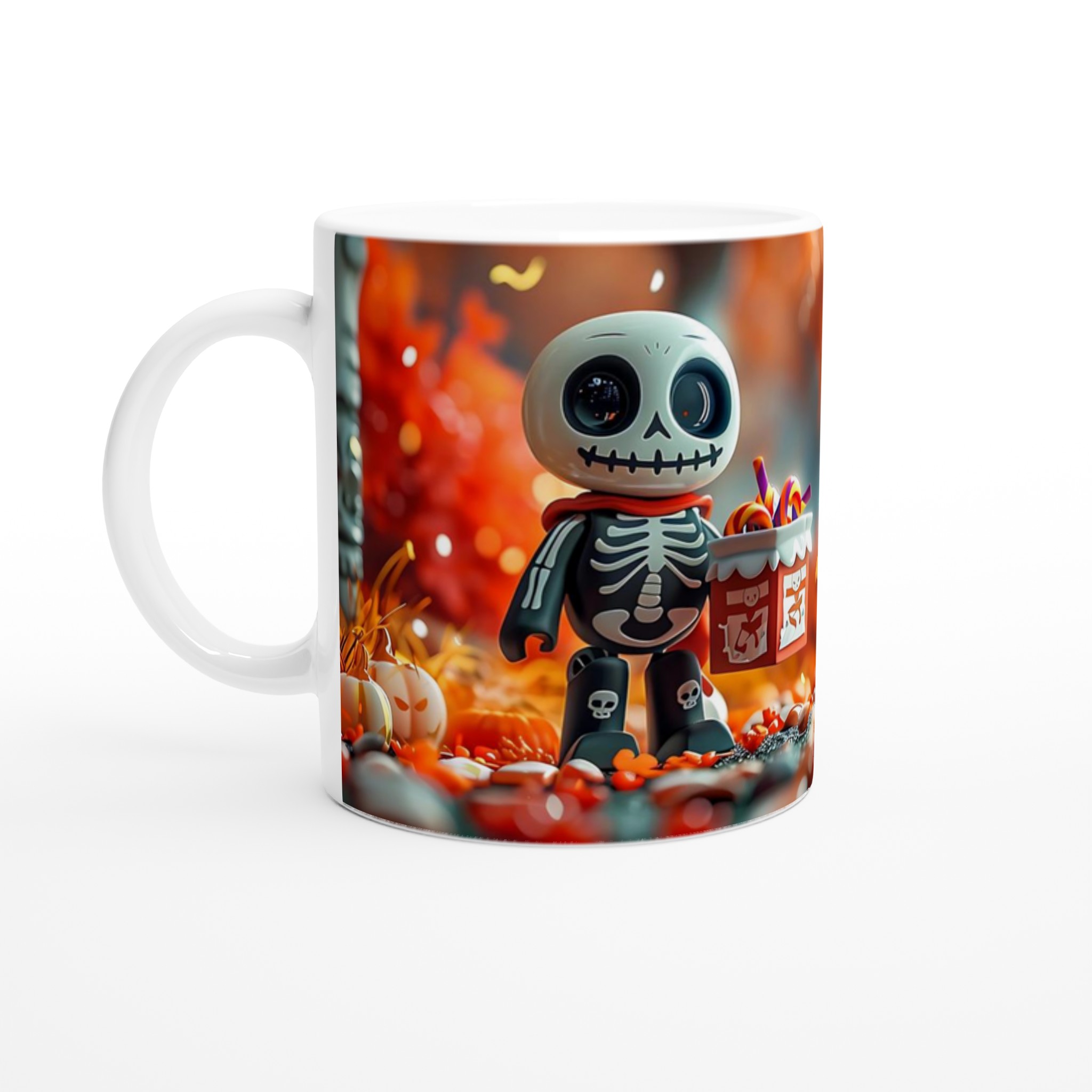 Cute Skeleton Trick-or-Treater 11oz Ceramic Mug – Spooky & Sweet Fall Decor