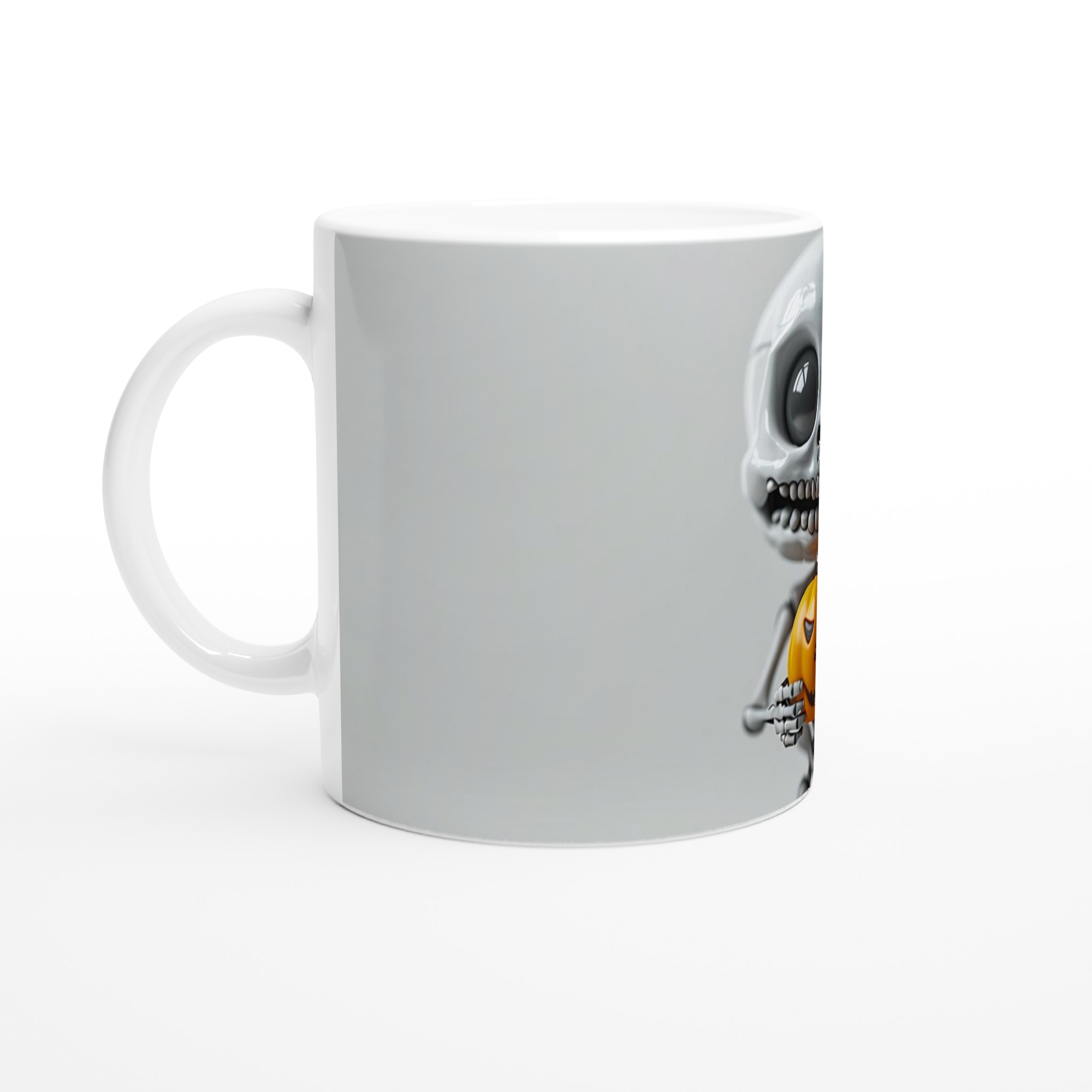 Spooky Cute Skeleton & Pumpkin 11oz Ceramic Mug – Perfect for Halloween & Fall Fun!