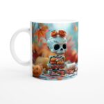 Charming Fall Skeleton & Pumpkin Mug – Festive Autumn Beverage Ceramic 11oz Cup