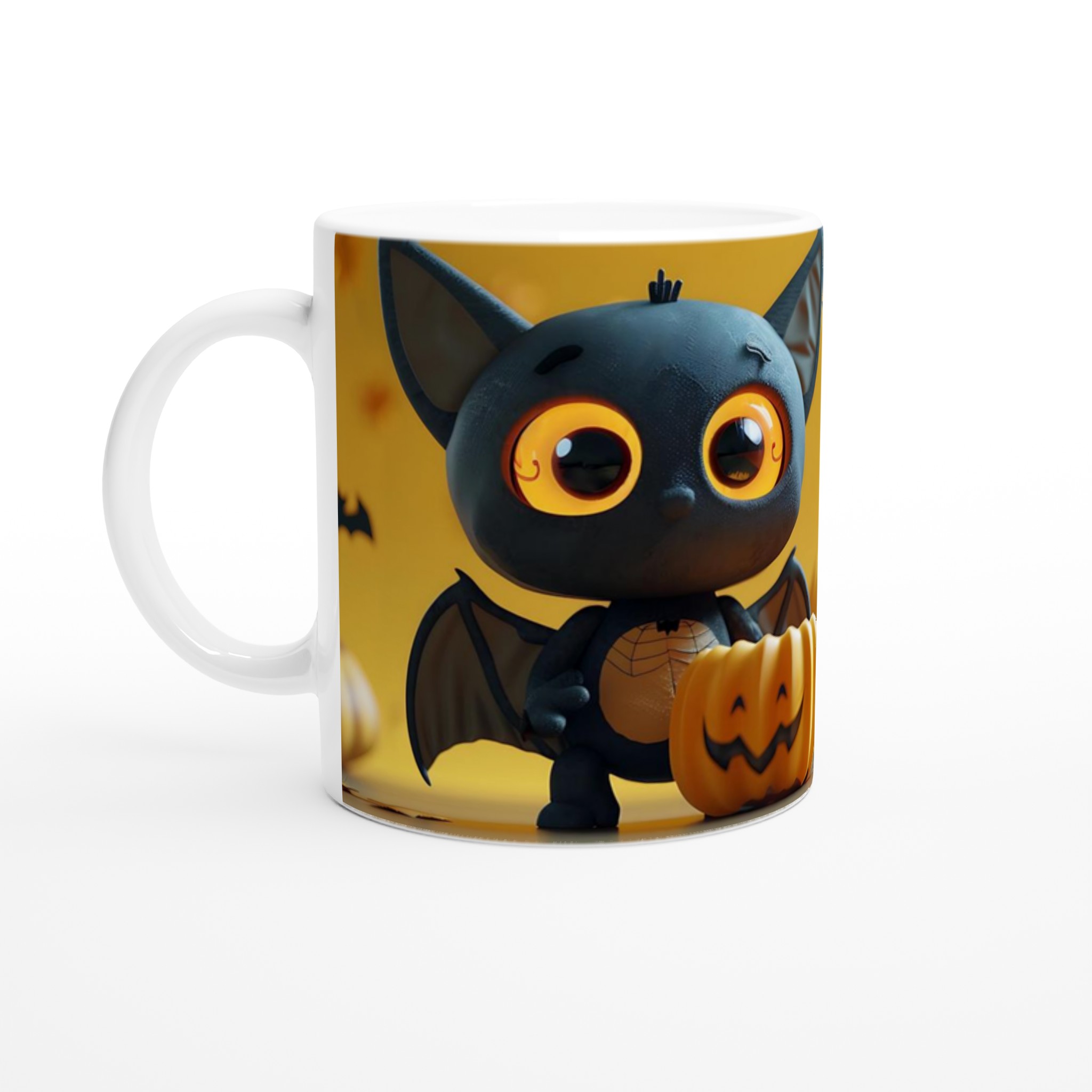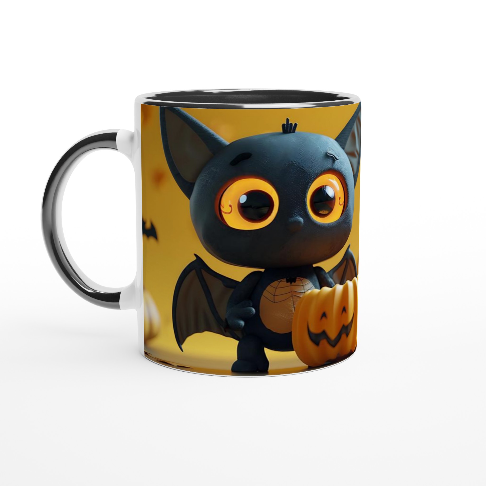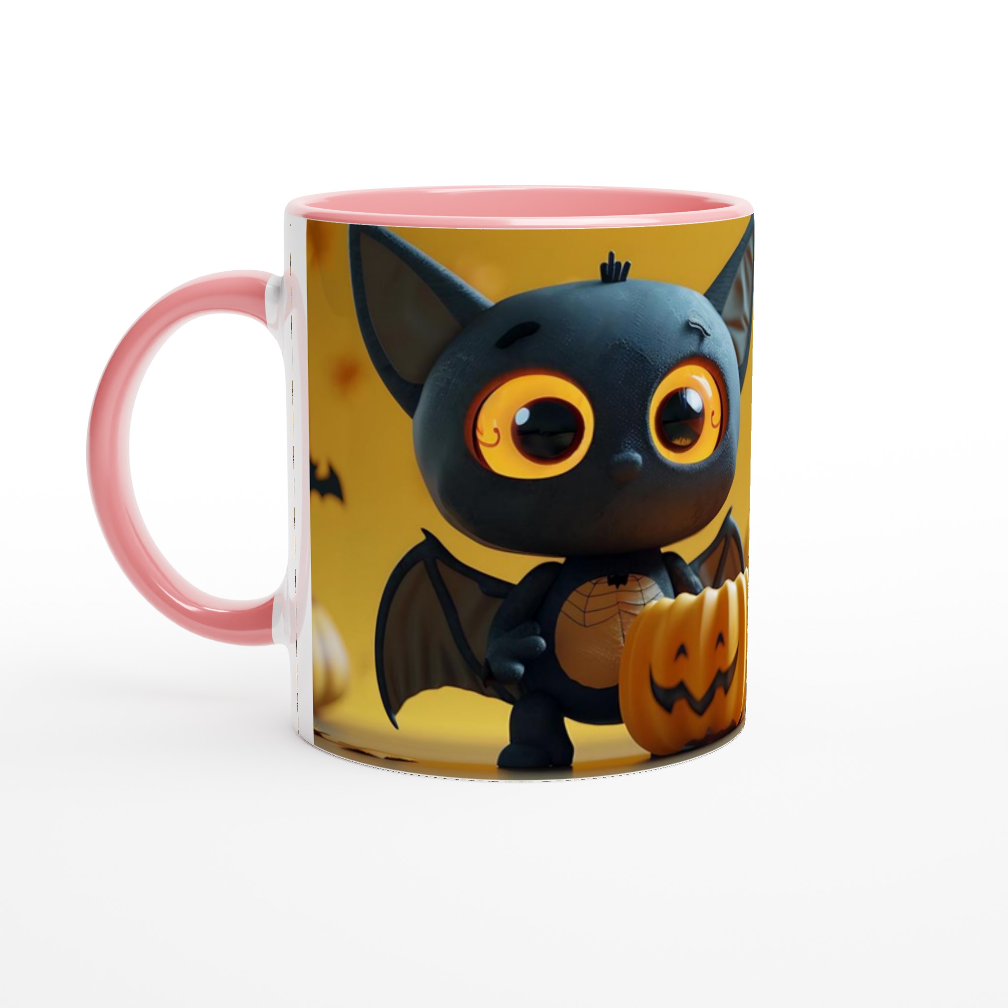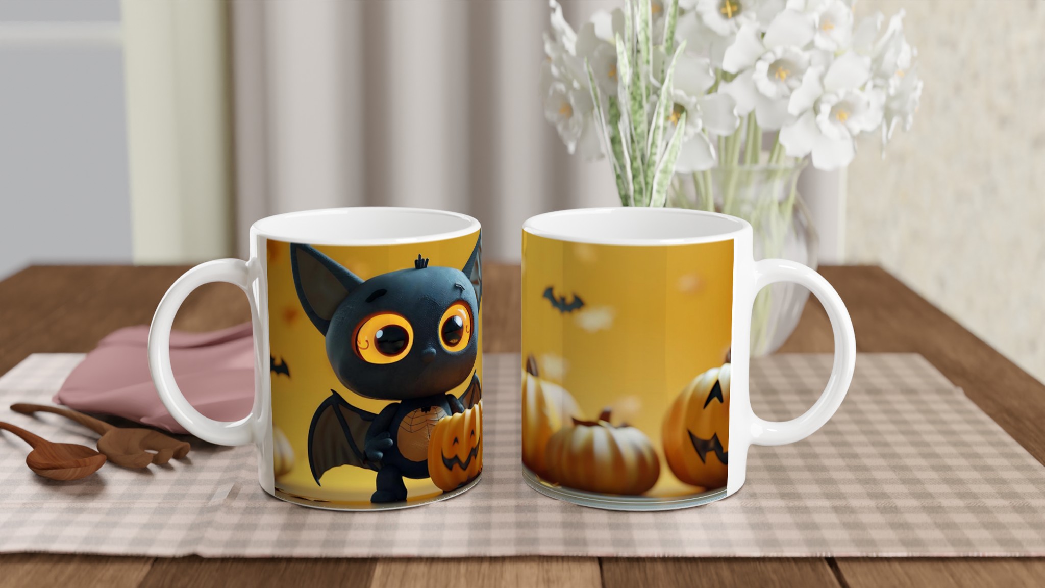 Spooky-Cute Bat & Pumpkin 11oz Ceramic Mug – Perfect for Halloween Fun in Your Choice of Seven Hues!
