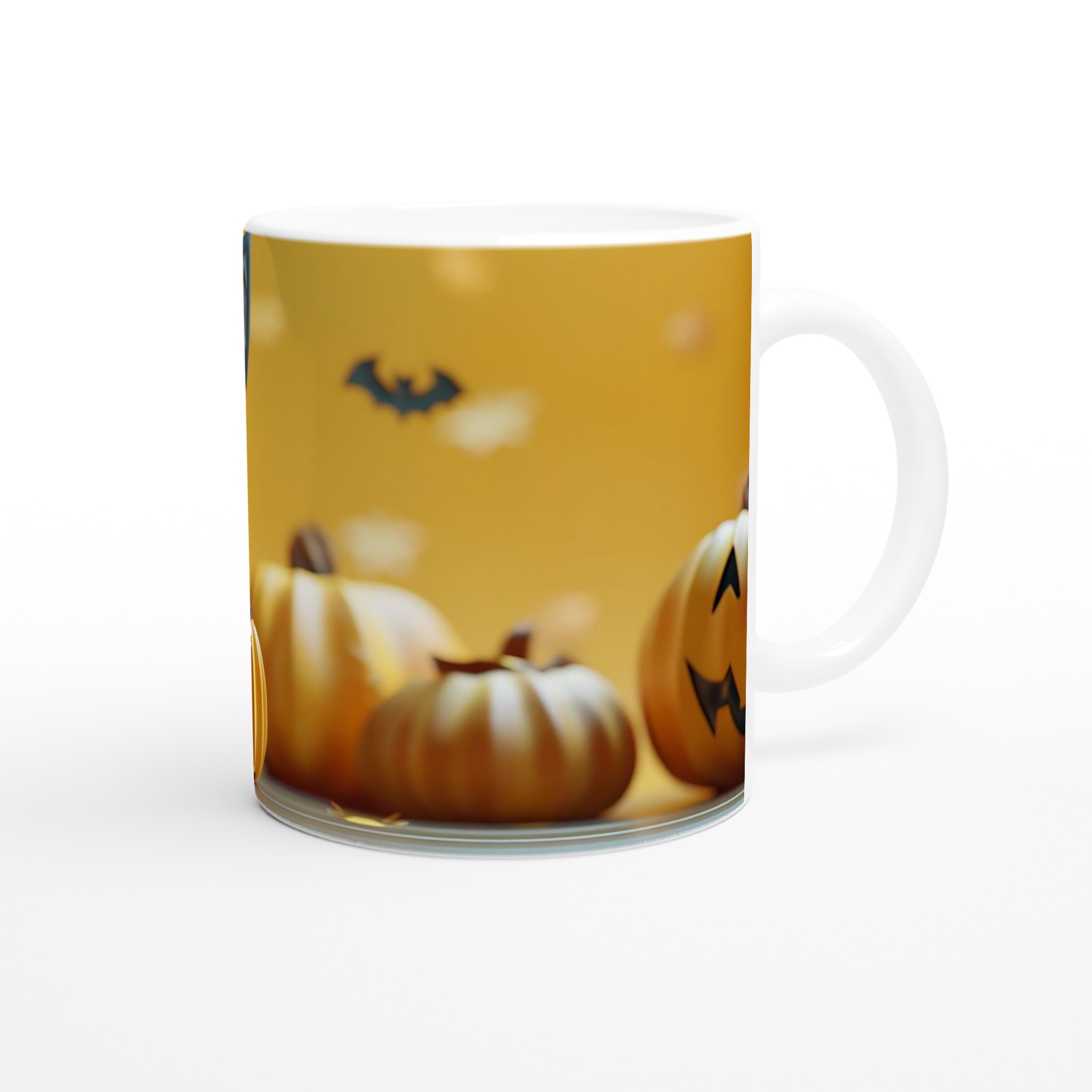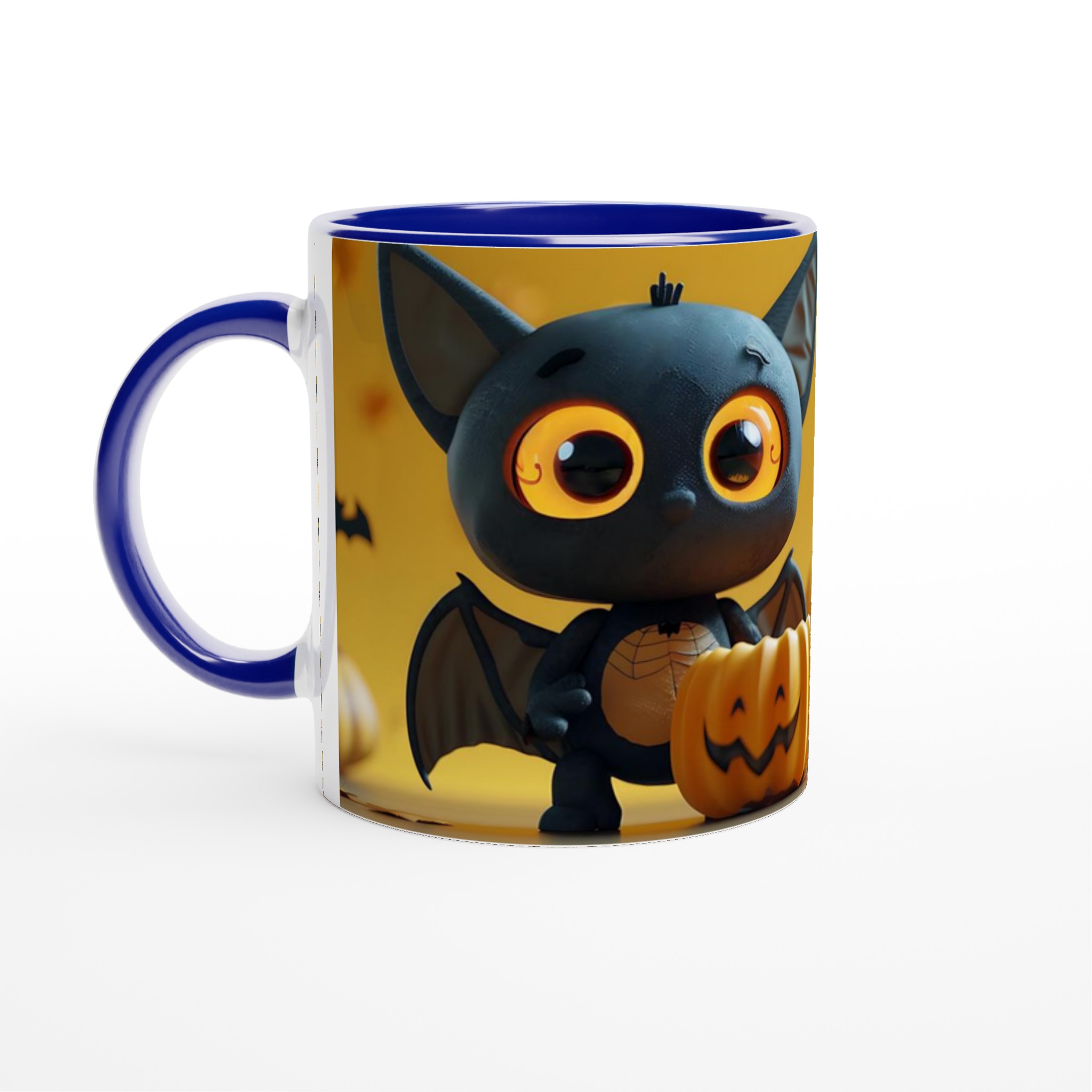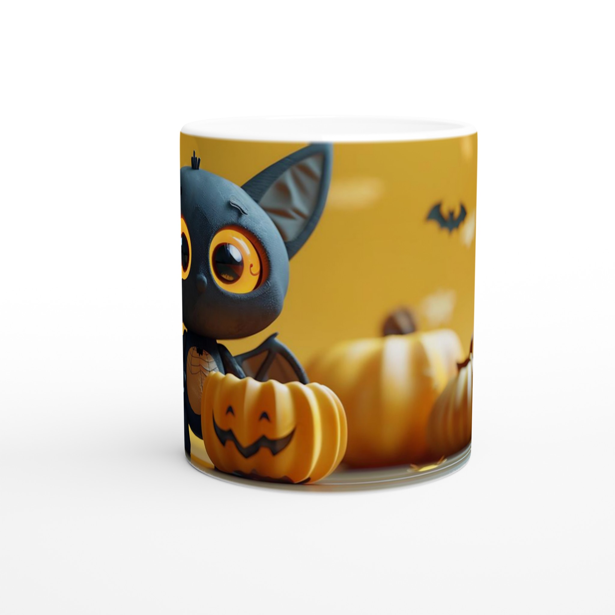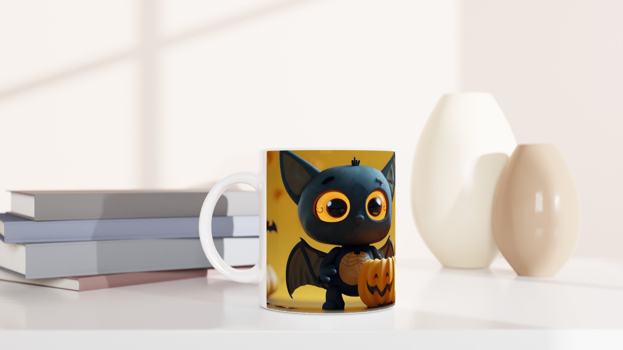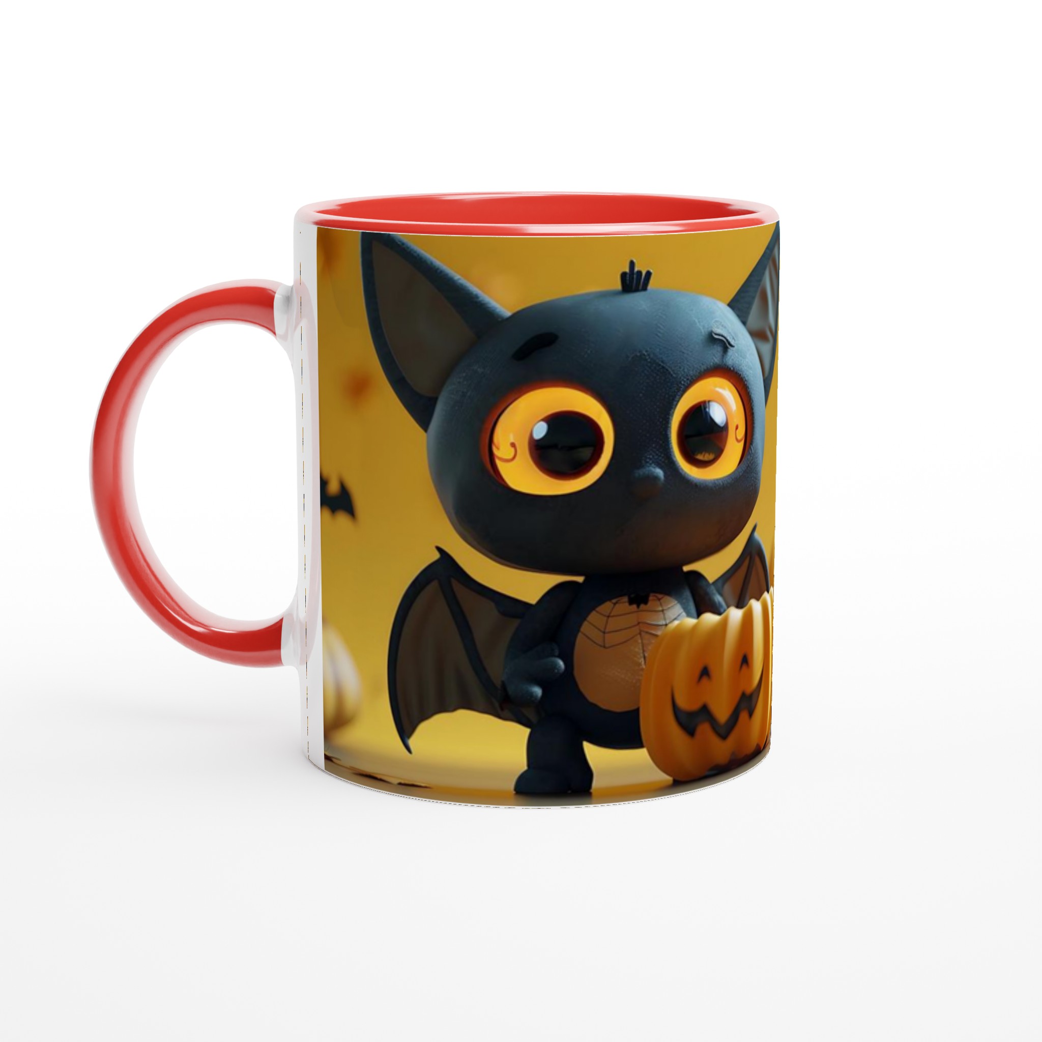 Spooky-Cute Bat & Pumpkin 11oz Ceramic Mug – Perfect for Halloween Fun in Your Choice of Seven Hues!