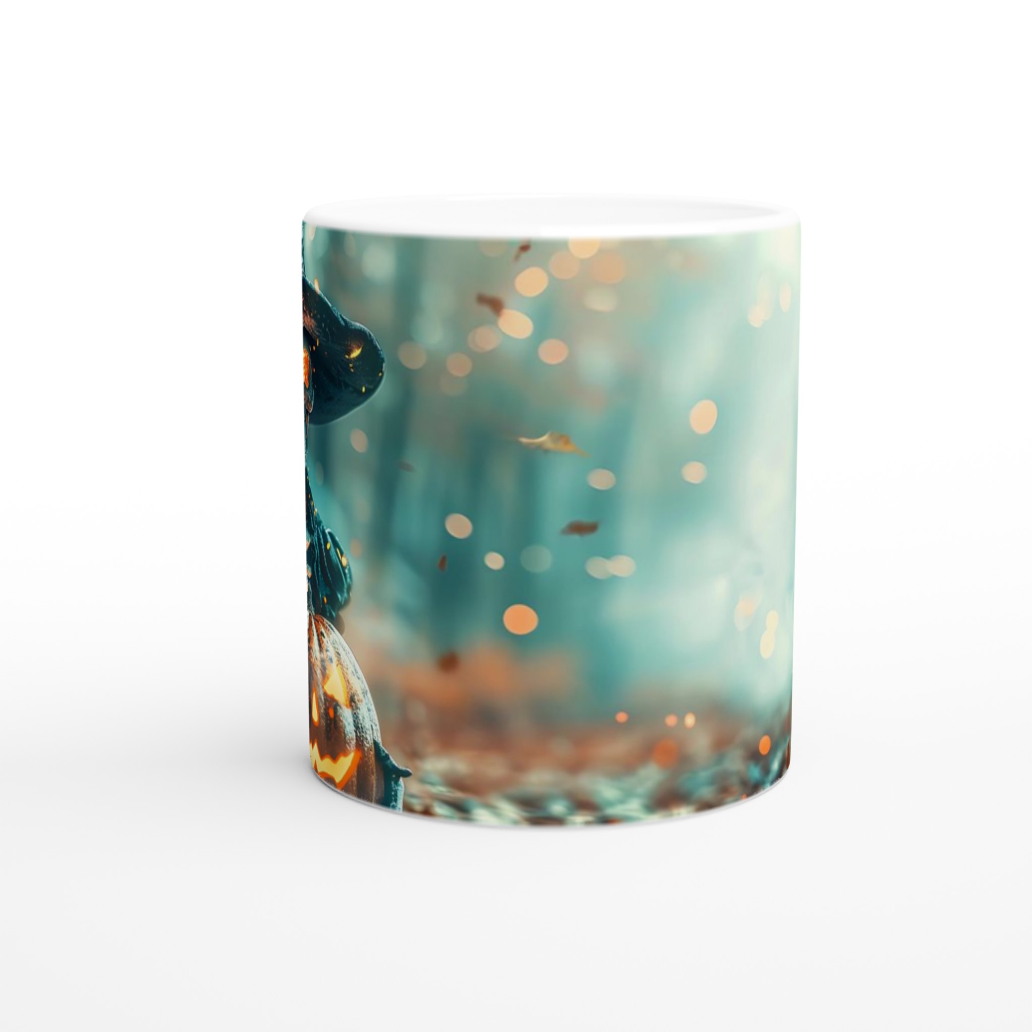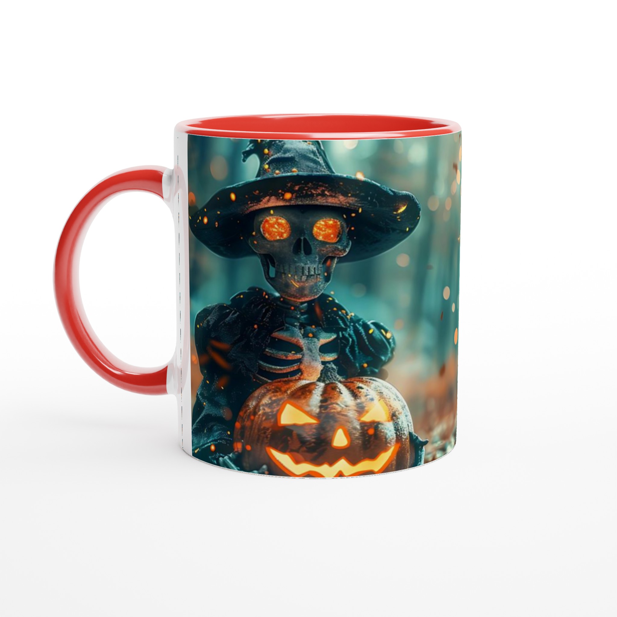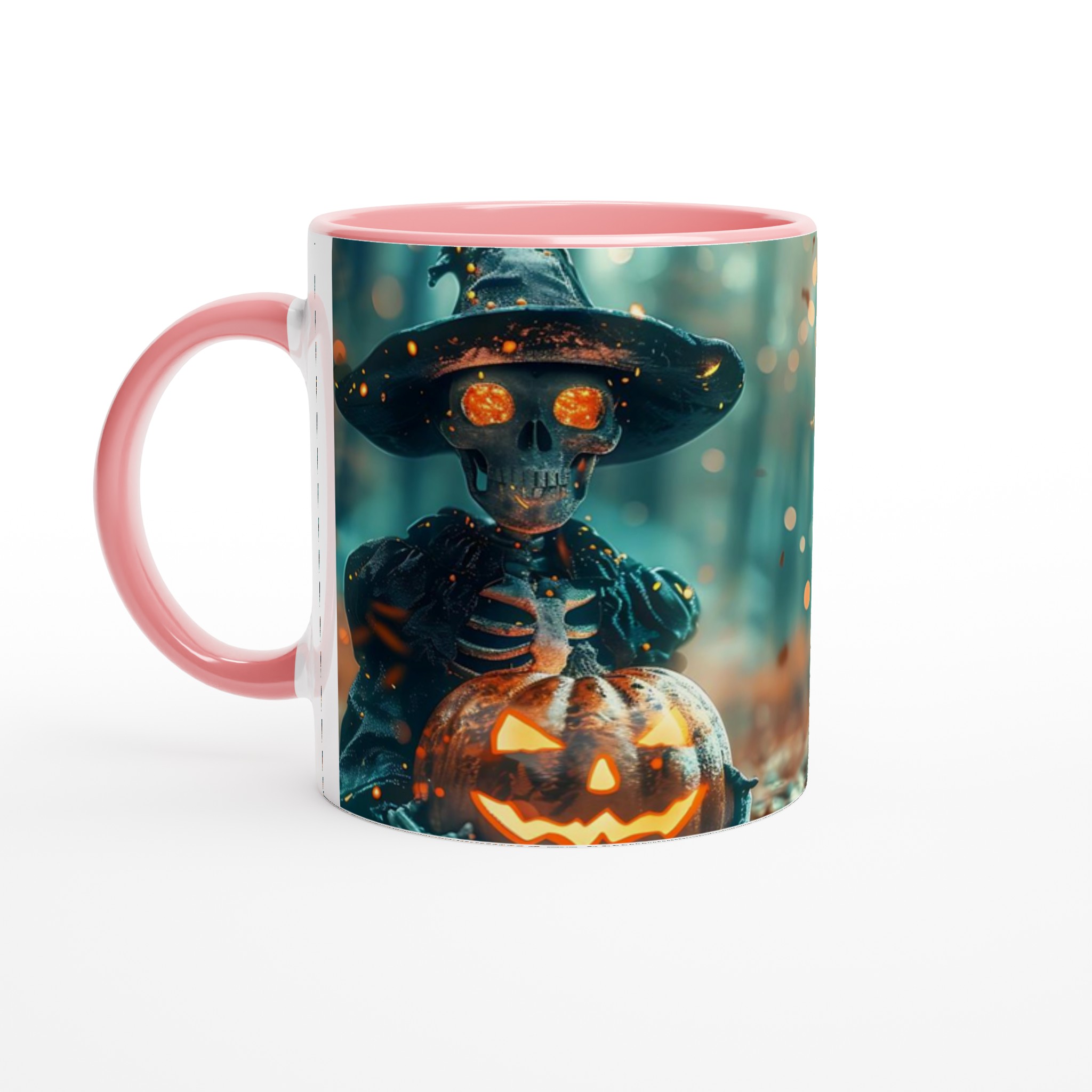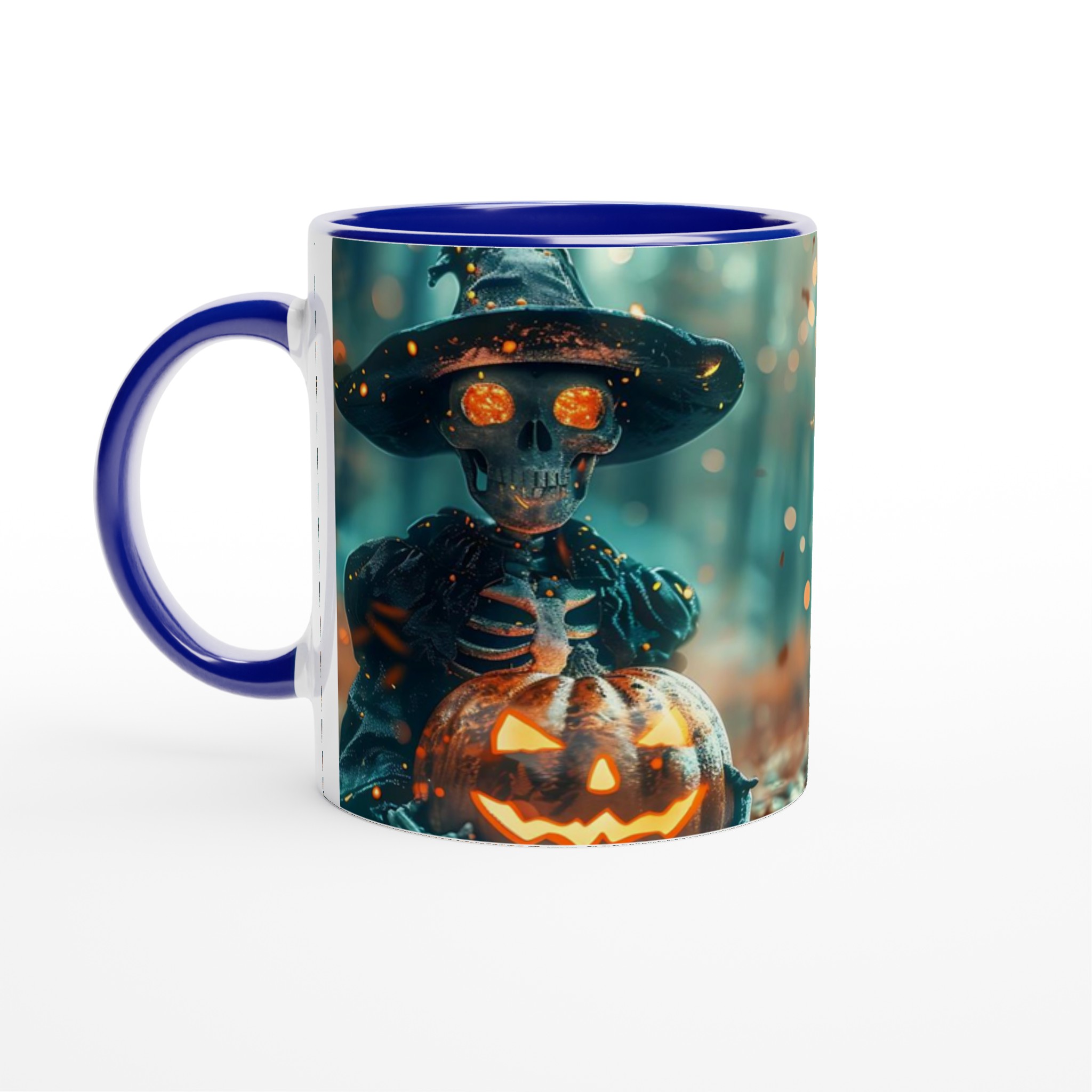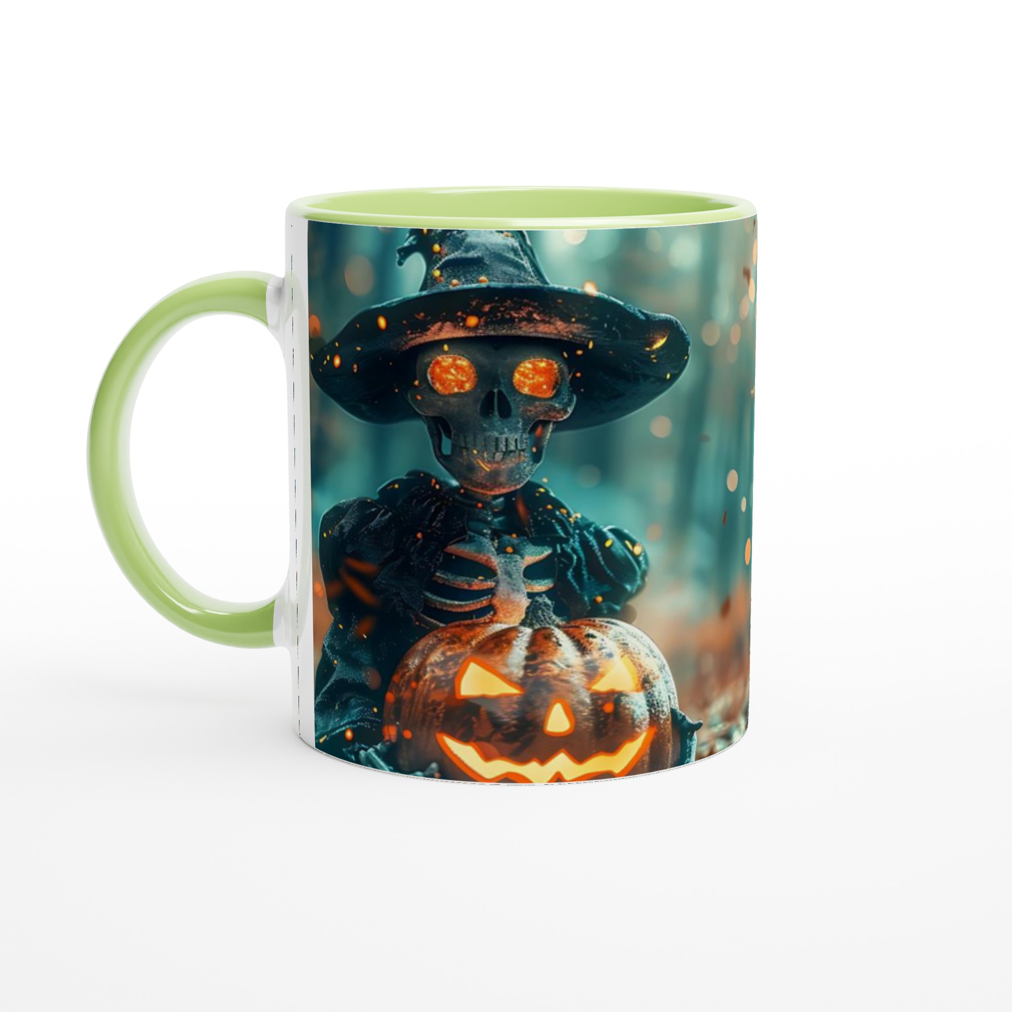 Spooky Forest Skeleton & Jack-o’-Lantern 11oz Ceramic Mug – Perfect for Halloween Haunts in Your Choice of Color