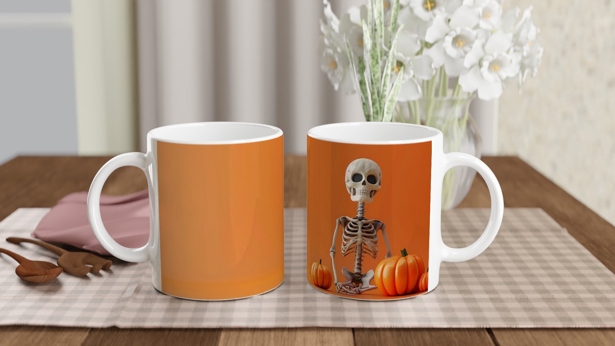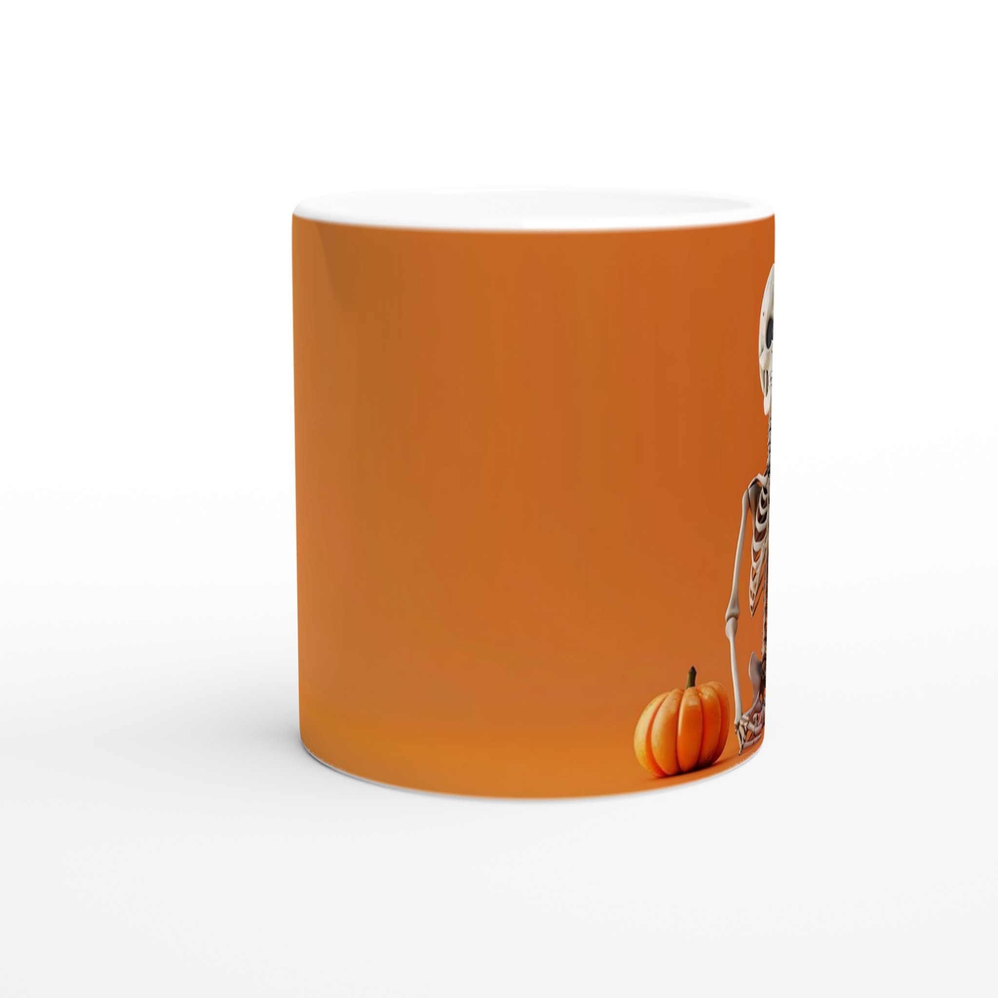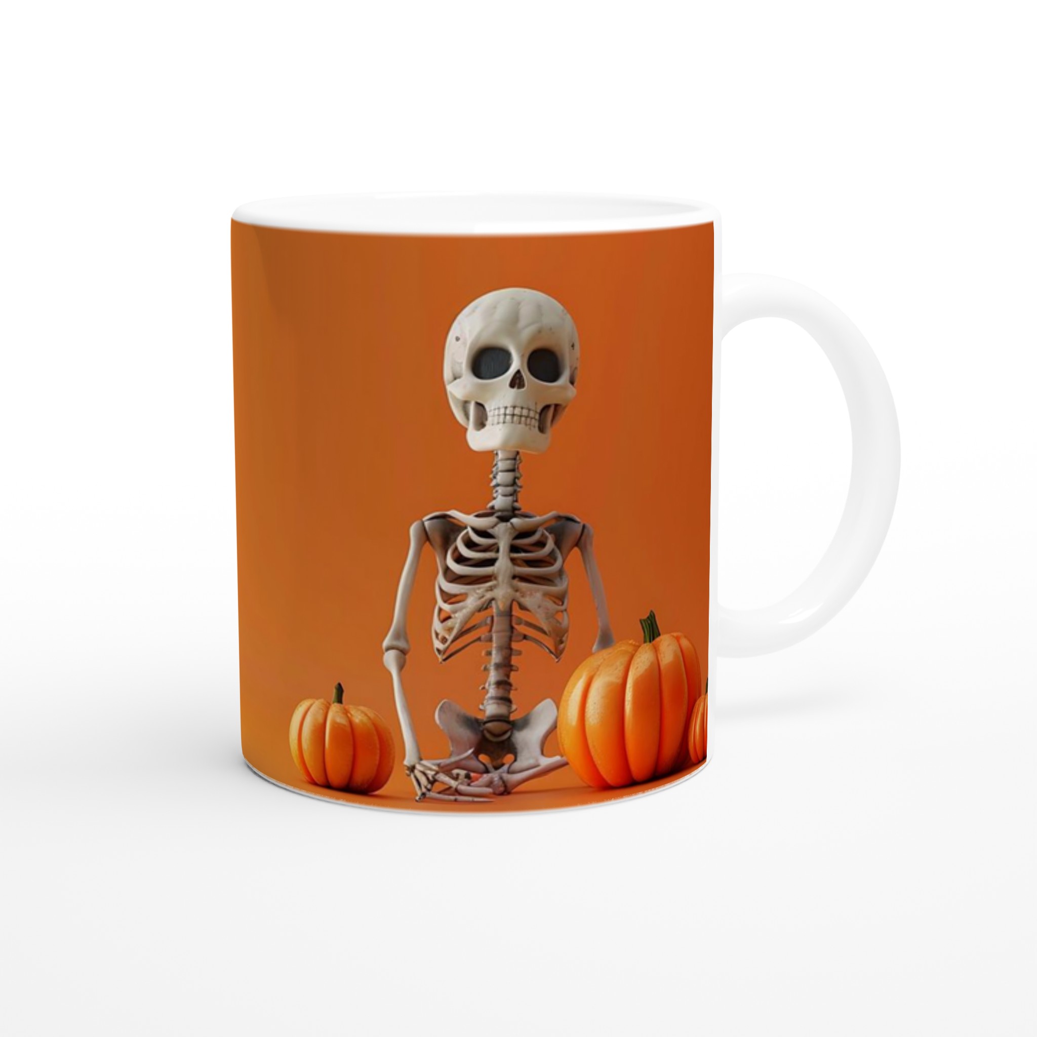 Spooky Skeleton & Pumpkin Festivities 11oz Ceramic Mug – Choose Your Perfect Hue!
