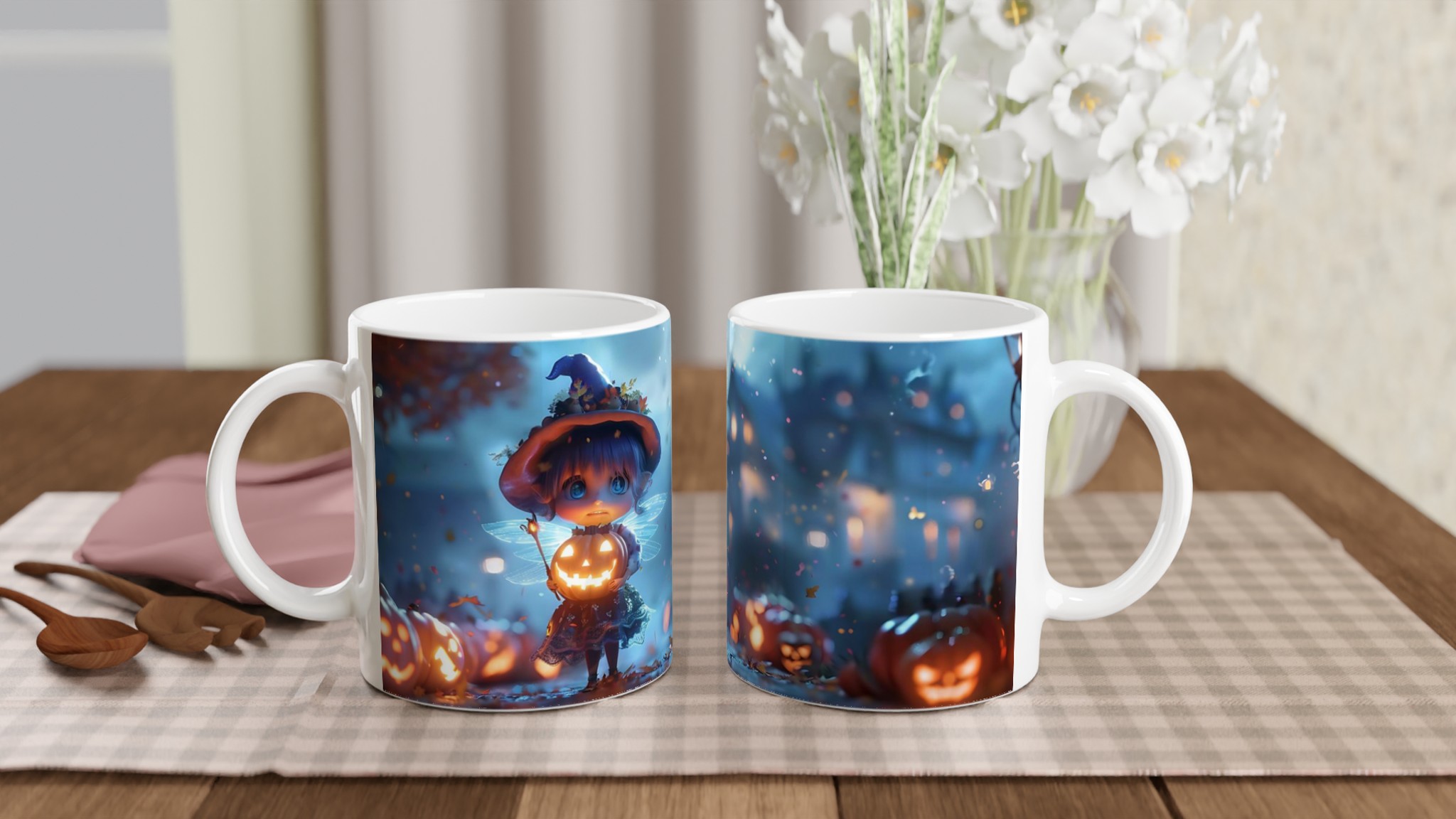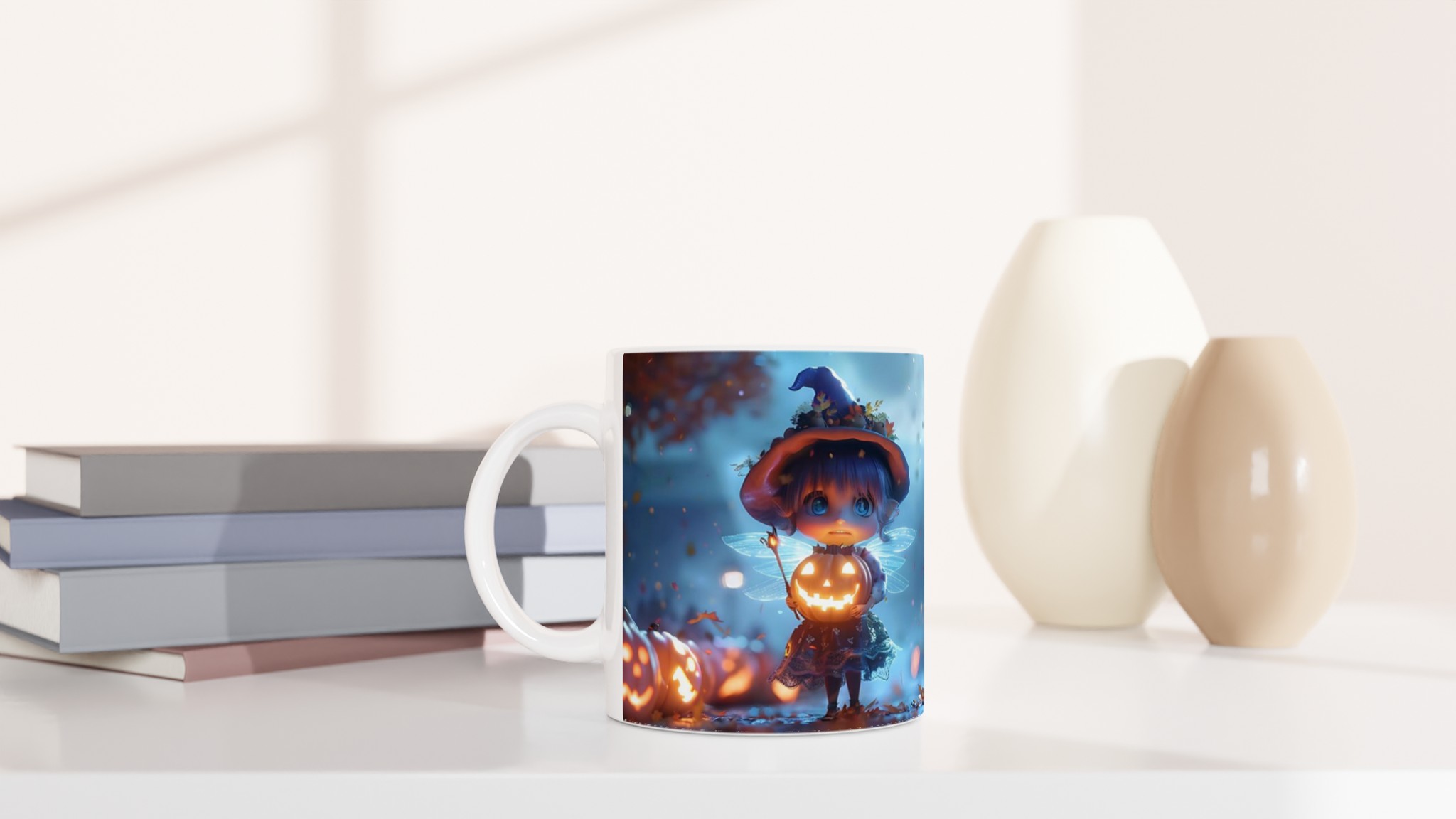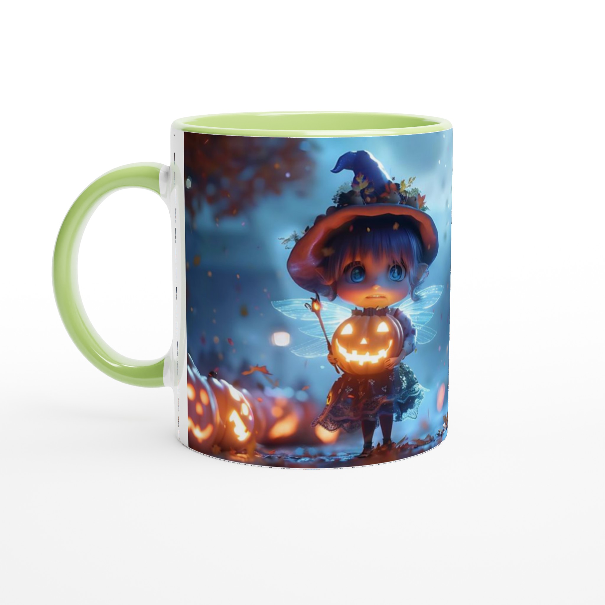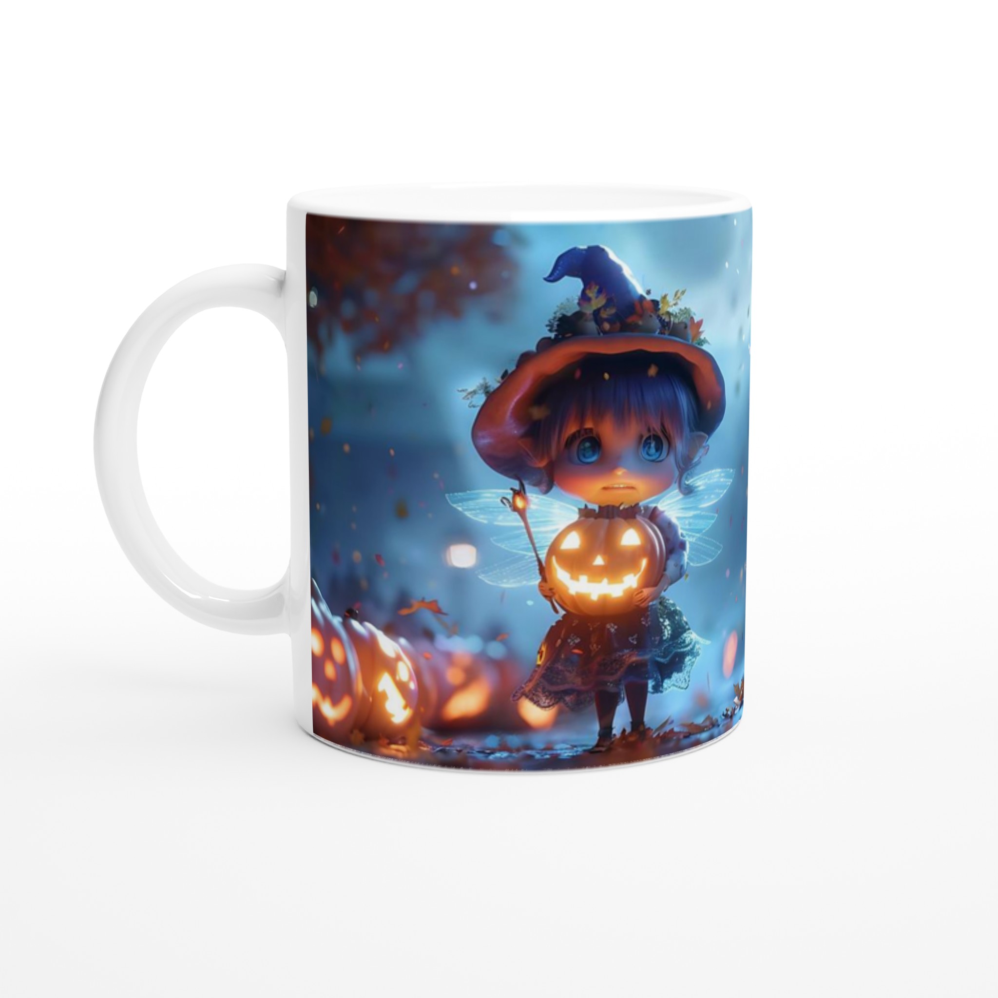 Enchanted Pumpkin Fairy 11oz Ceramic Mug – Whimsical Halloween Magic in Your Choice of Seven Hues