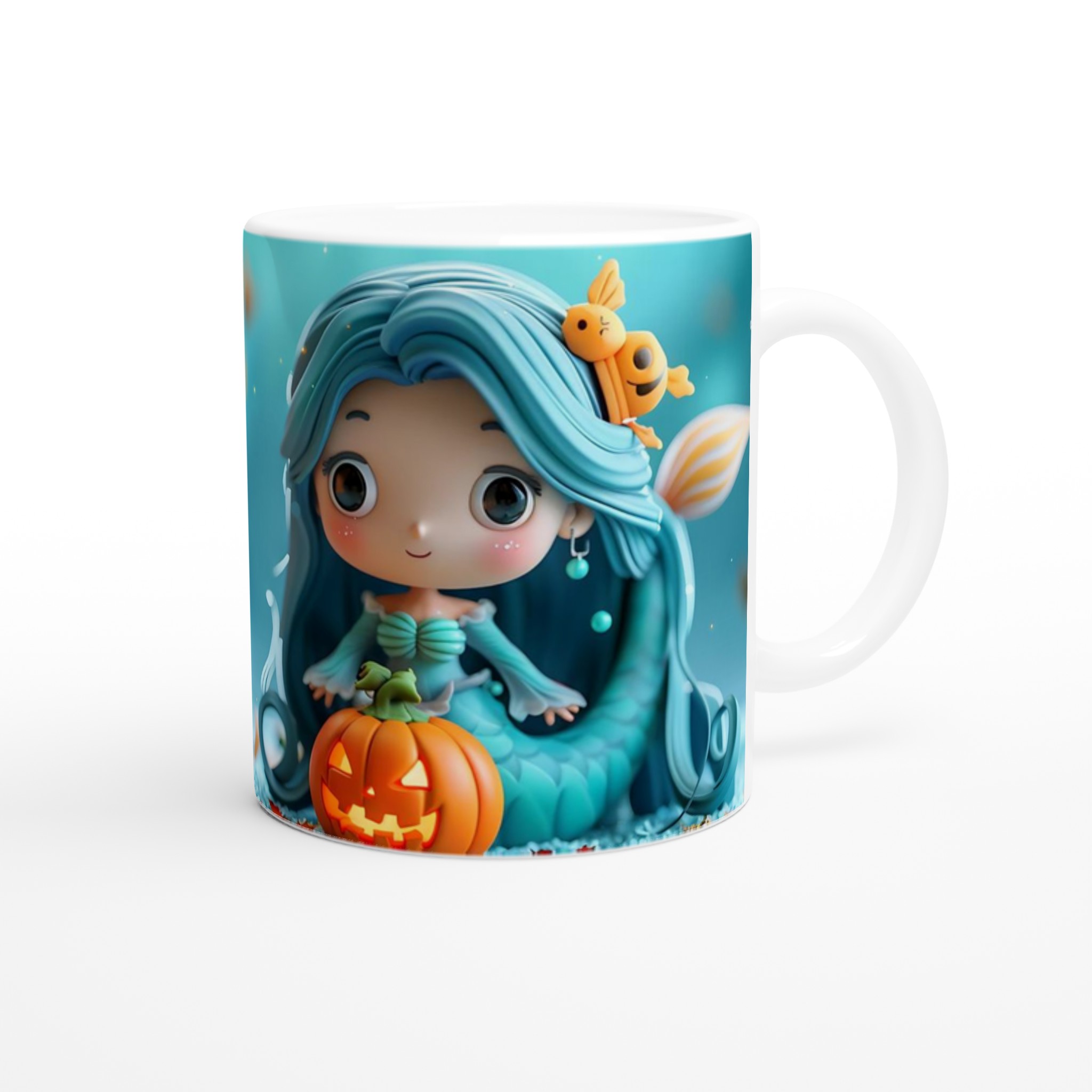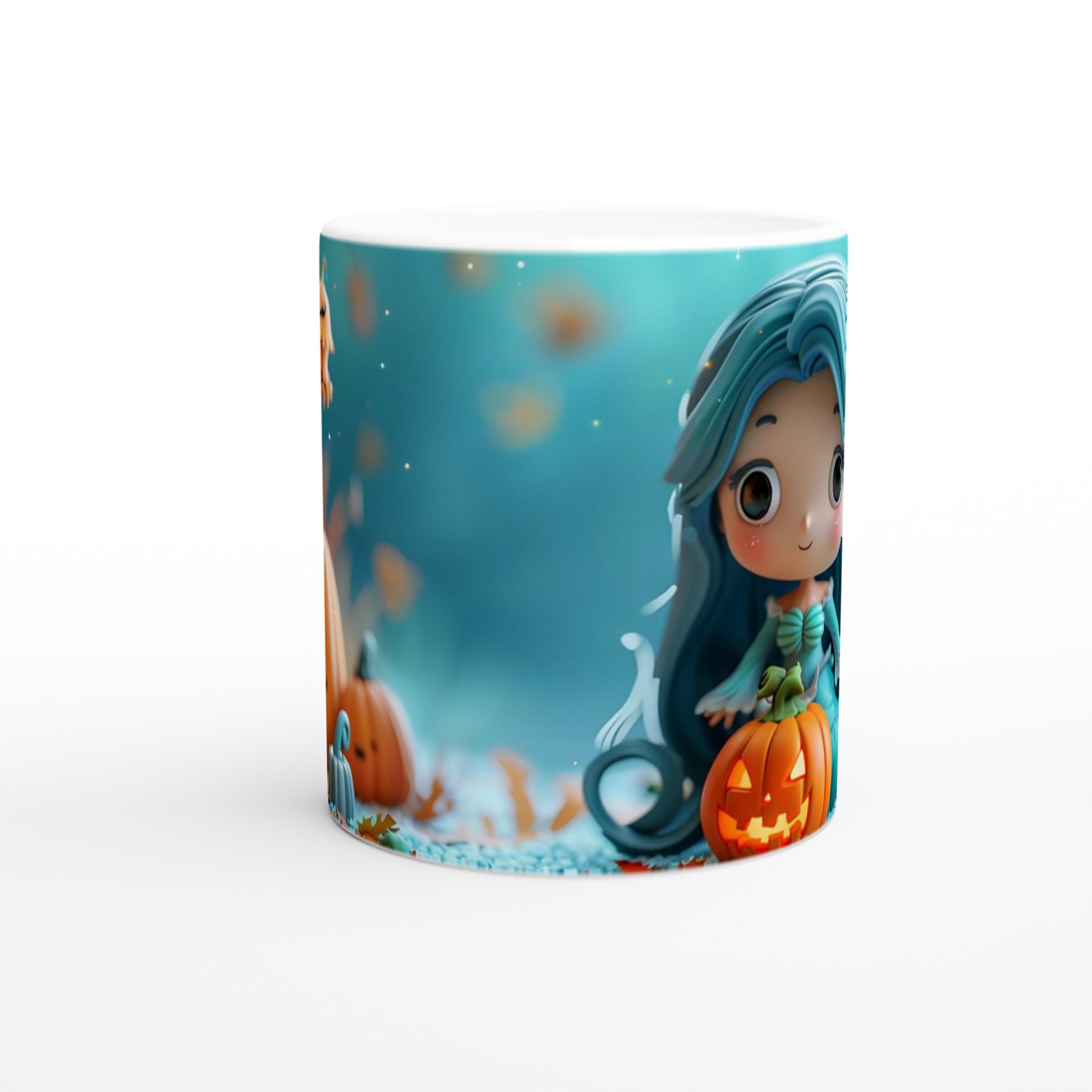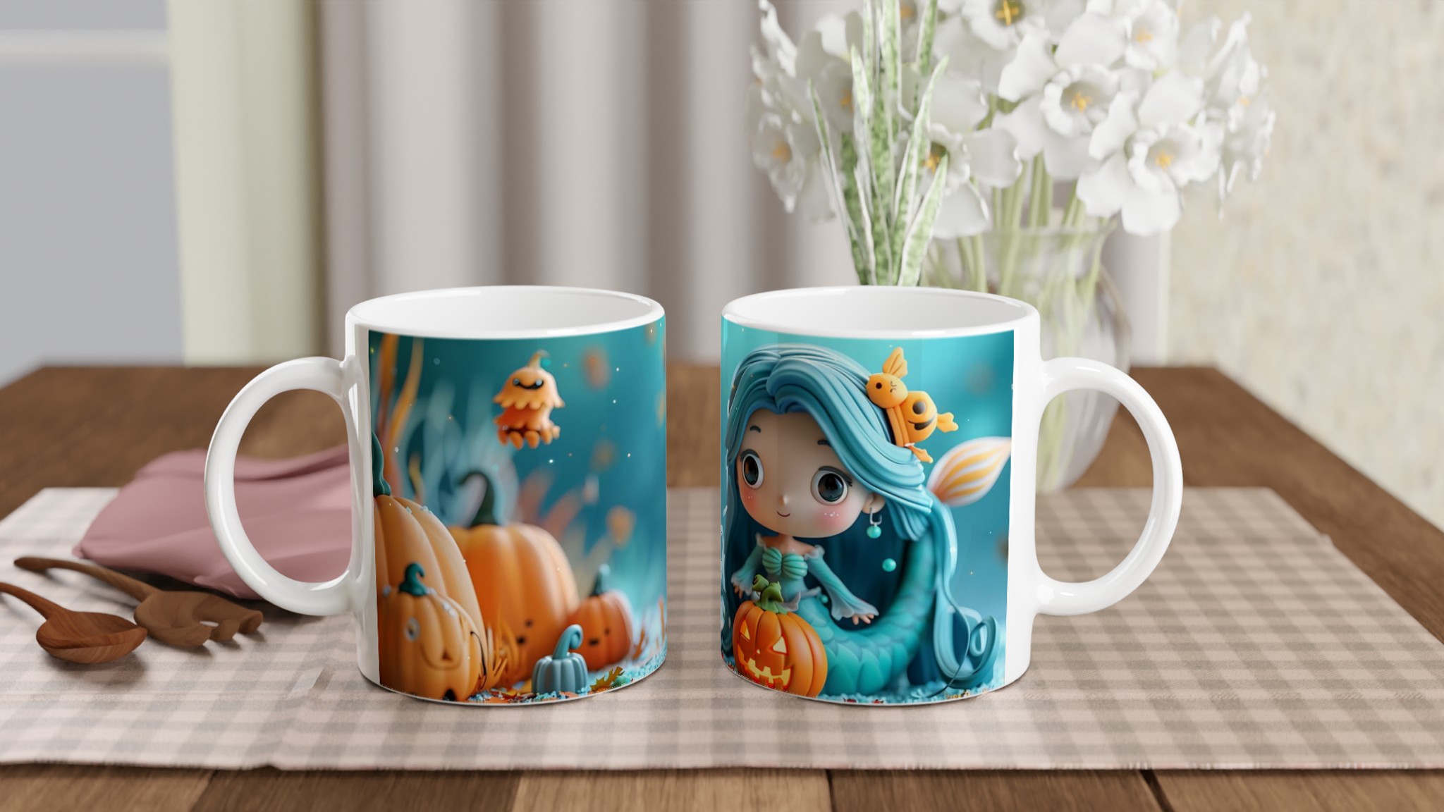 Enchanted Ocean Halloween Mermaid & Pumpkin Mug – Your Choice of 7 Vibrant Colors