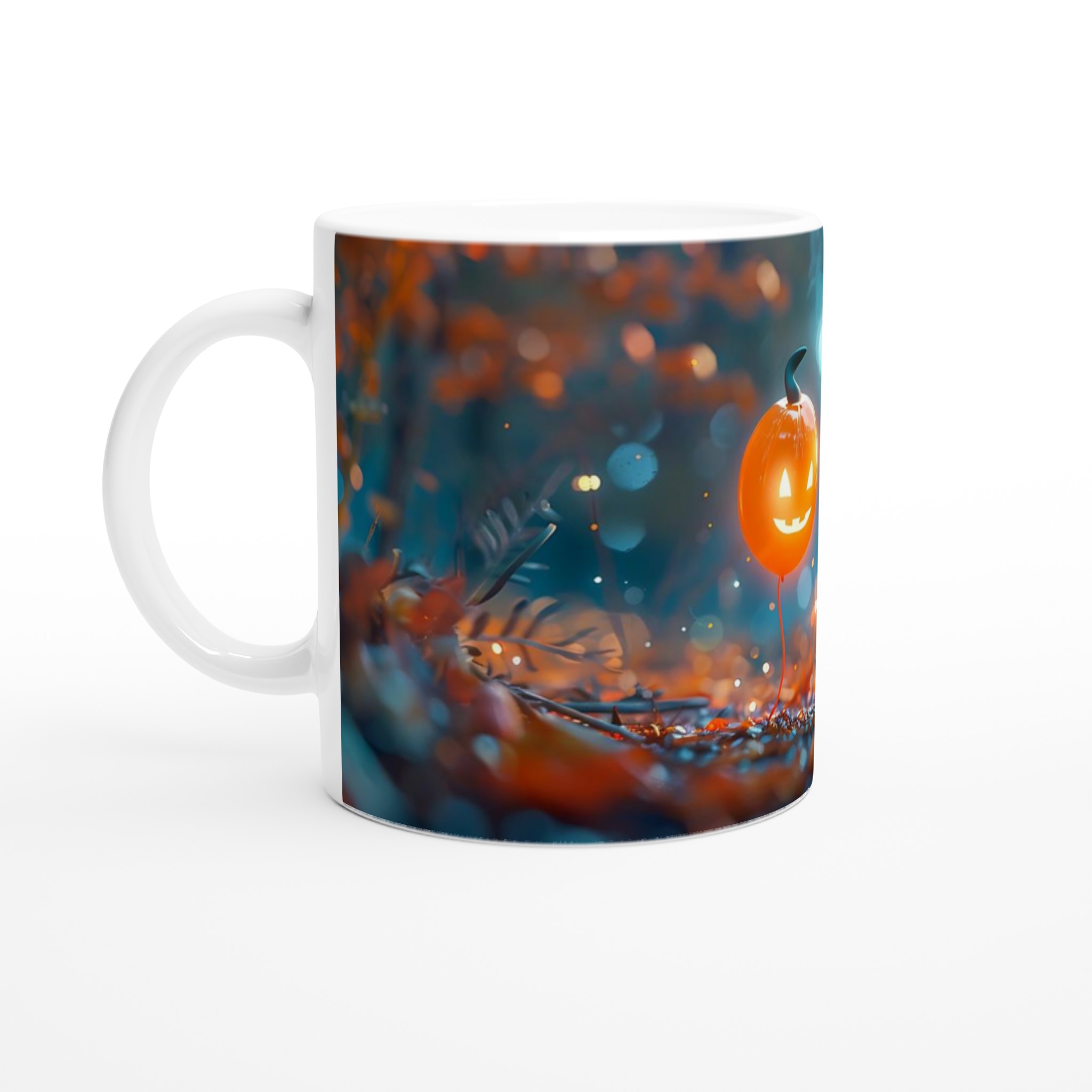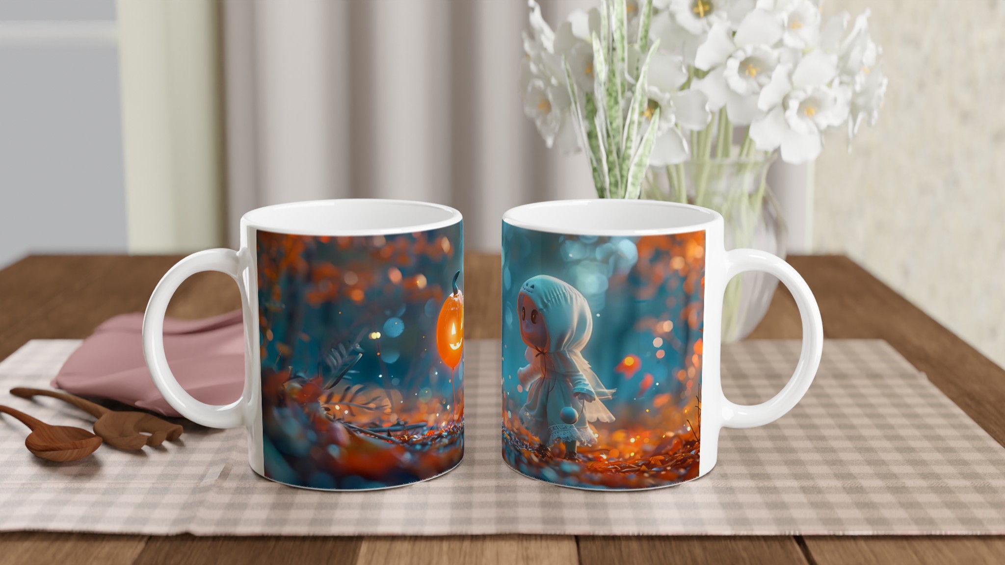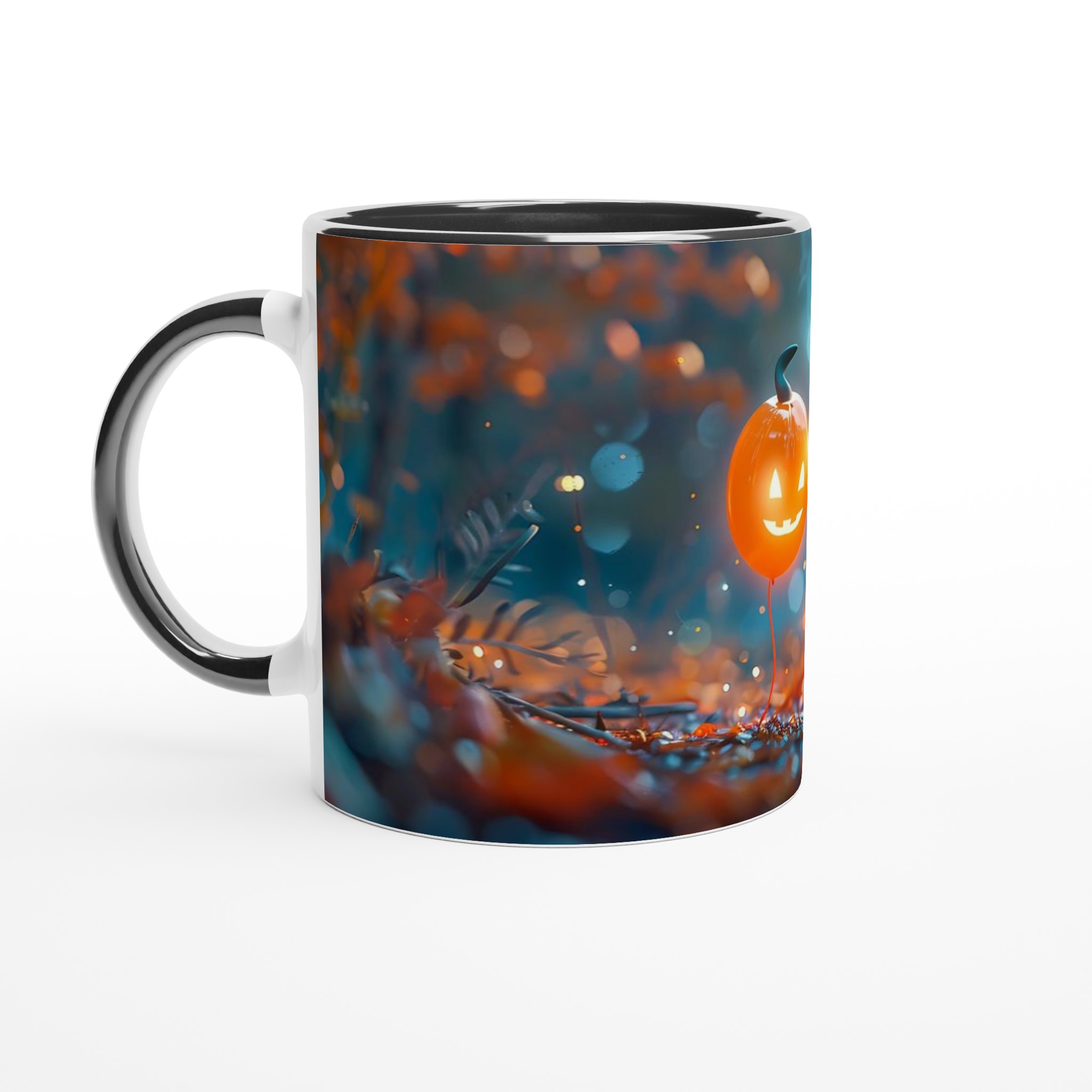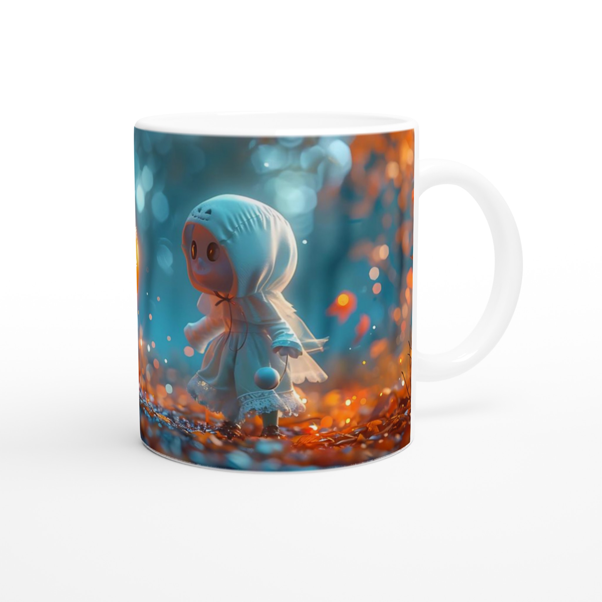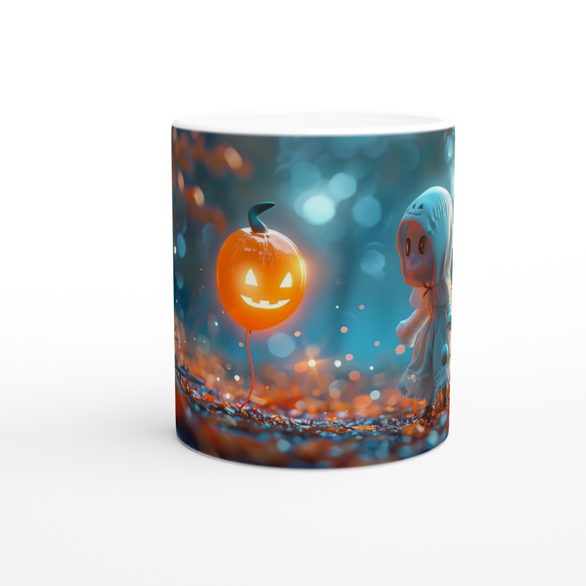 Enchanted Autumn Ghost & Pumpkin Halloween Mug – Spooky Cute Ceramic 11oz Coffee Cup in Your Choice of 7 Colors