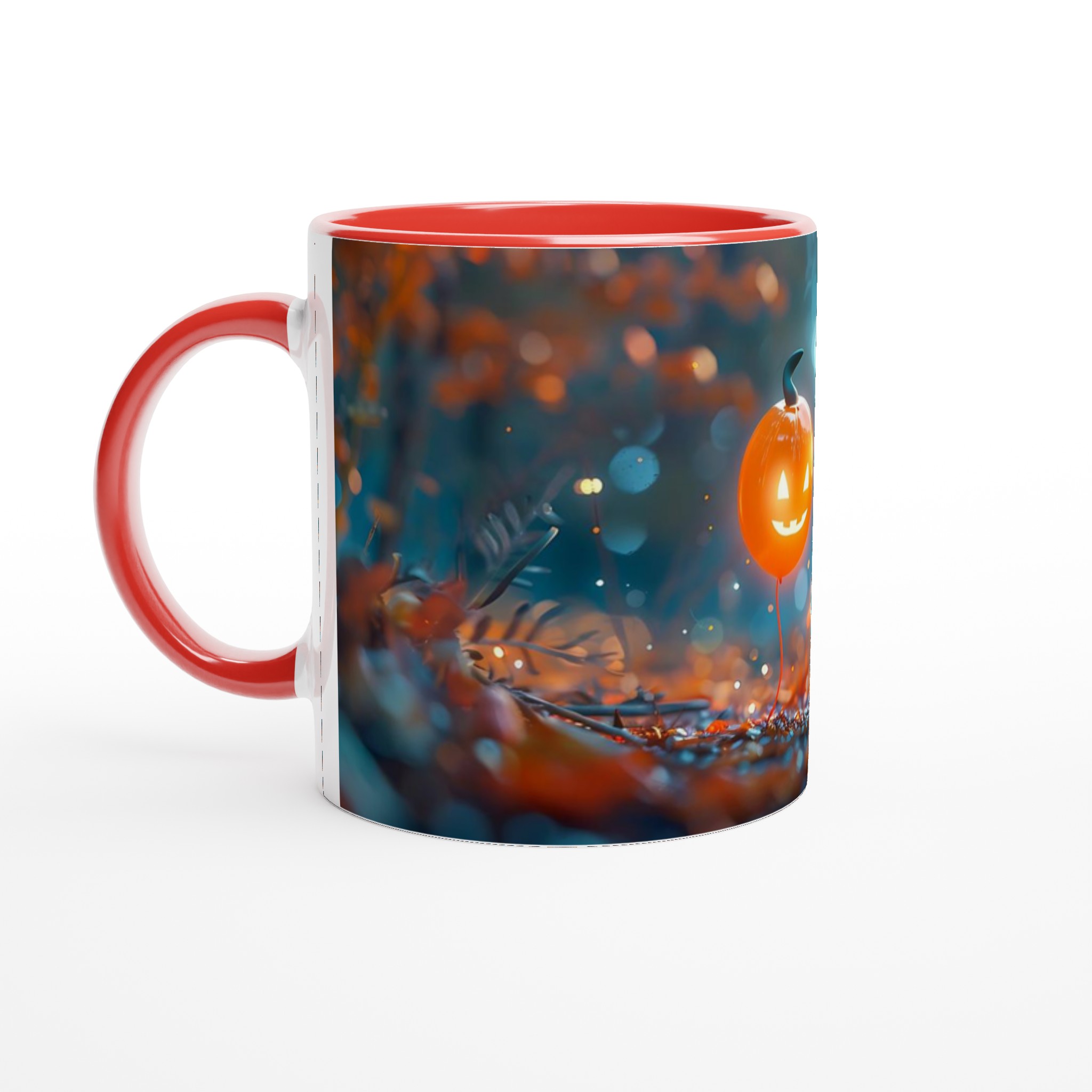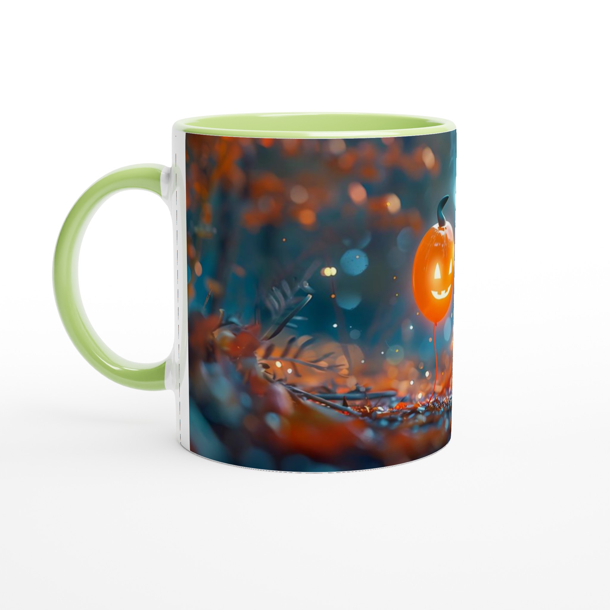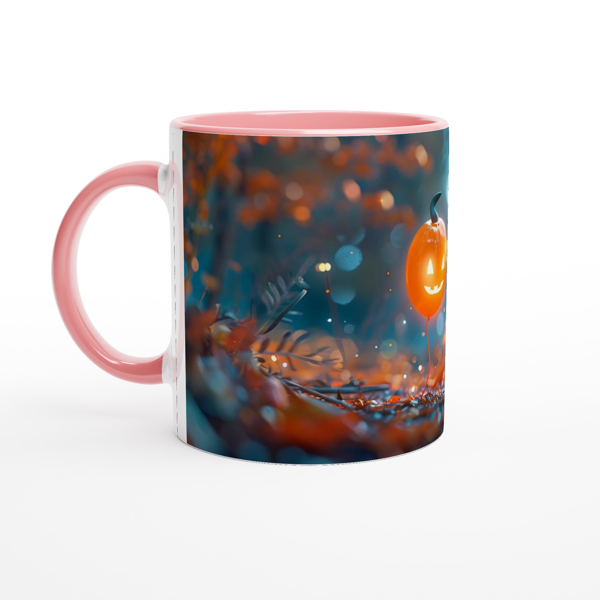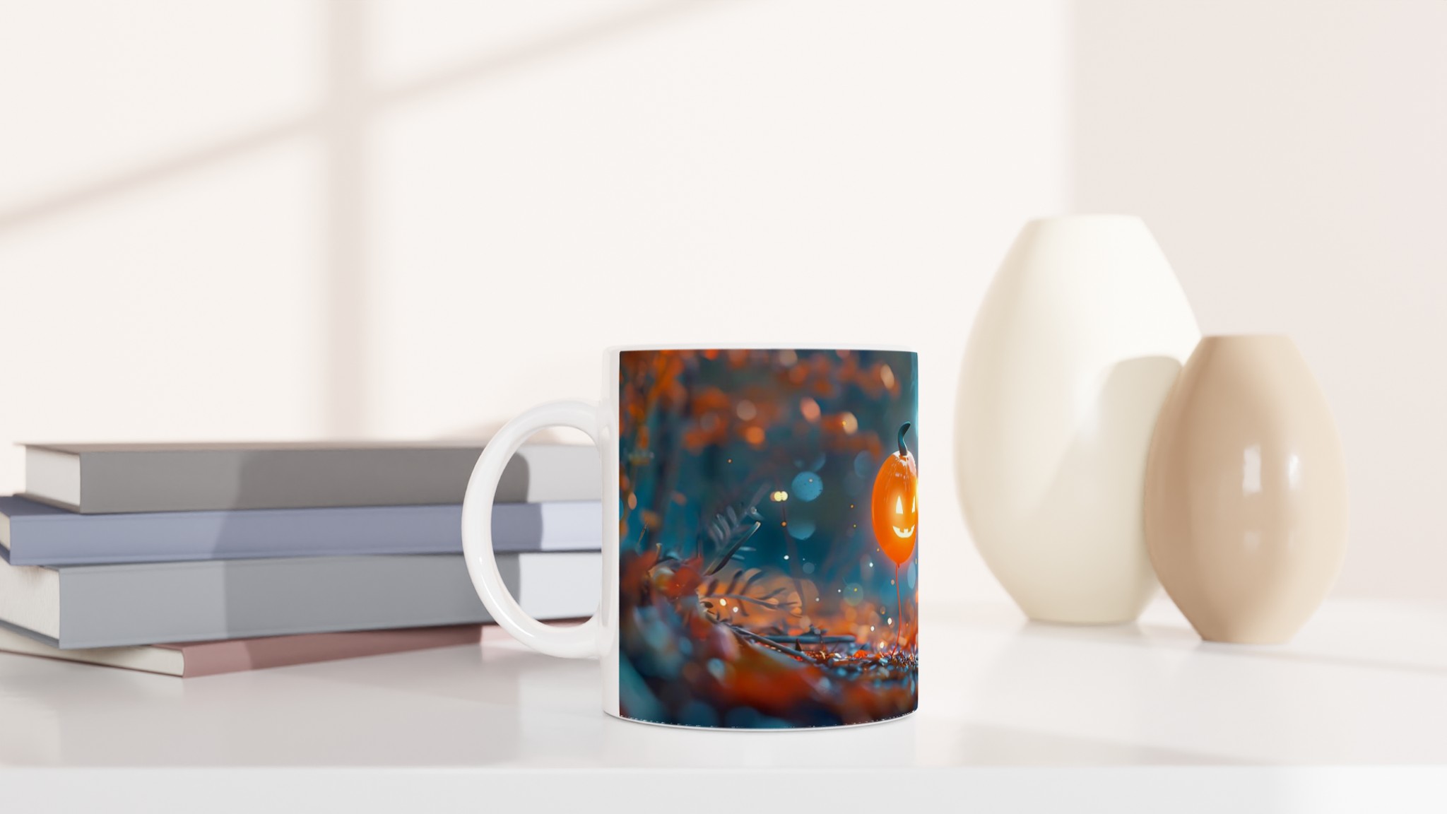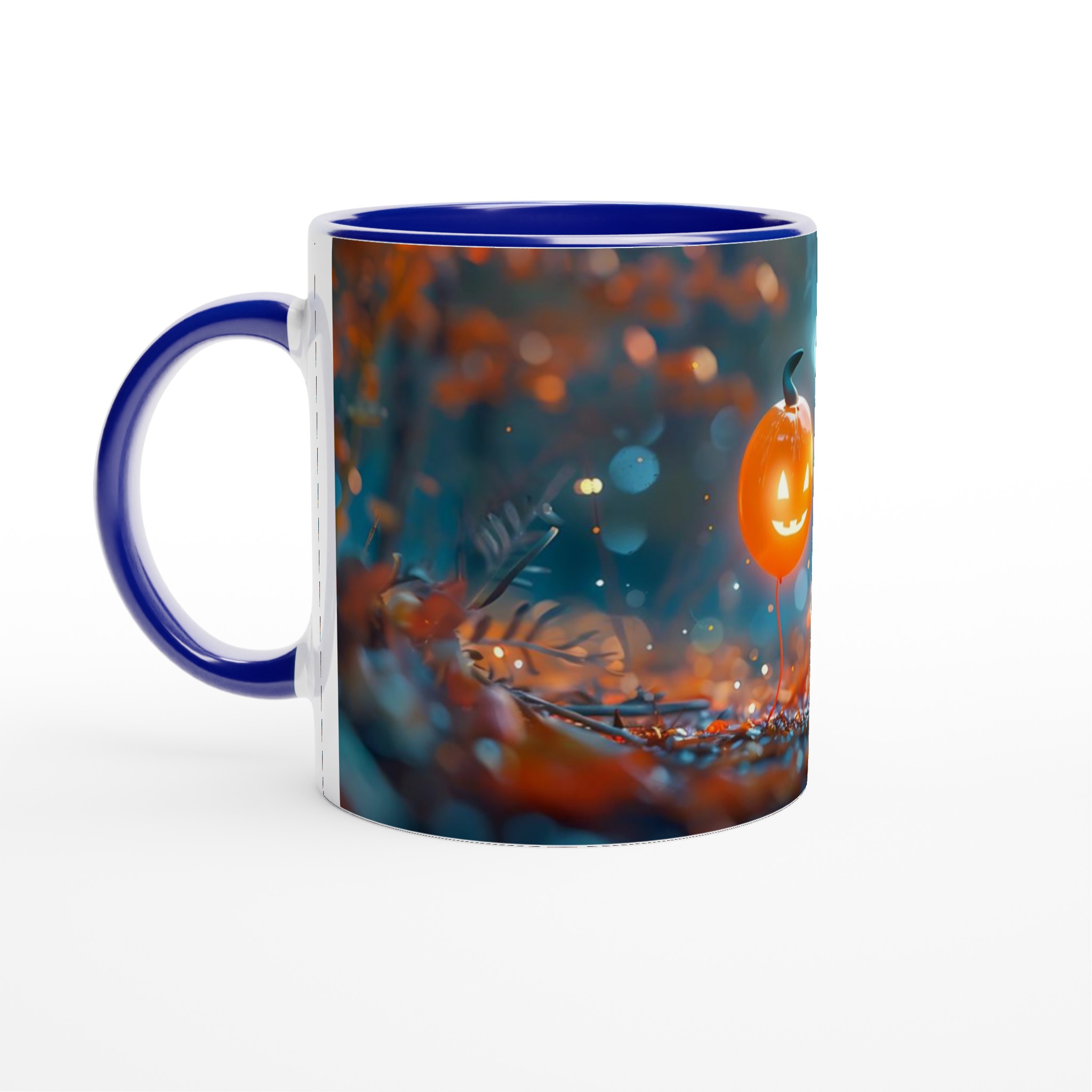 Enchanted Autumn Ghost & Pumpkin Halloween Mug – Spooky Cute Ceramic 11oz Coffee Cup in Your Choice of 7 Colors