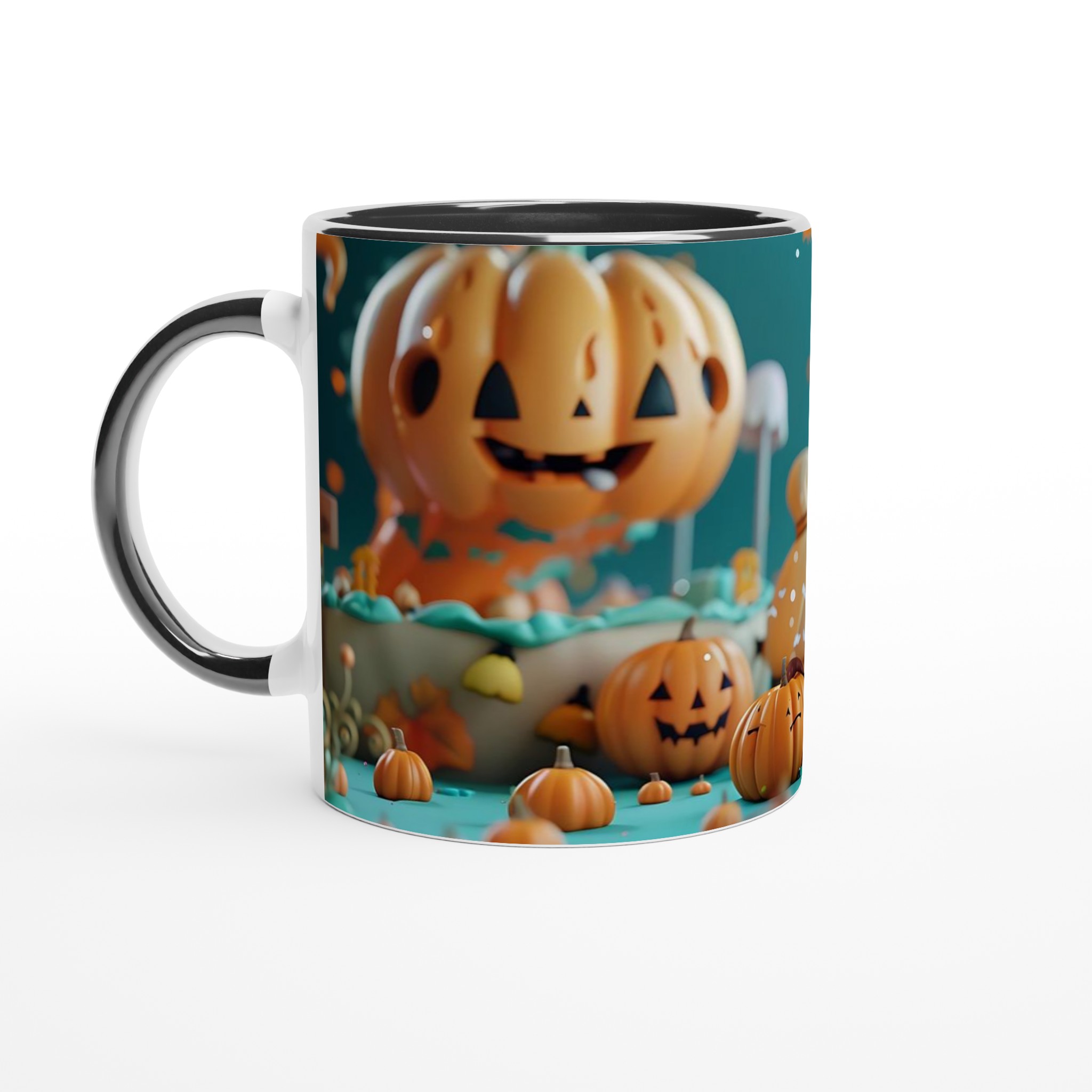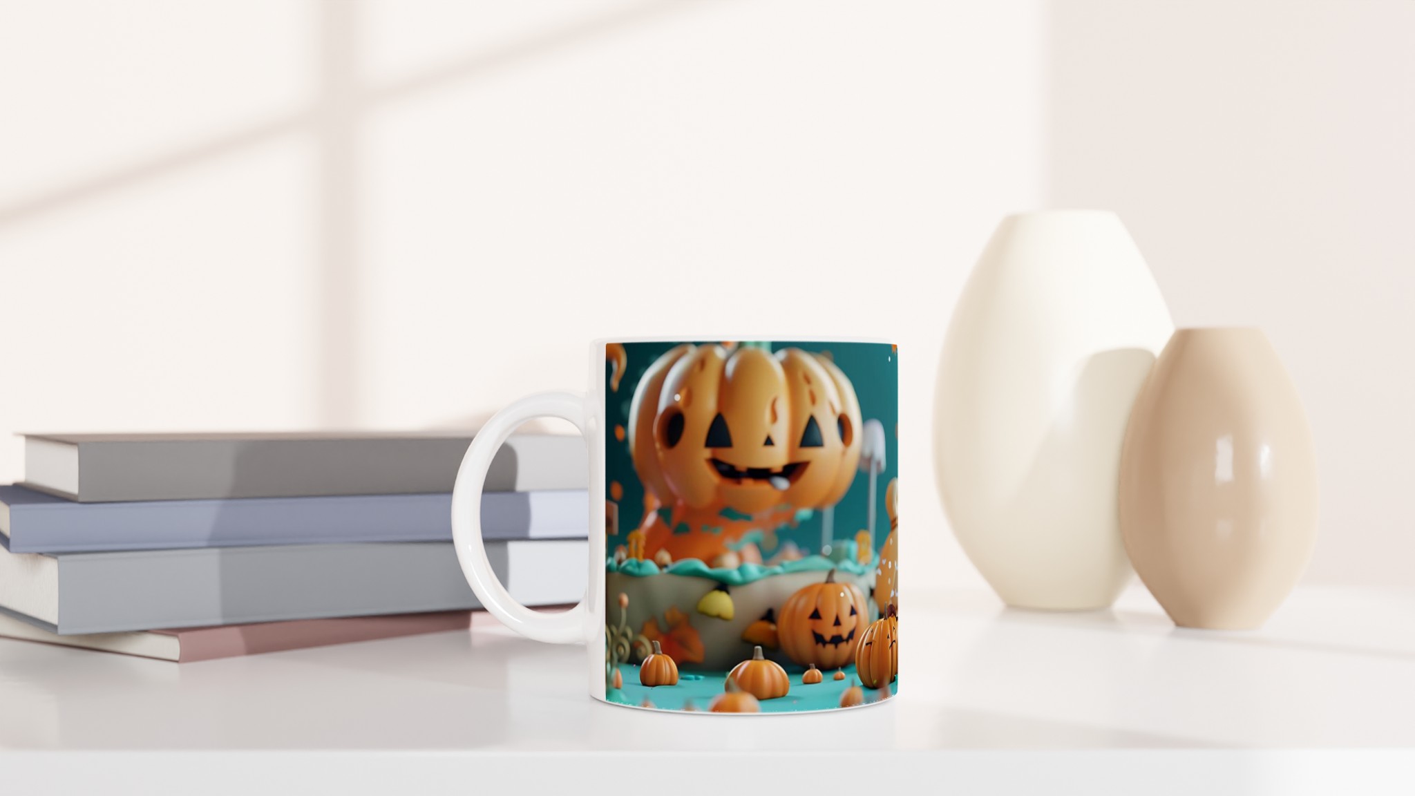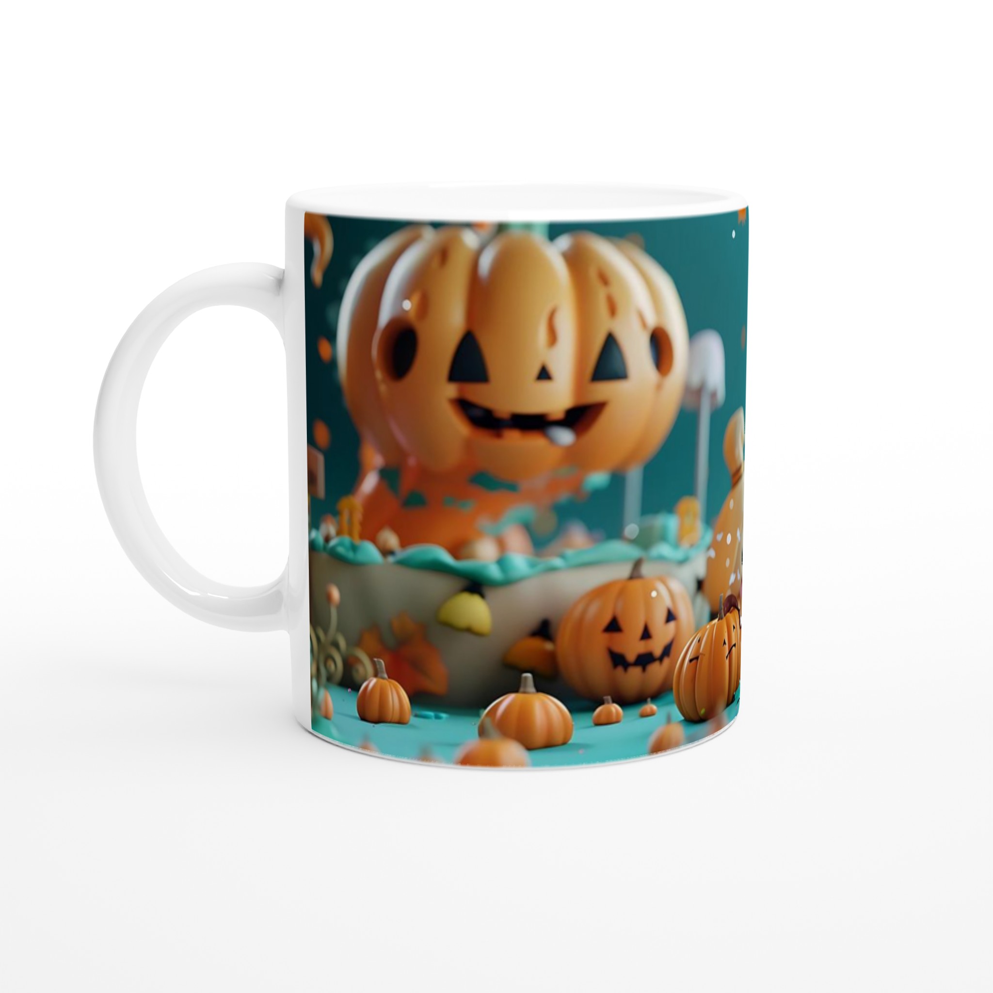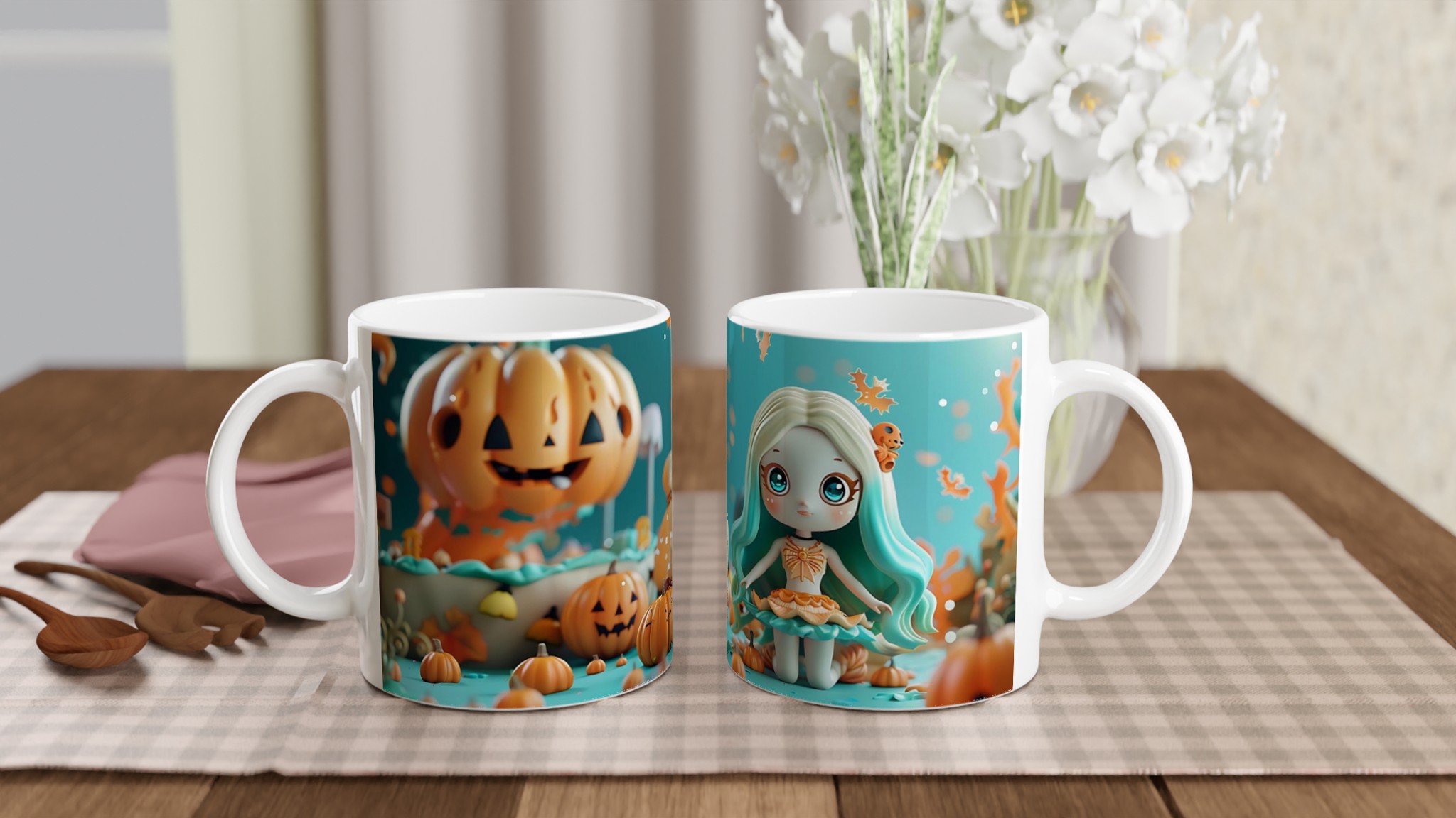 Enchanted Teal & Pumpkin Patch 11oz Ceramic Mug – Whimsical Halloween Art for Your Favorite Brew