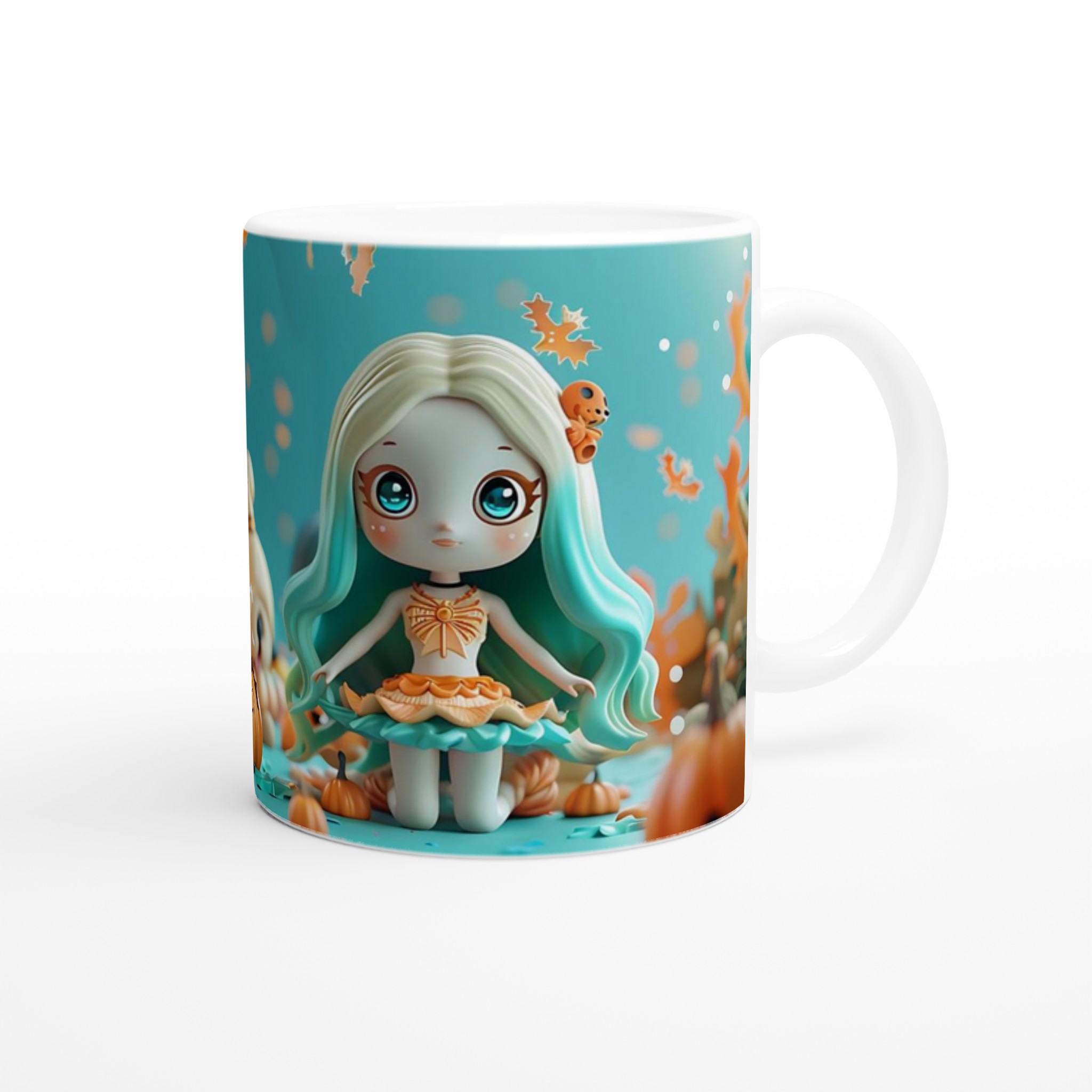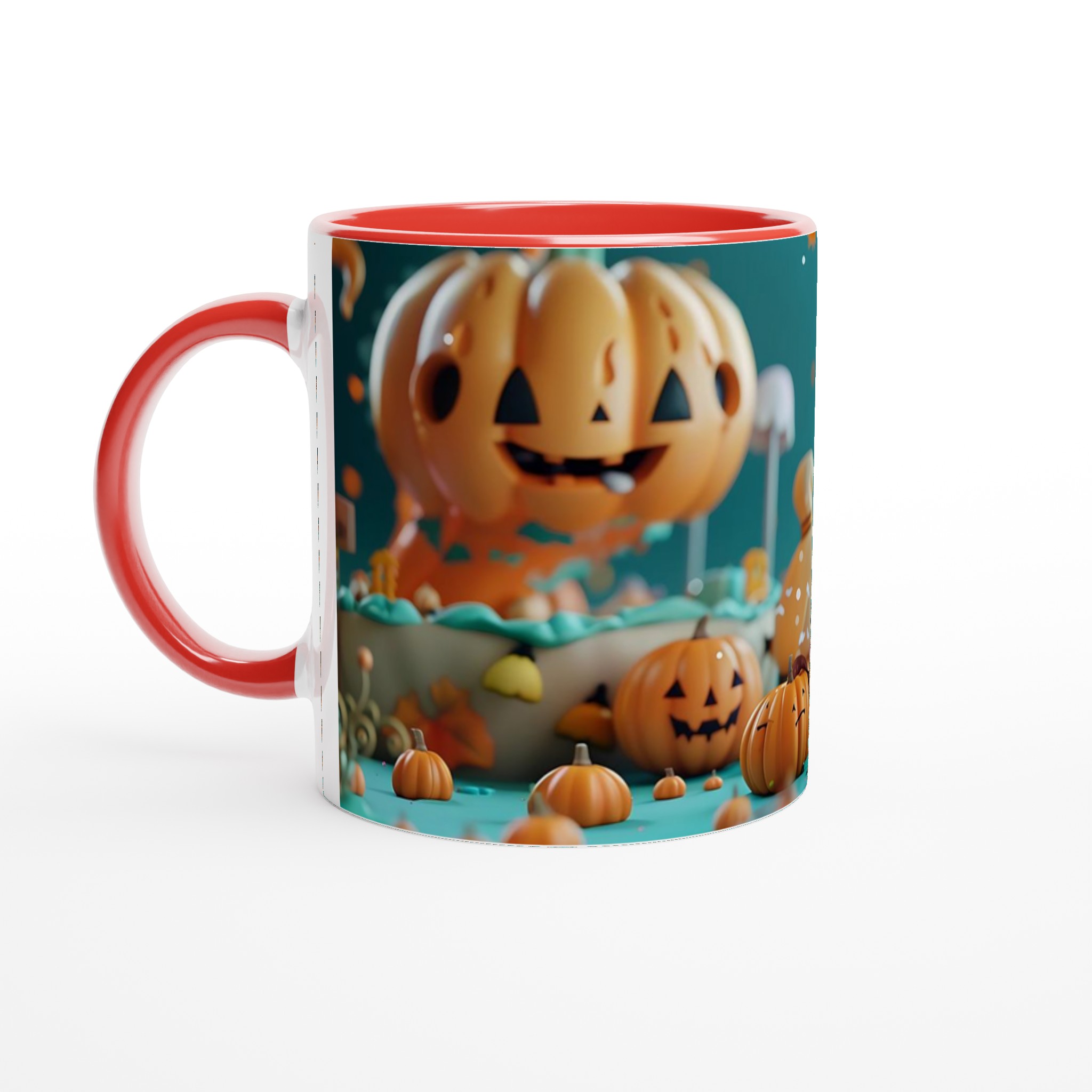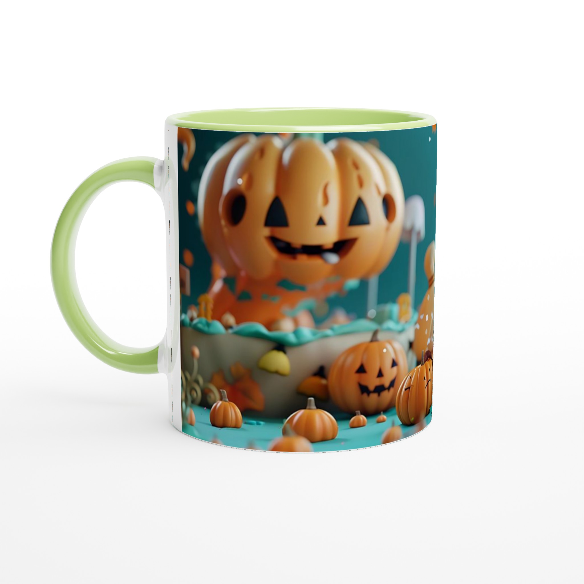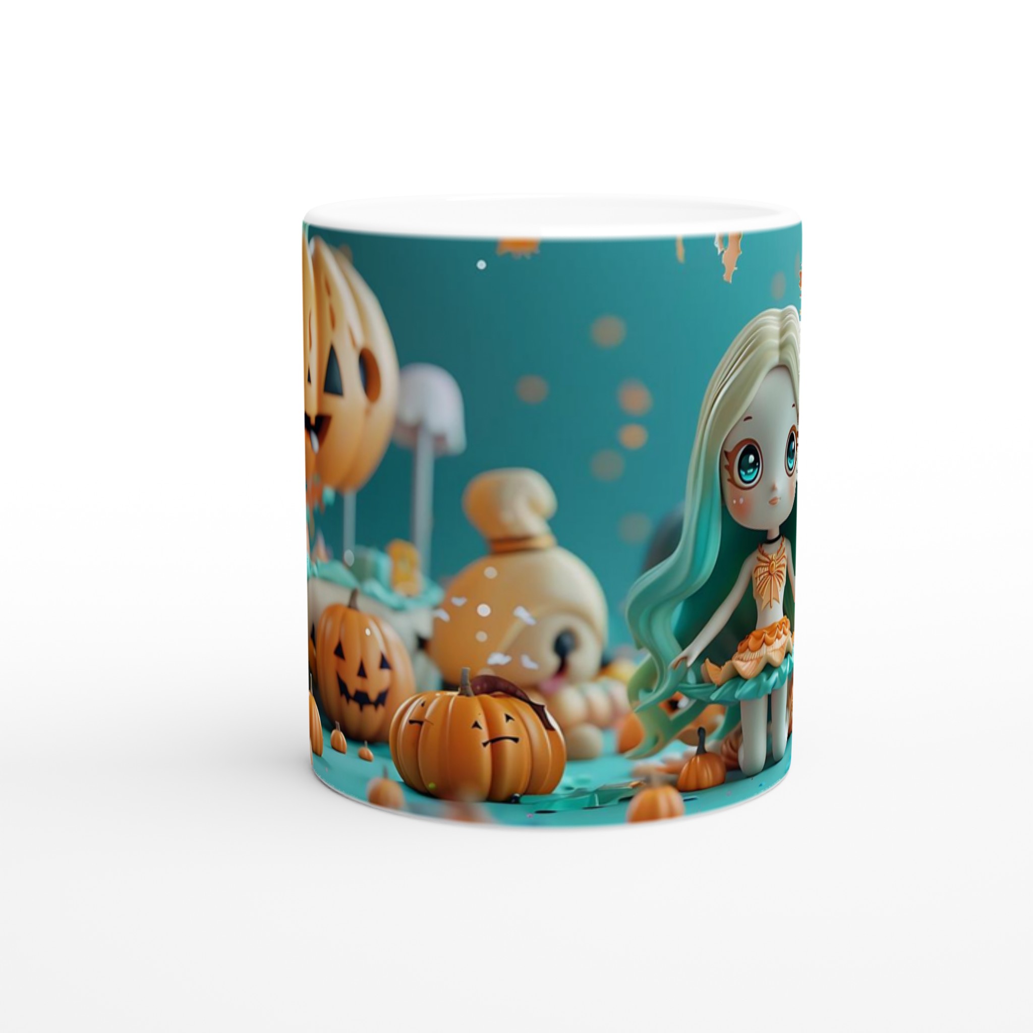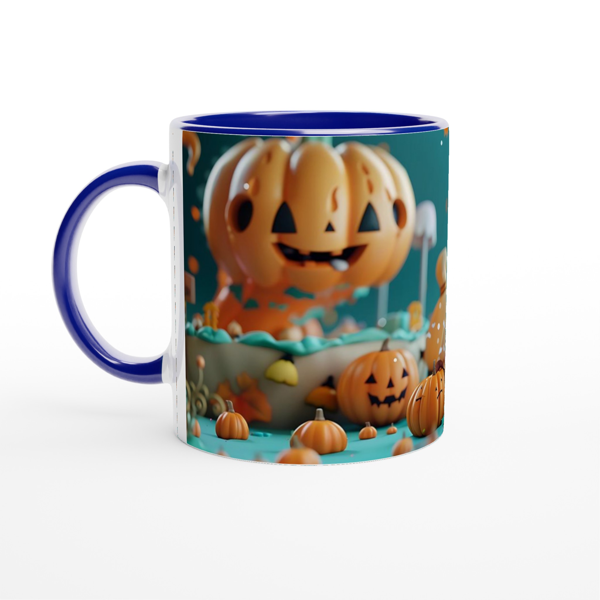 Enchanted Teal & Pumpkin Patch 11oz Ceramic Mug – Whimsical Halloween Art for Your Favorite Brew