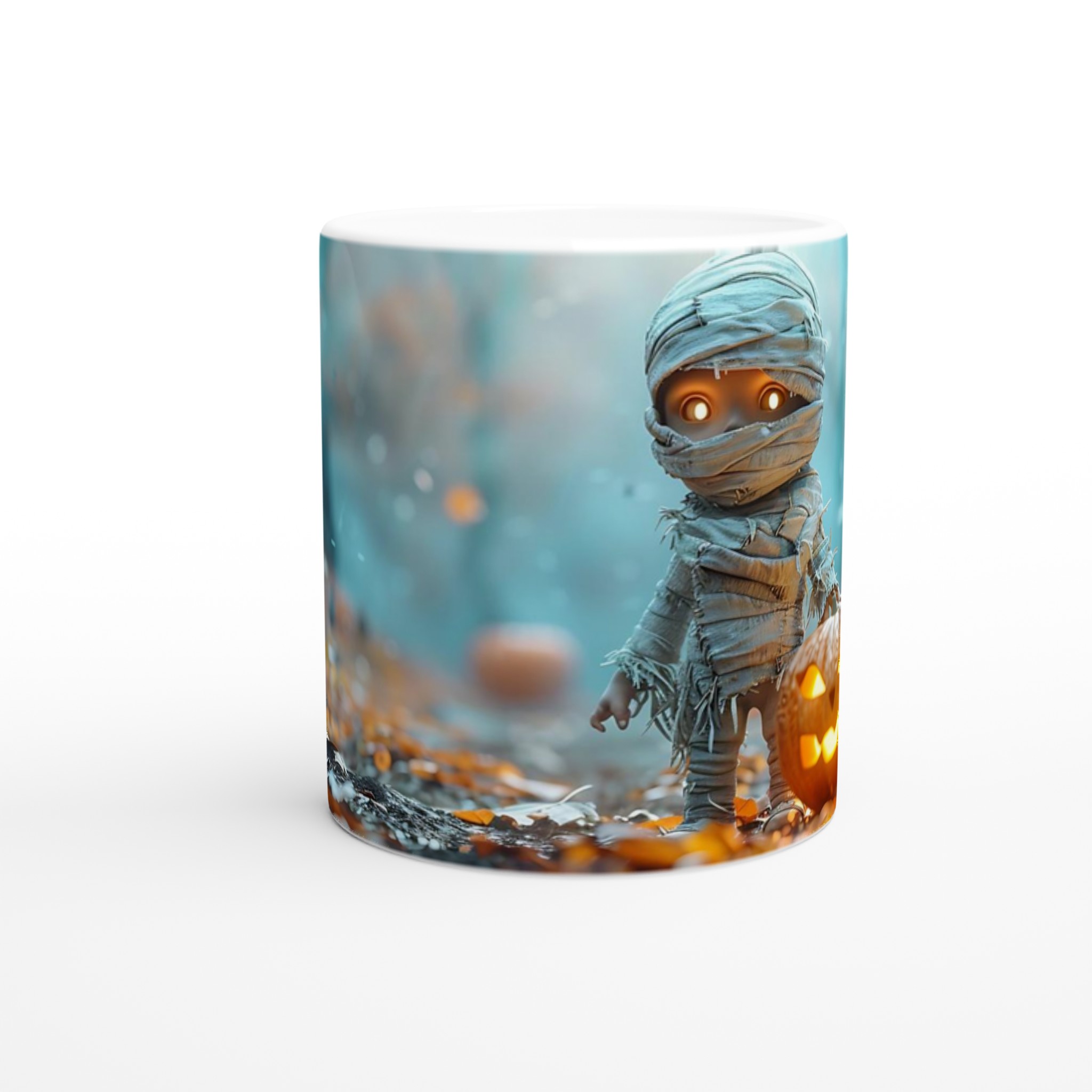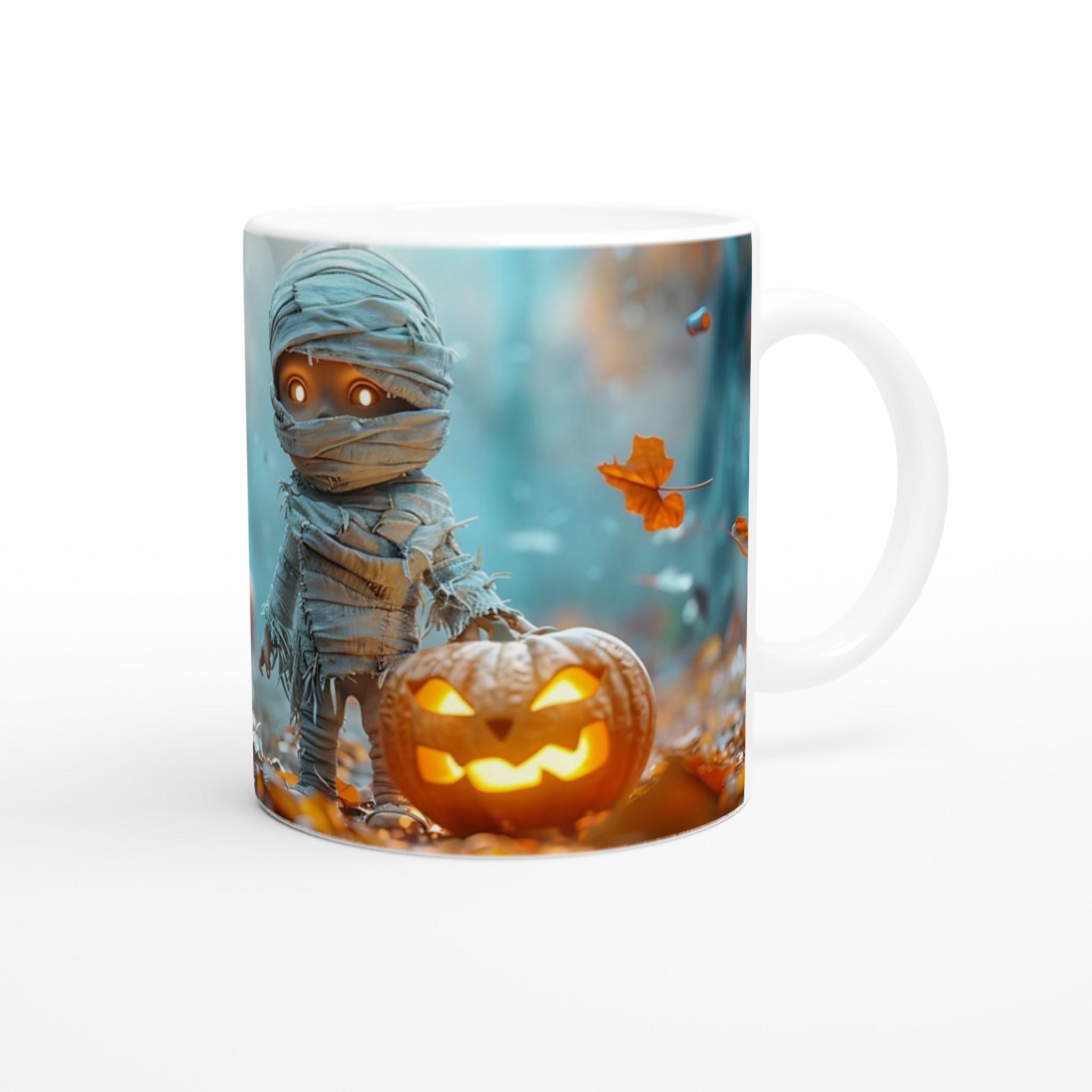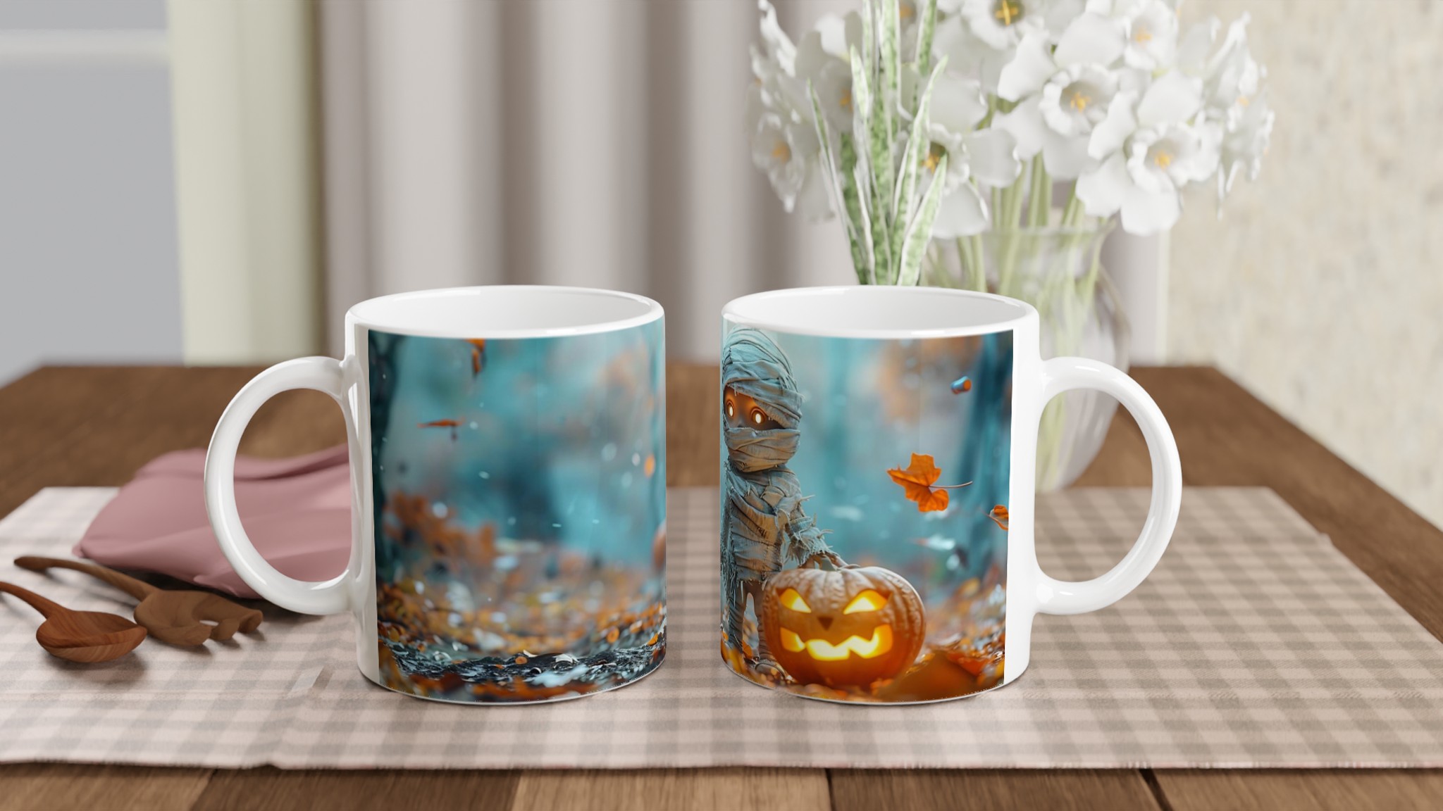 Spooky Mummy & Jack-O’-Lantern 11oz Ceramic Mug – Perfect for Halloween Fun in Your Choice of Seven Hues