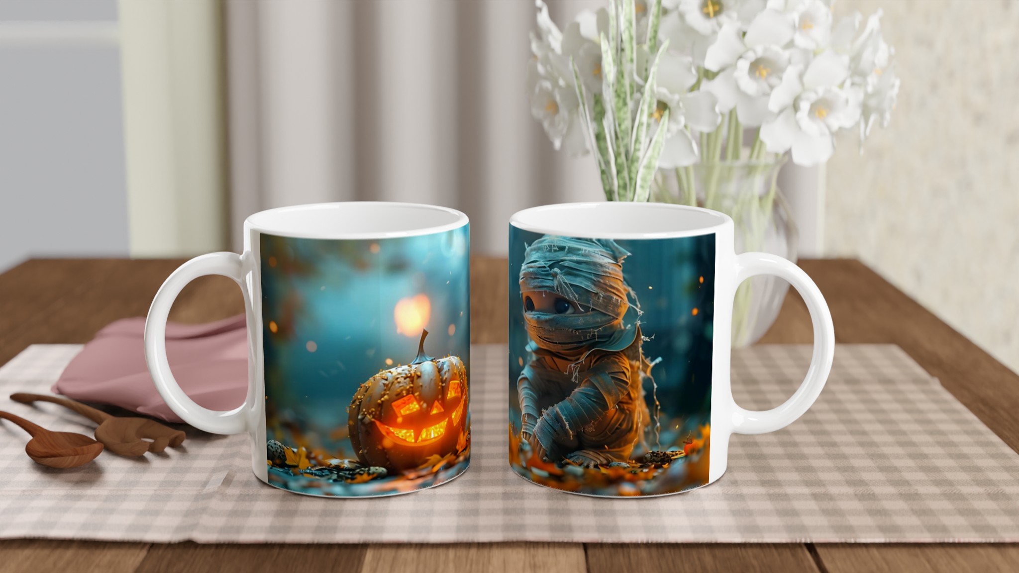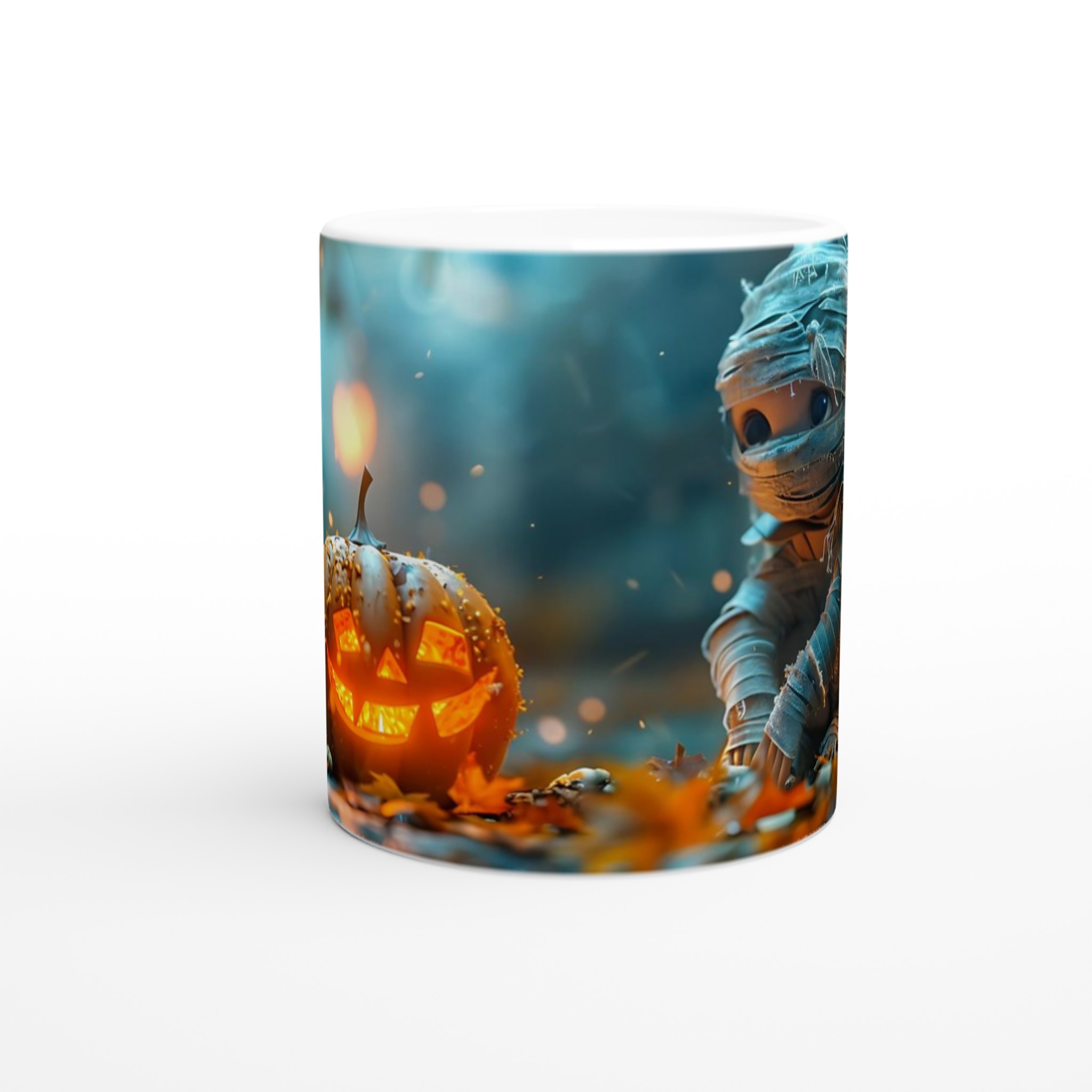Cute Spooky Mummy & Pumpkin Halloween Mug – Your Choice of 7 Vibrant Ceramic Colors!