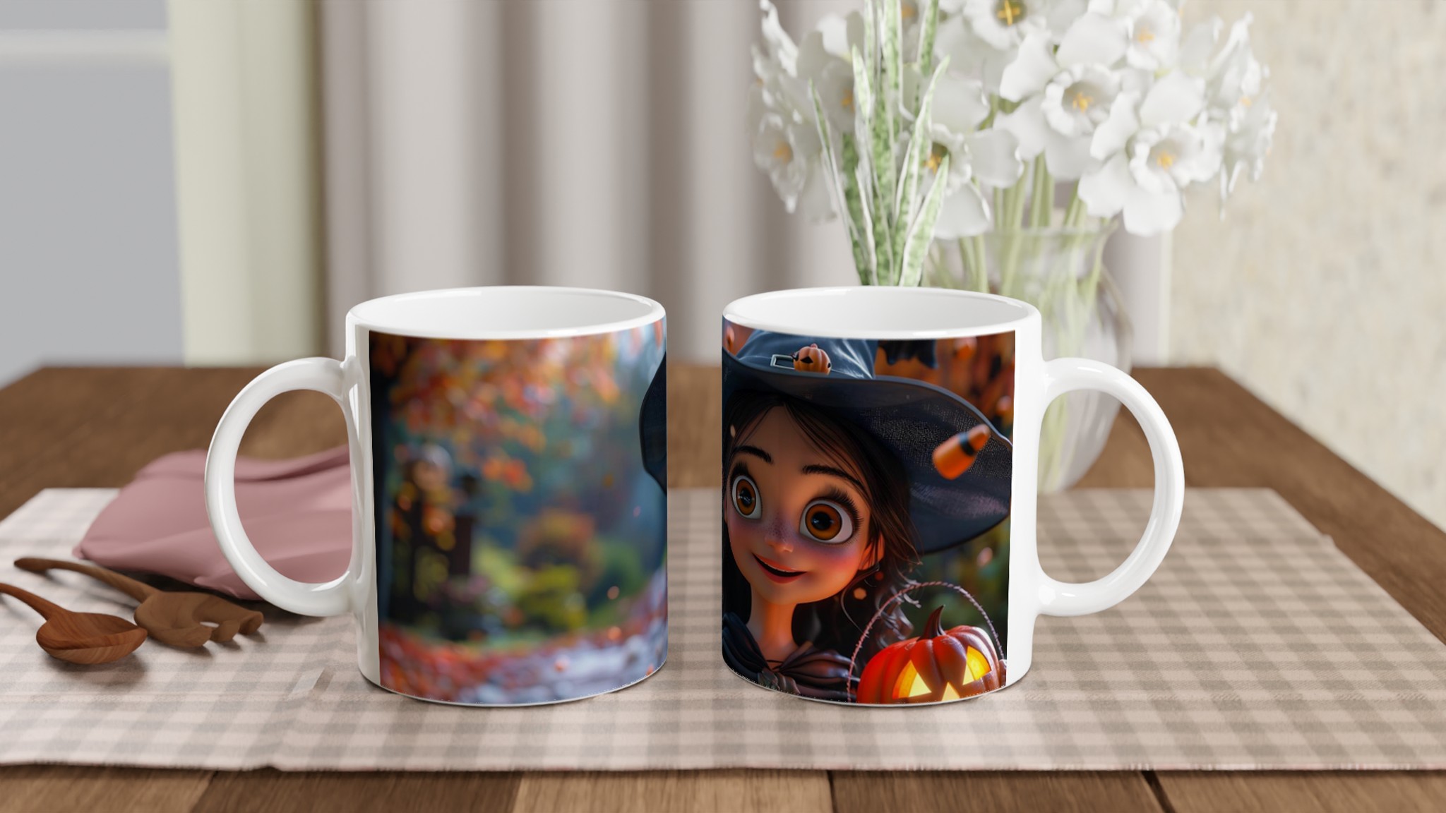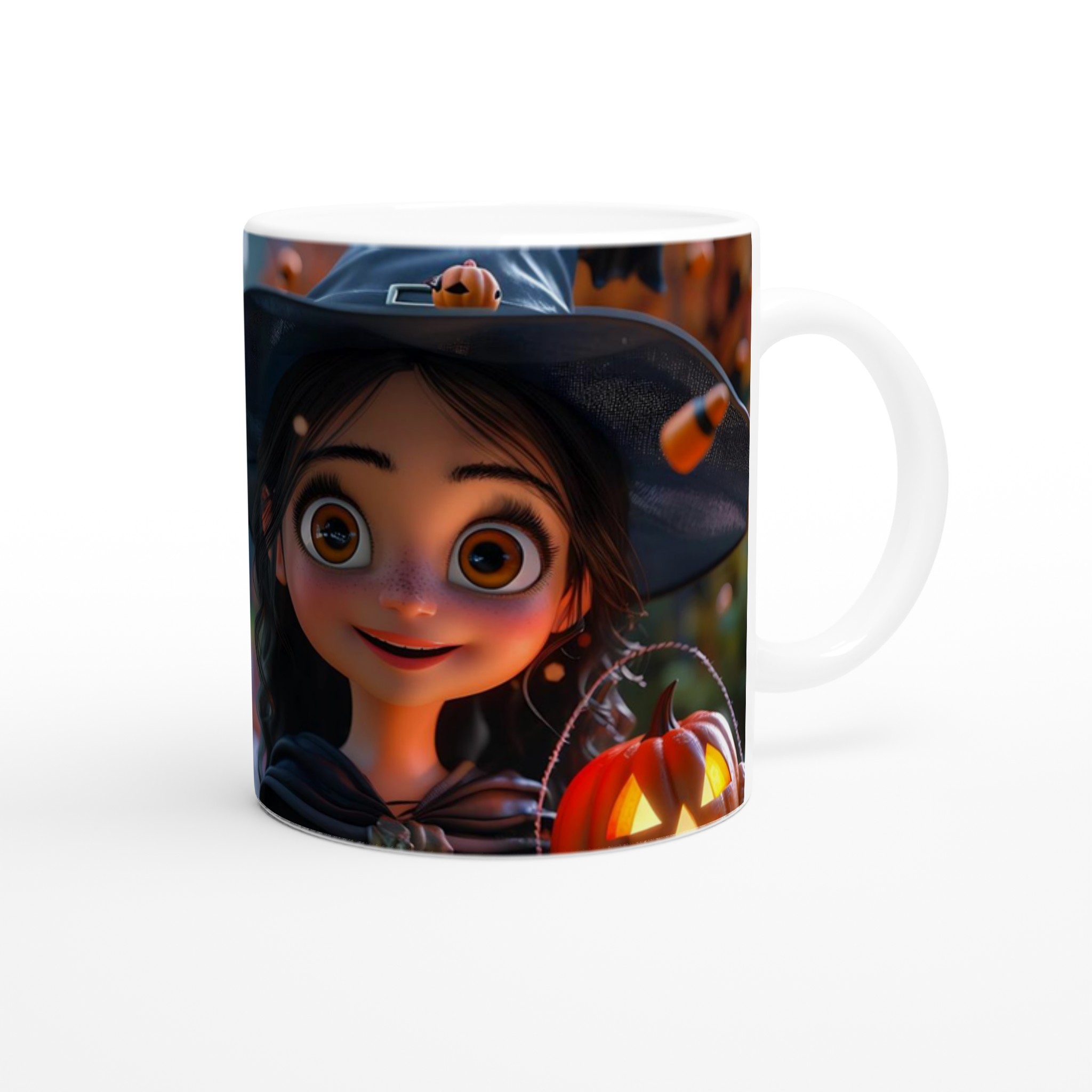 Enchanted Little Witch Ceramic Mug – Spooky Cute 11oz Coffee Cup in Your Choice of Seven Vibrant Hues