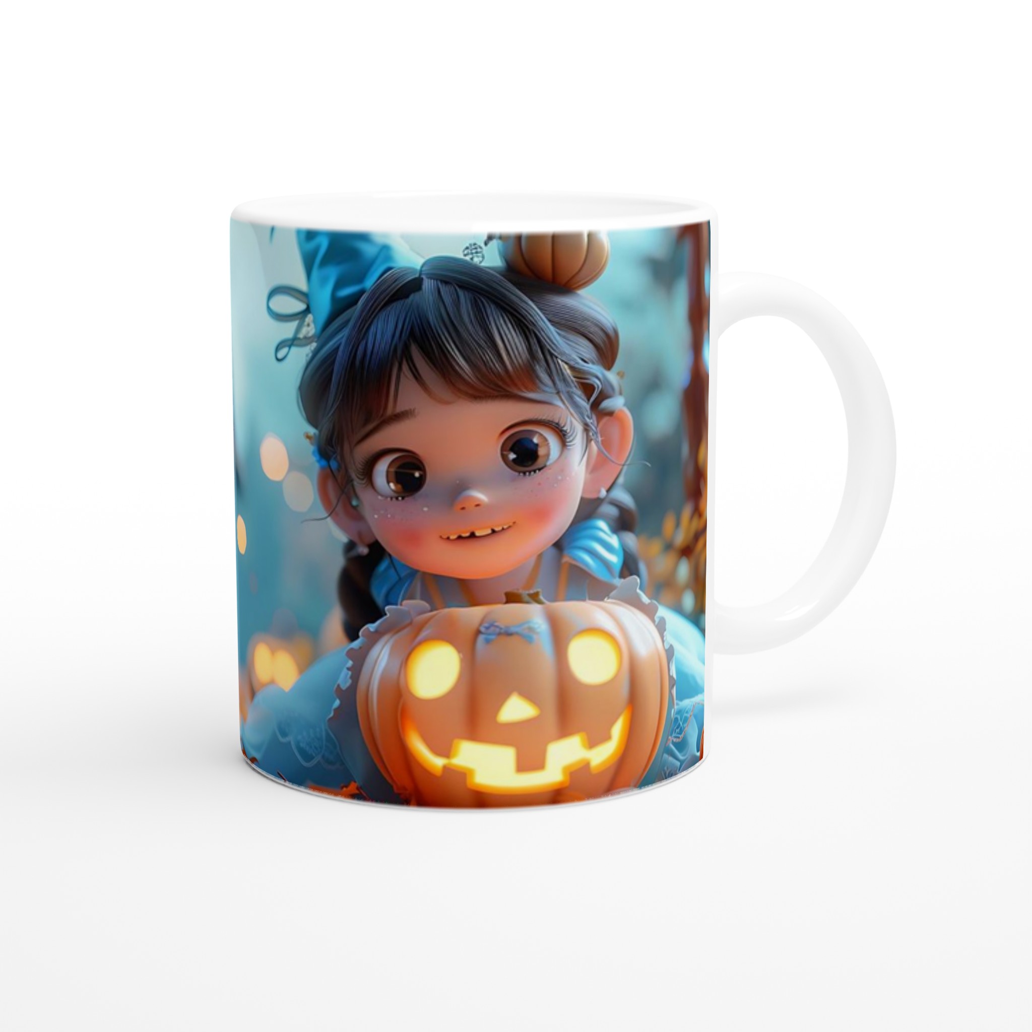 Enchanting Witch’s Pumpkin Brew Mug – White 11oz Ceramic Mug in your choice of seven vibrant hues
