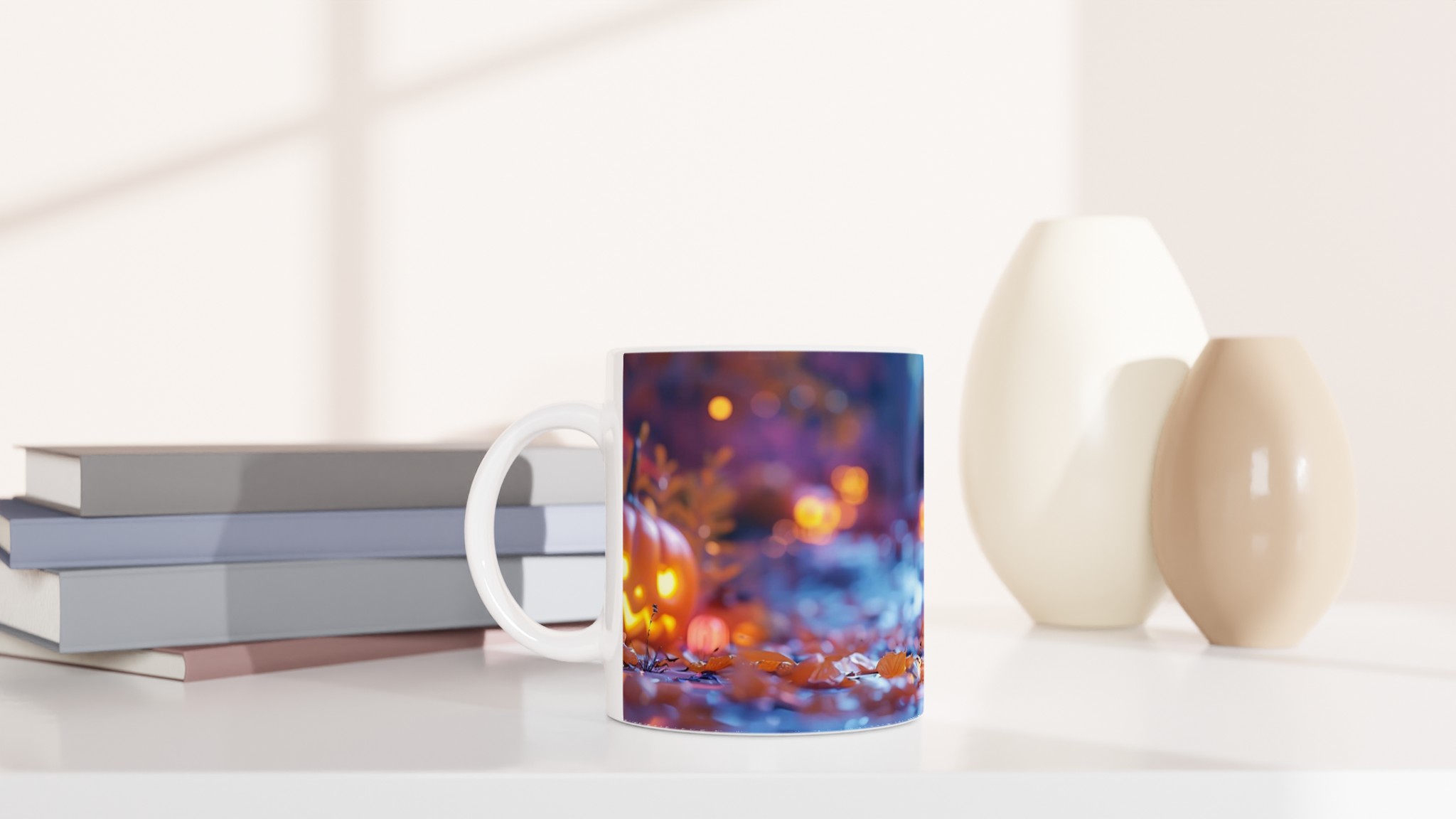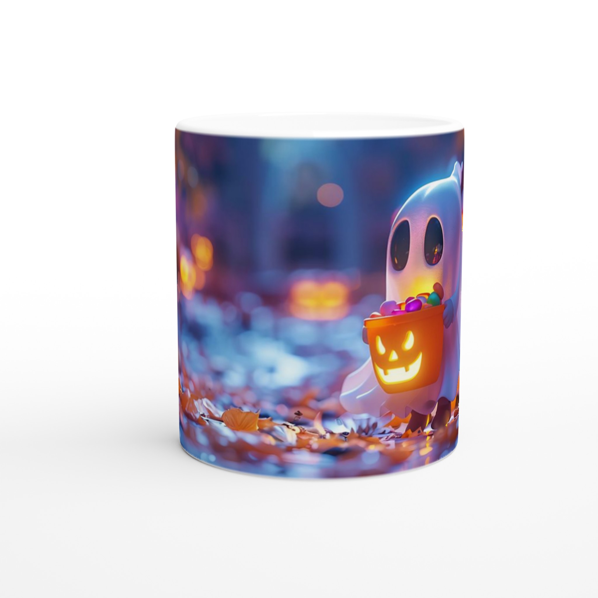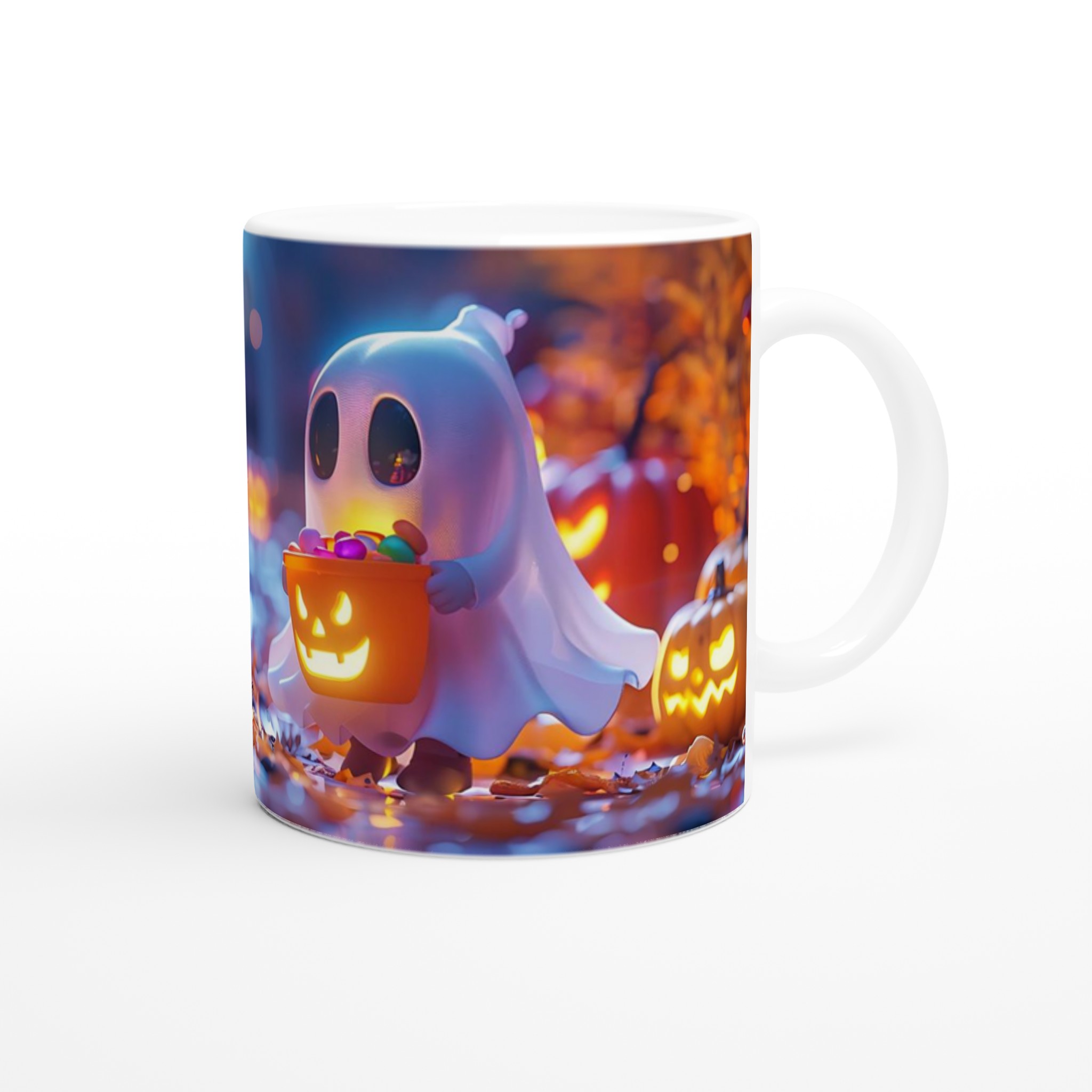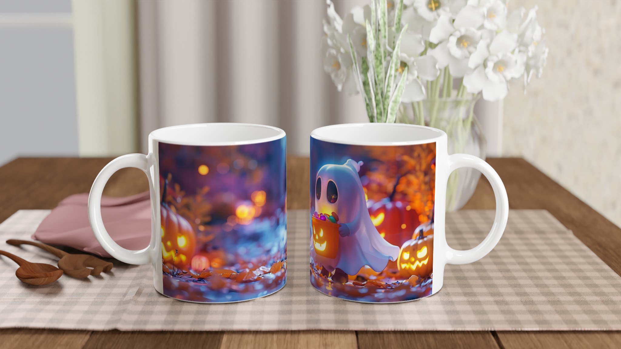 Spooky Cute Ghost & Pumpkin Halloween 11oz Ceramic Mug – Vibrant Colors