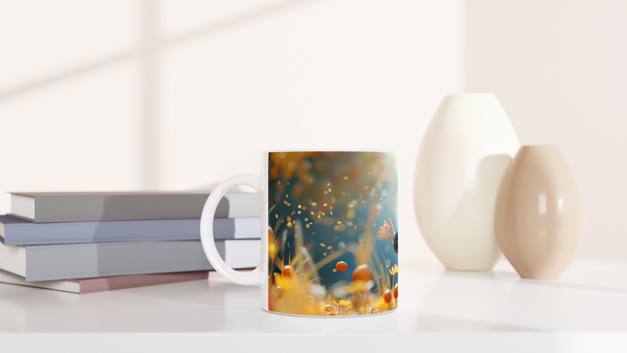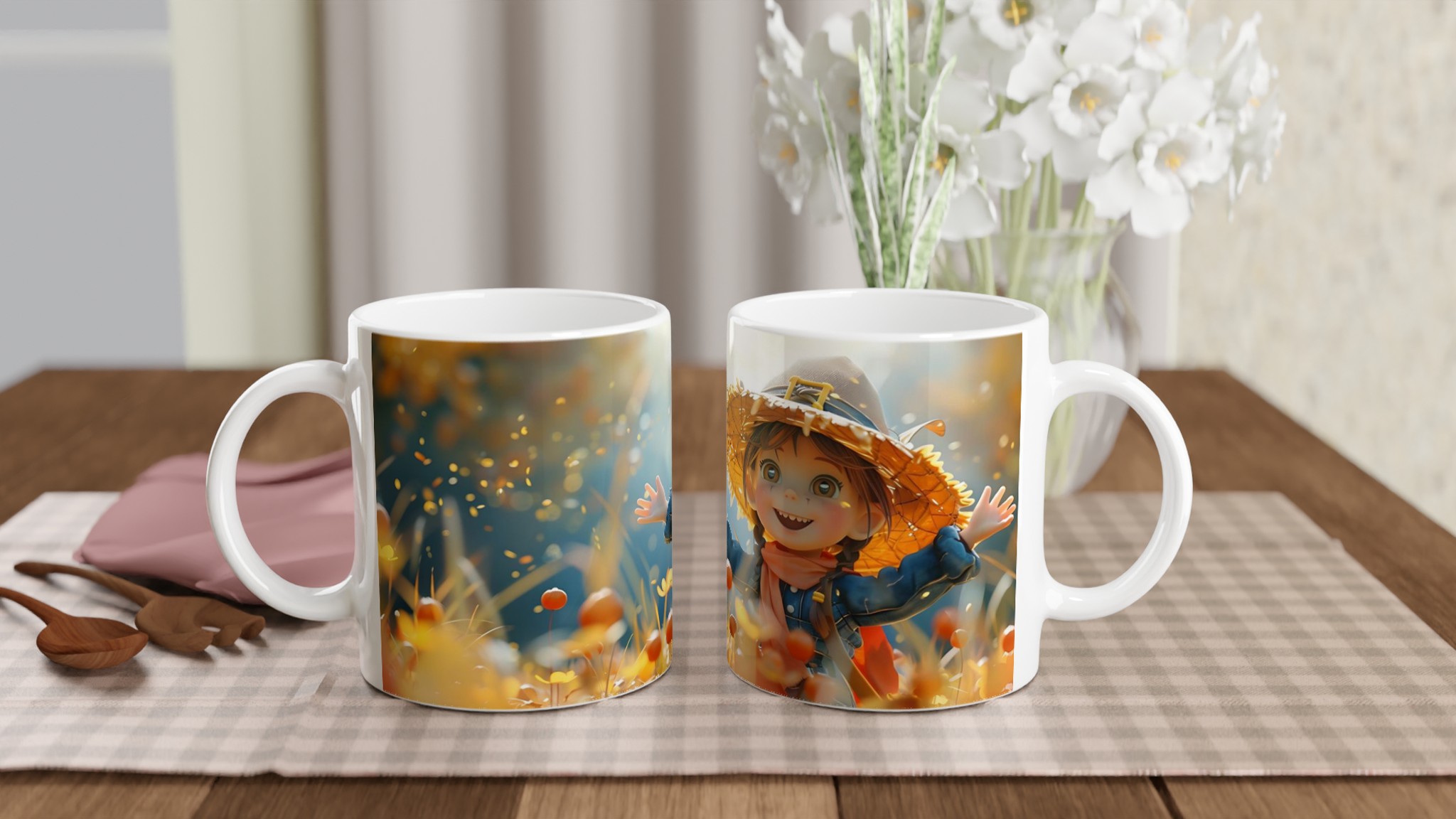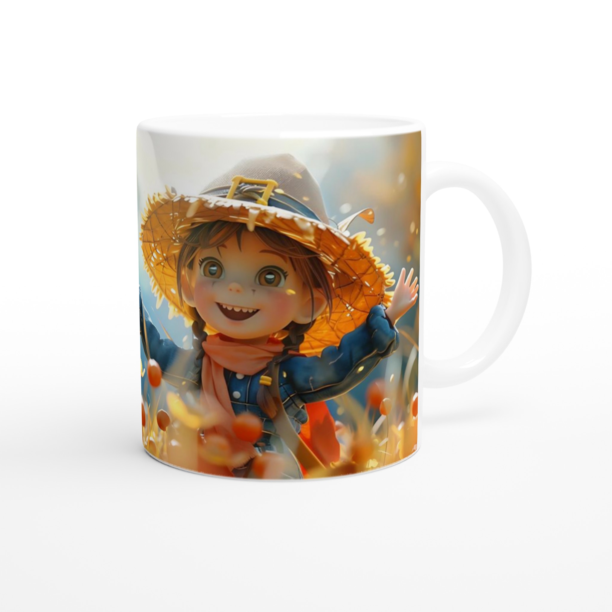 Autumn Bliss Whimsical Girl 11oz Ceramic Mug – Choose Your Hue!