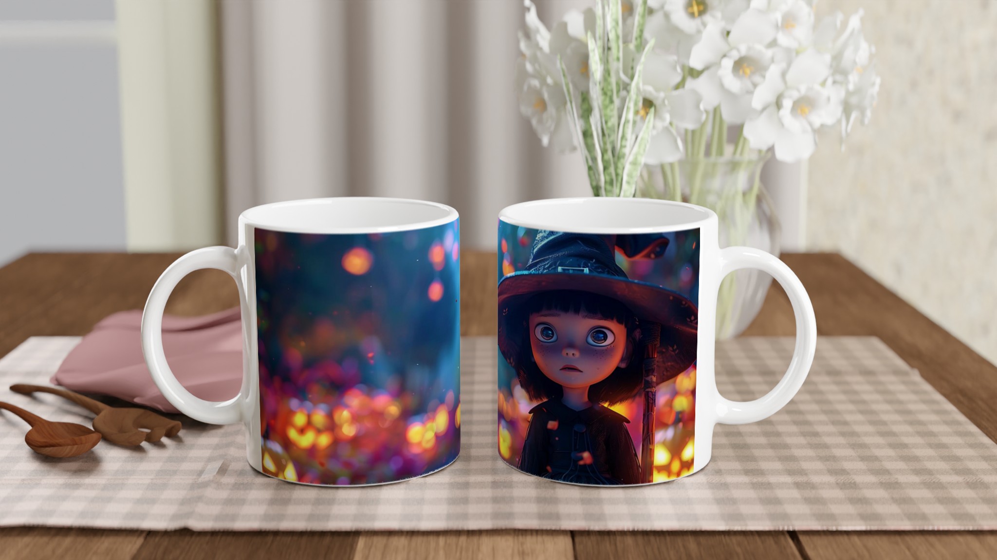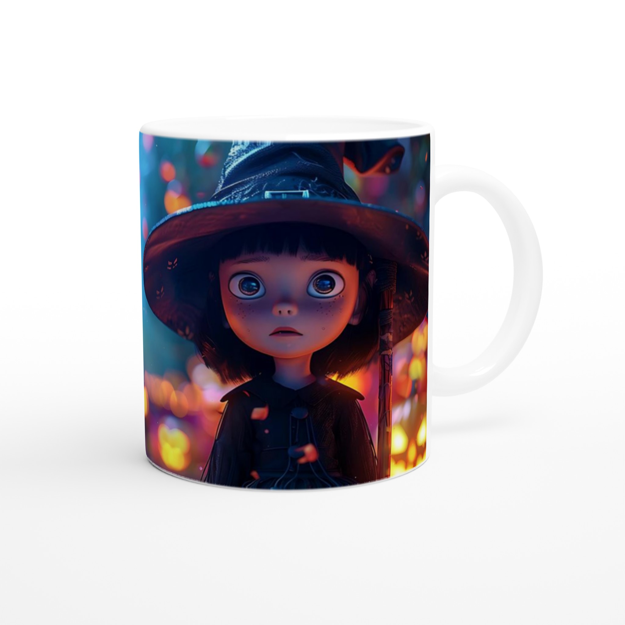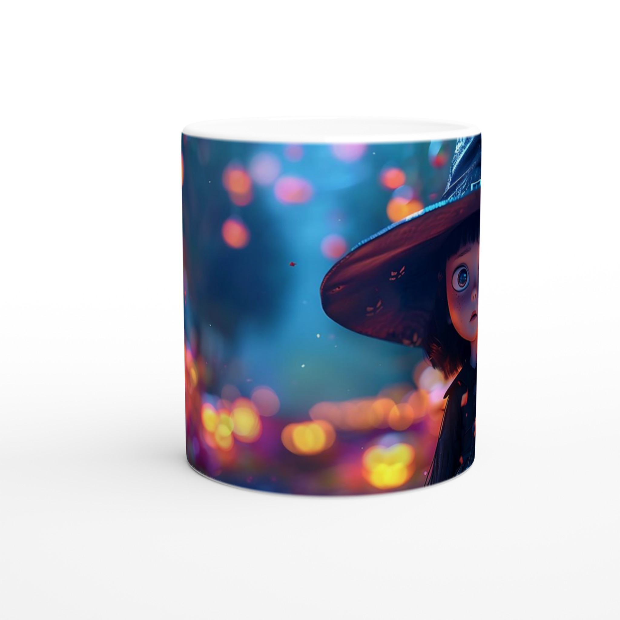 Enchanted Halloween Night Ceramic Mug – Whimsical Witchy Art for Spooky Sips, in your choice of seven vibrant hues