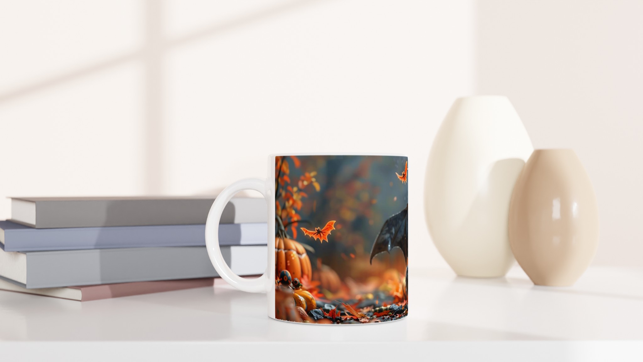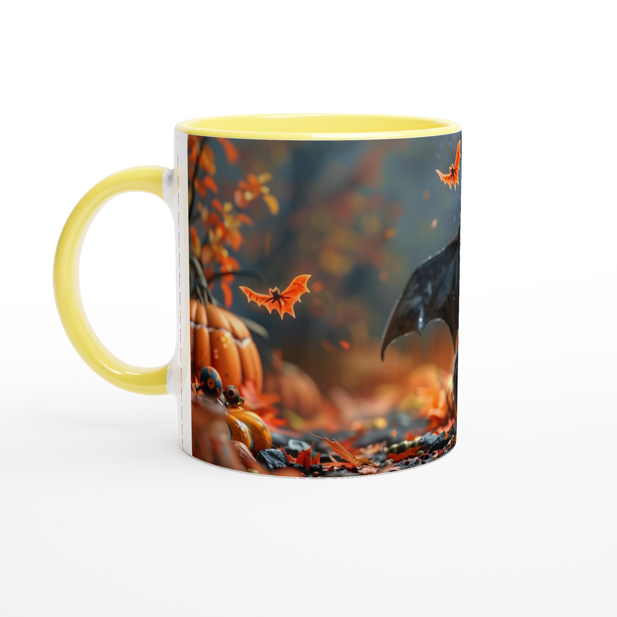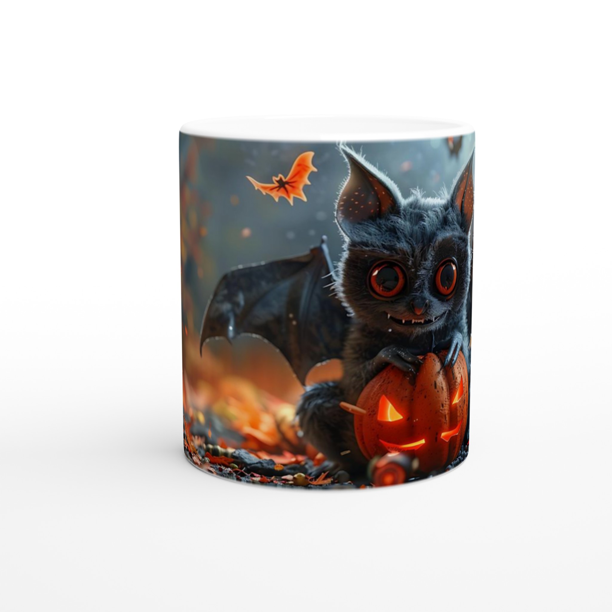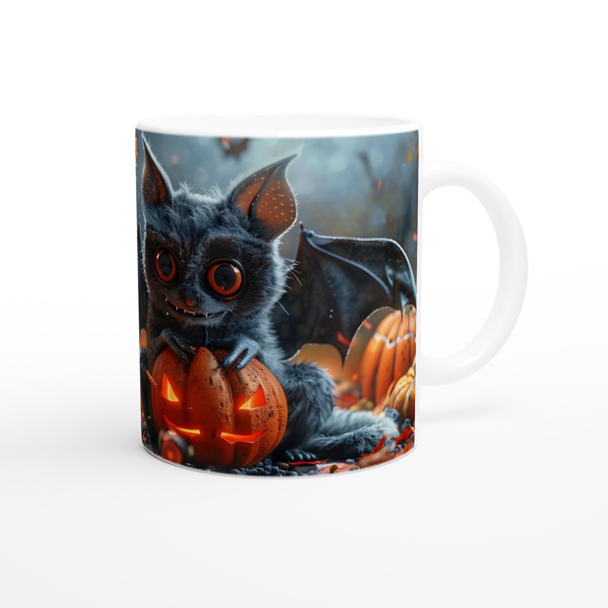 Spooky Cute Halloween Bat & Jack-o’-Lantern 11oz Ceramic Mug – Choose Your Color!