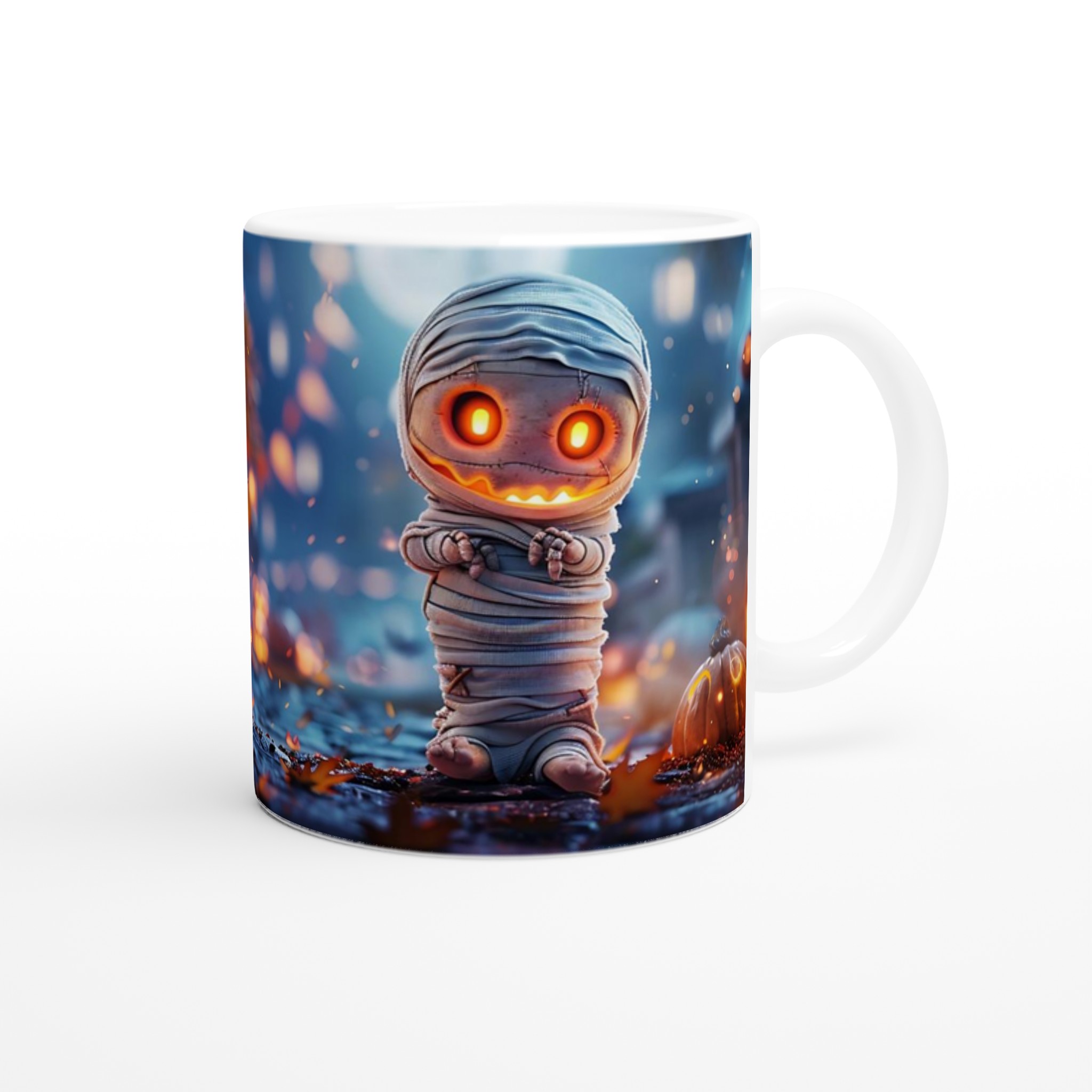 Spooky Cute Mummy Halloween Ceramic Mug – White 11oz for Ghoulishly Good Drinks