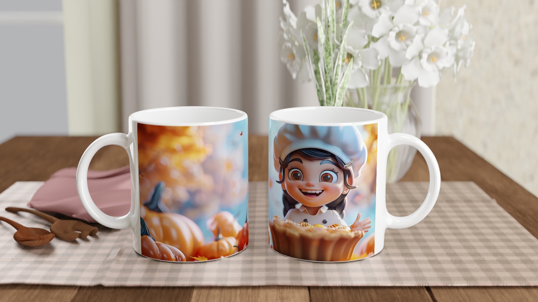 Pumpkin Pie Perfection! Adorable Chef 11oz Ceramic Mug in Your Choice of Seven Vibrant Colors