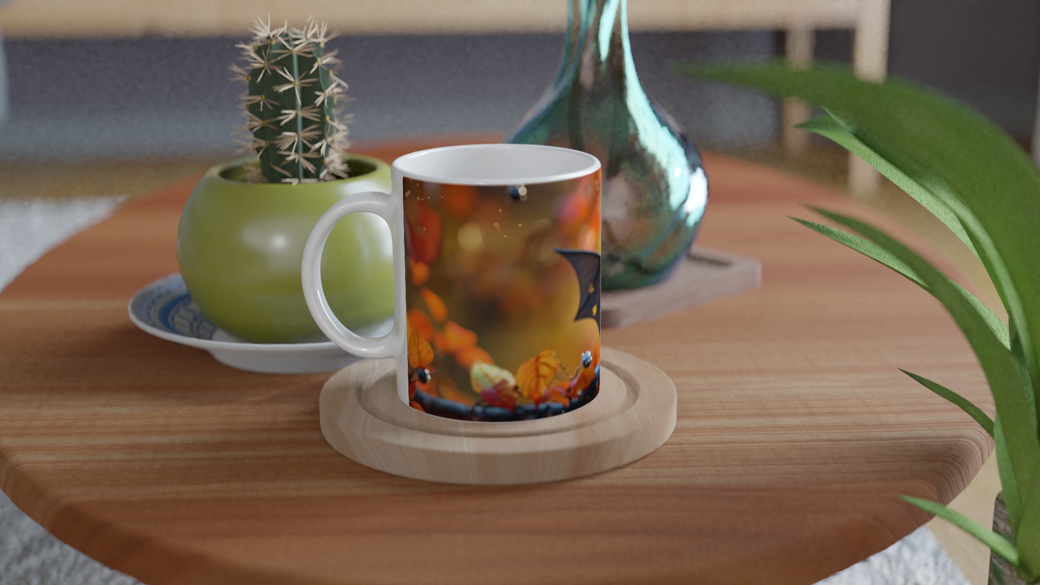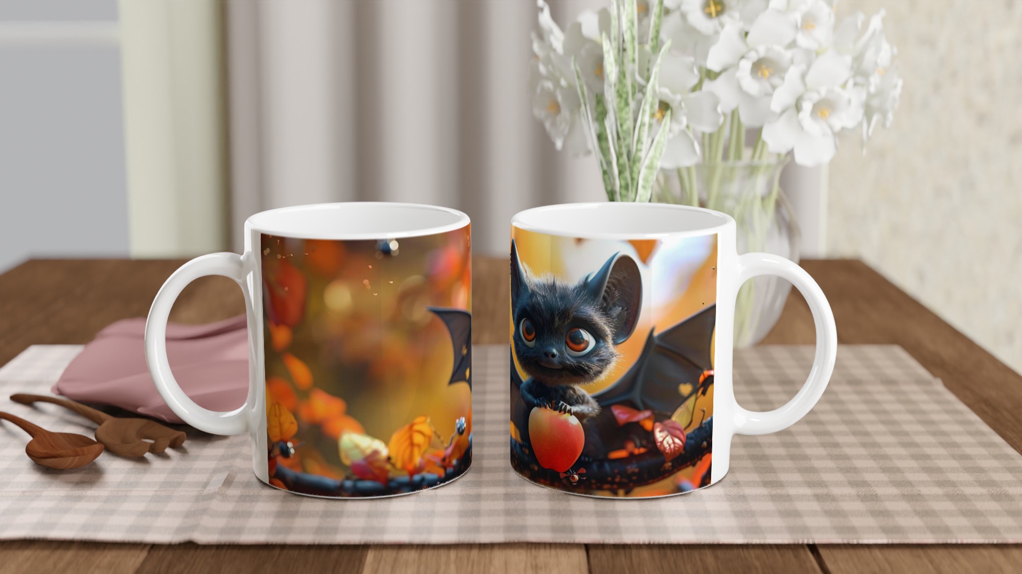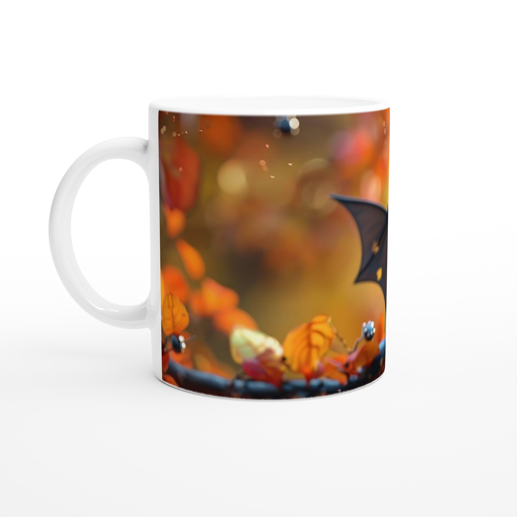 Autumn Bat Whimsy 11oz Ceramic Mug – A Charming Fall Companion in Your Choice of Seven Hues