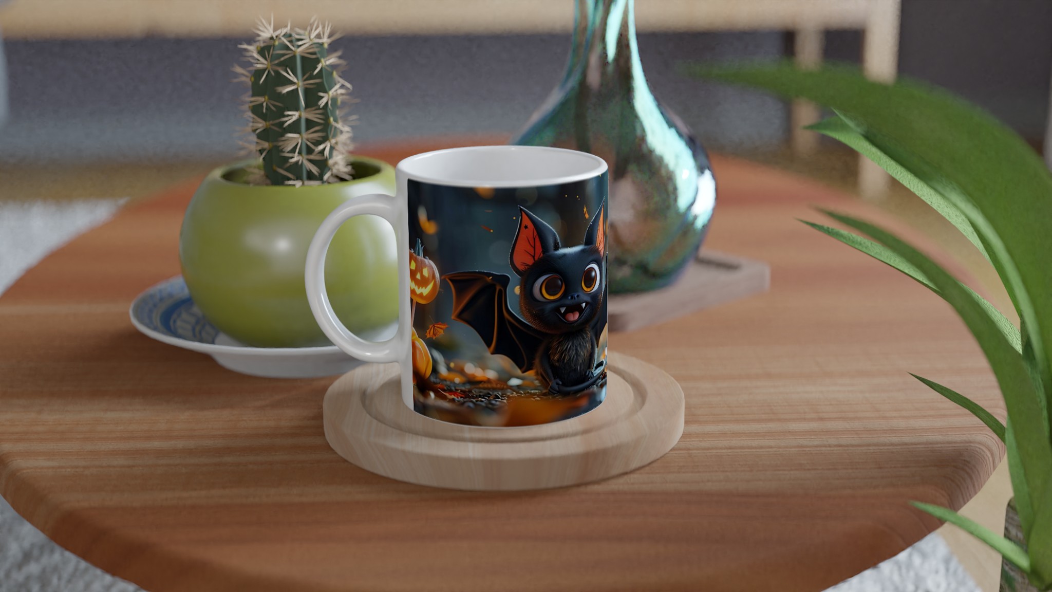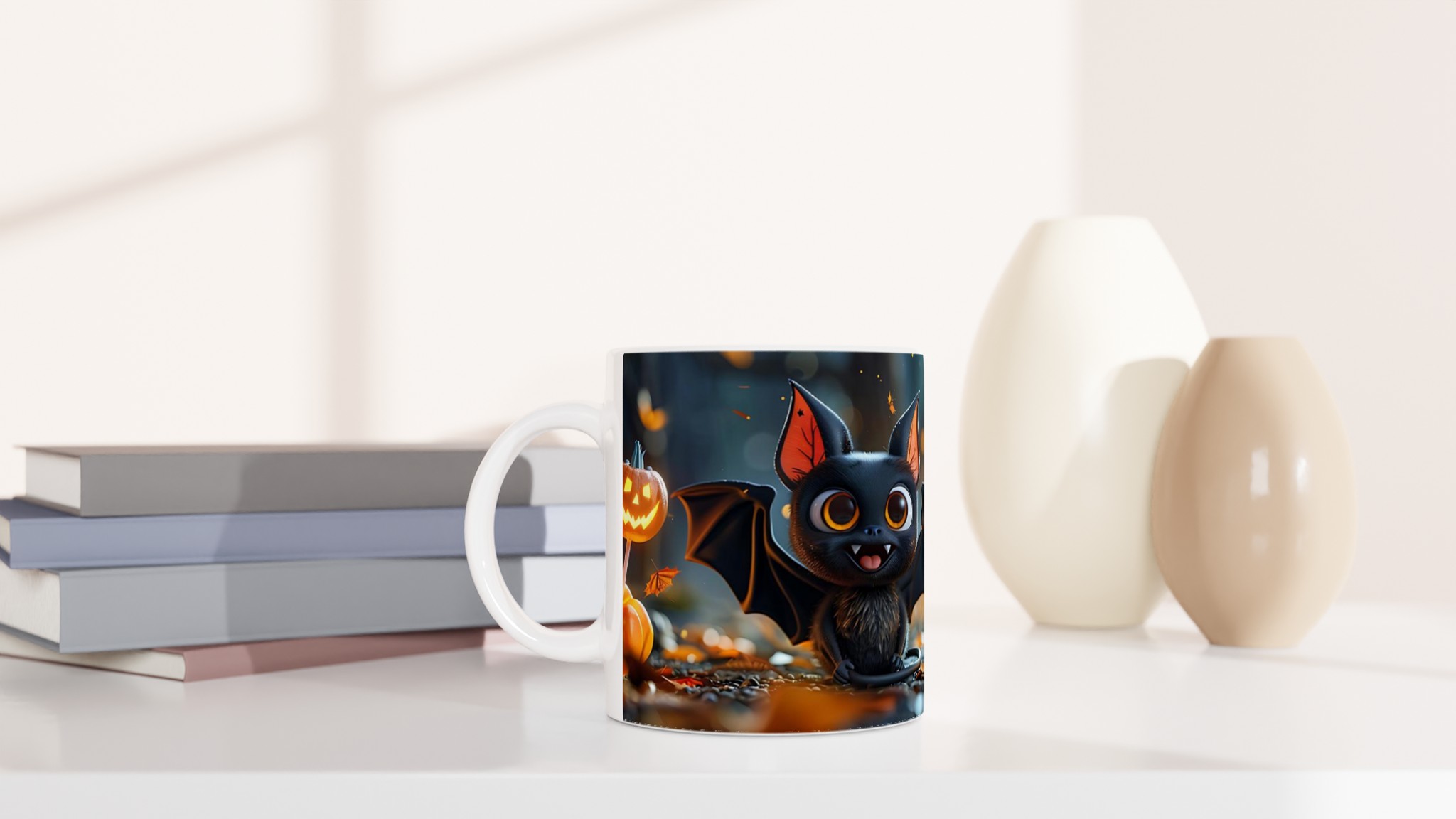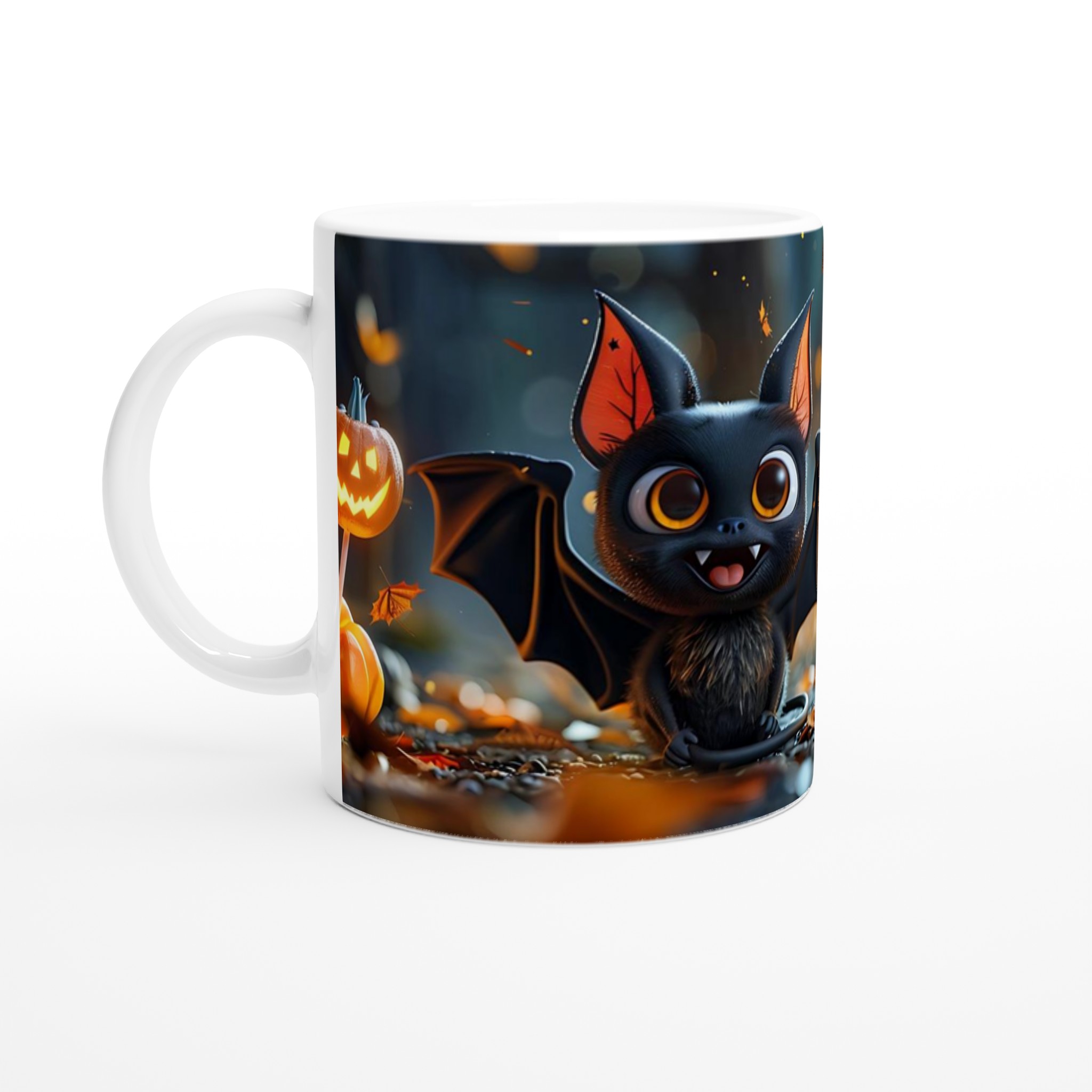 Spooky Cute Bat & Jack-O’-Lantern 11oz Ceramic Mug – Perfect for Halloween Fun!