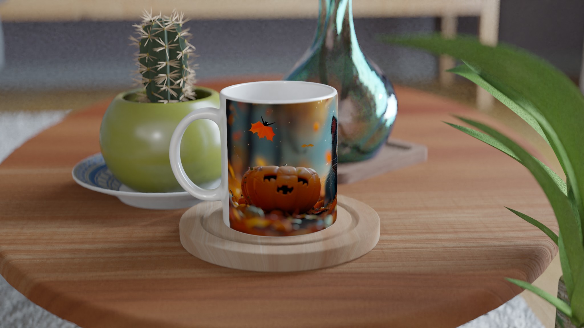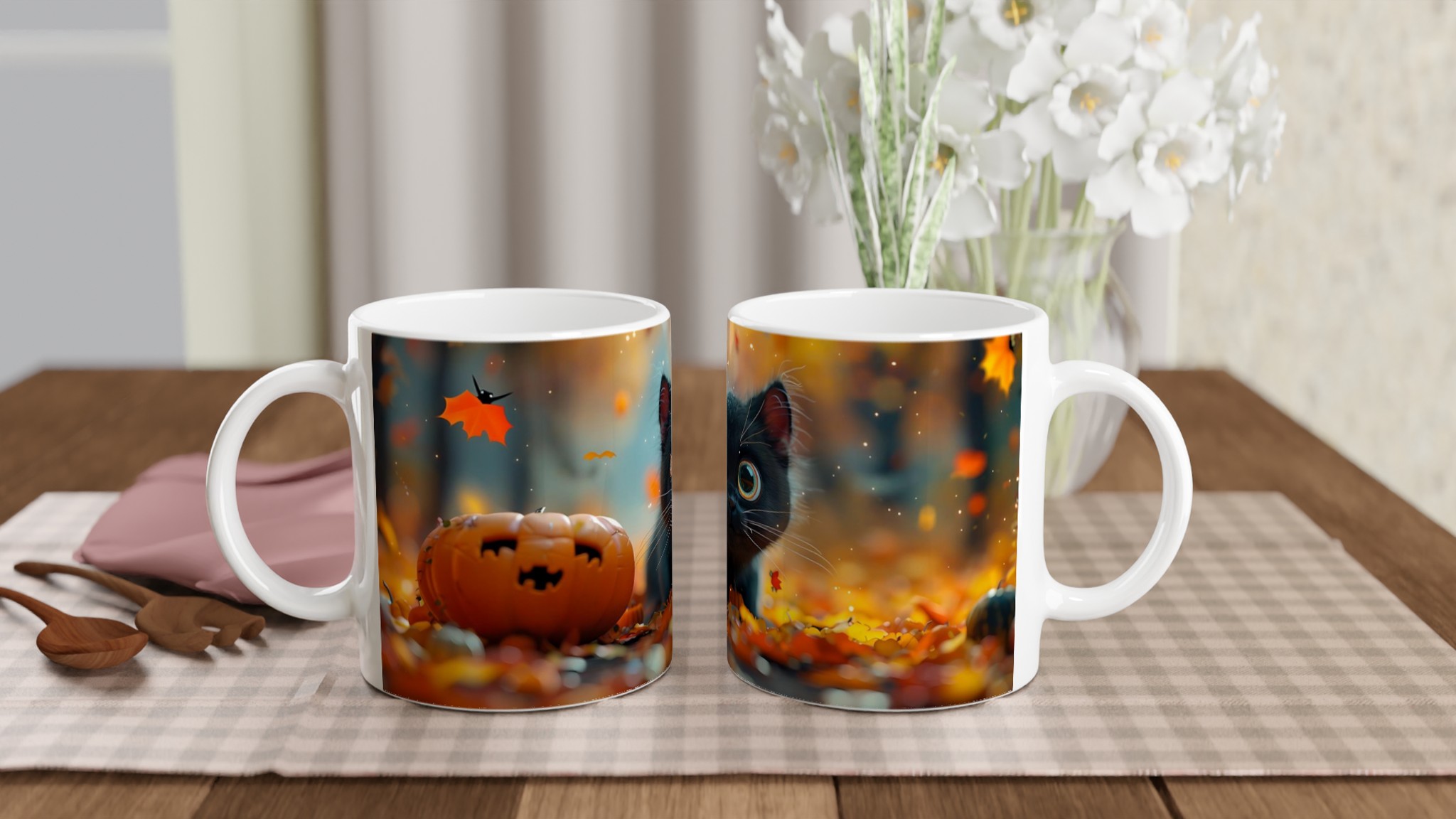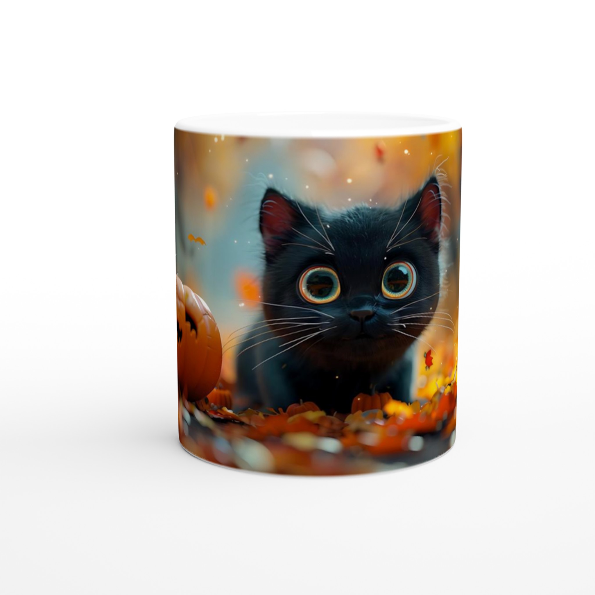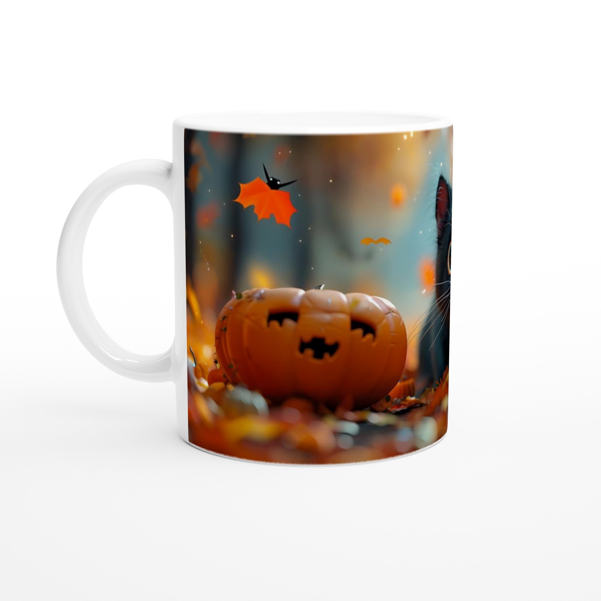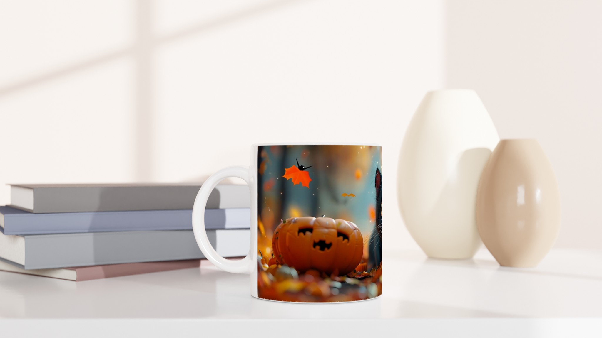 Charming Halloween Black Cat & Pumpkin Ceramic Mug – Perfect for Fall