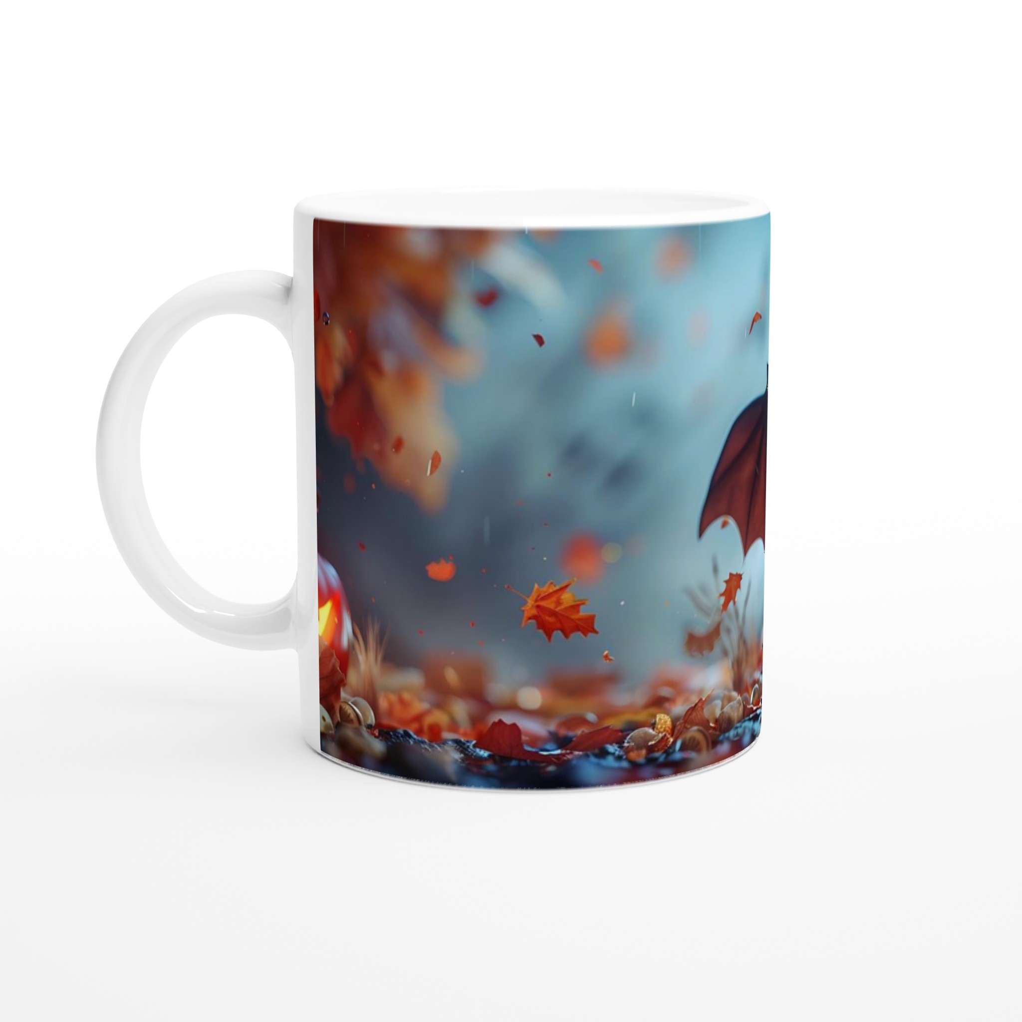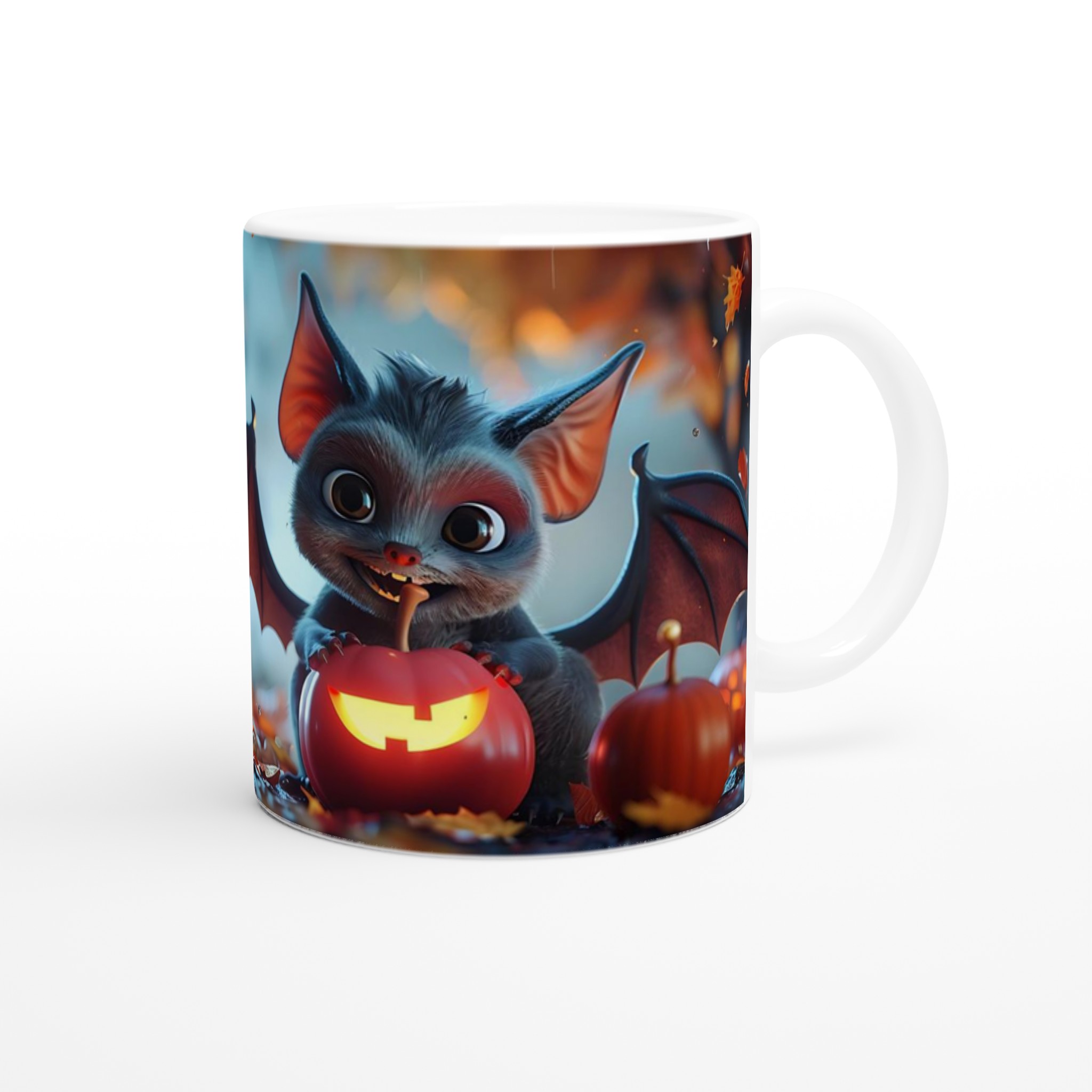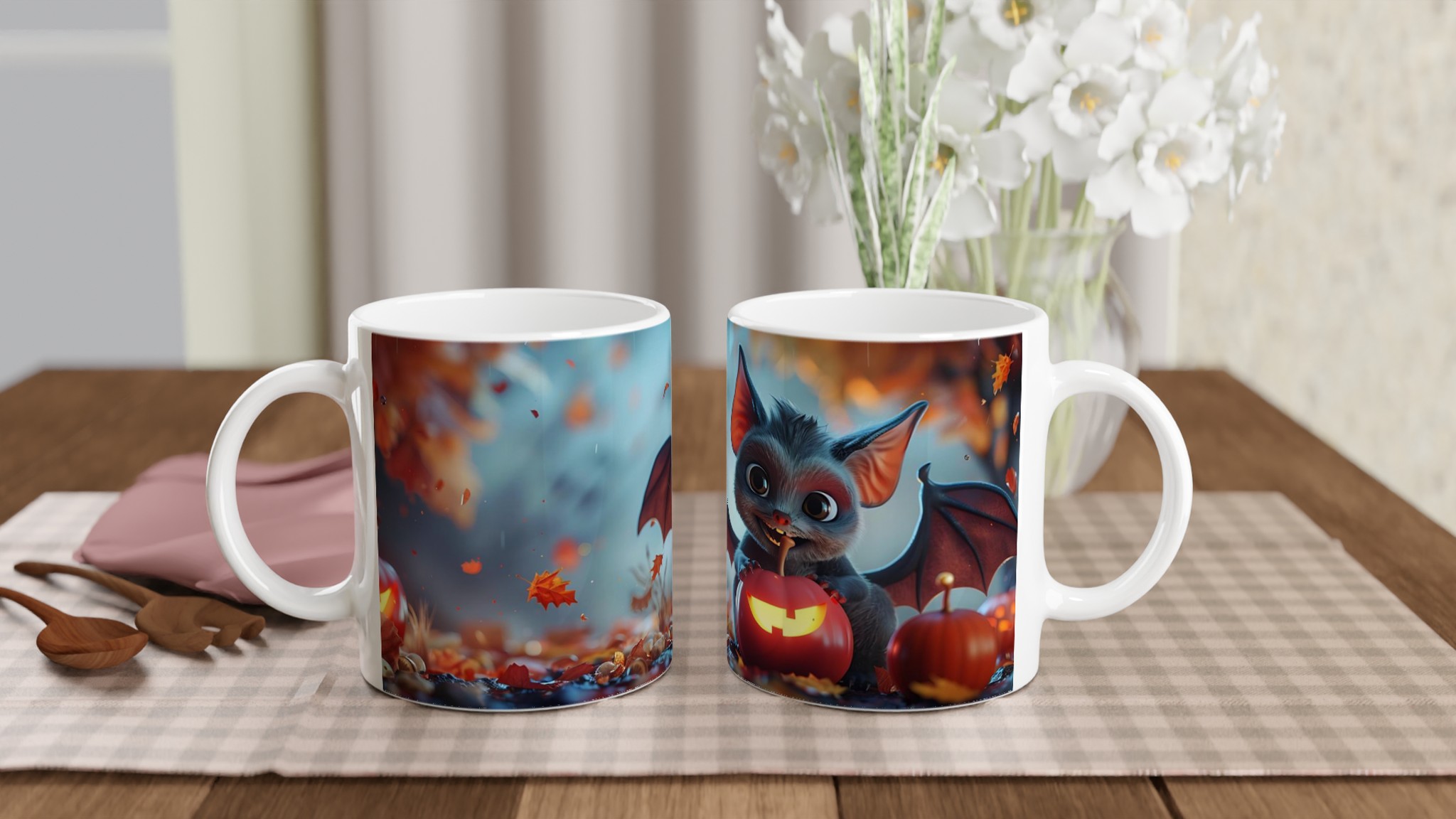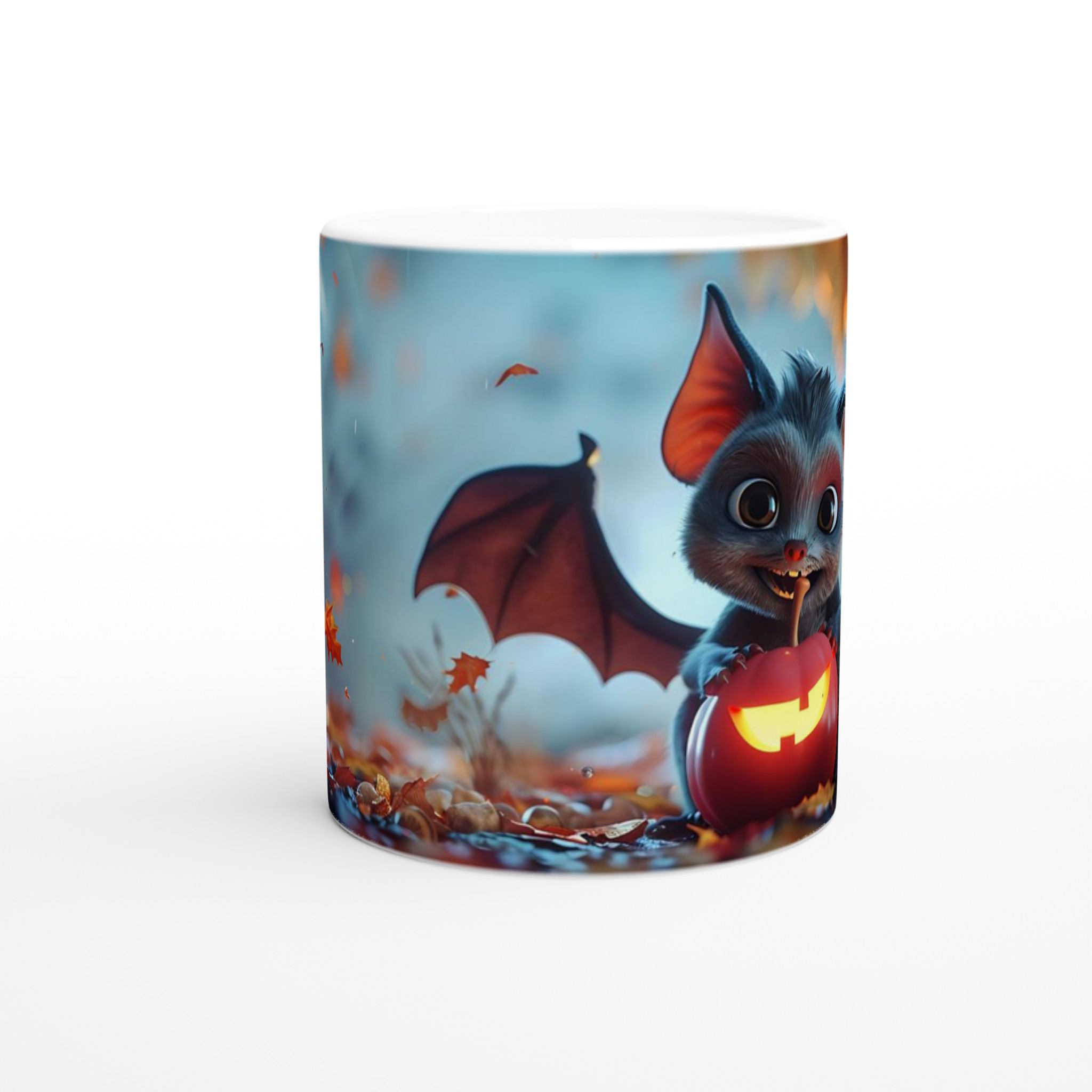 Spooky Sweet Bat & Jack-o’-Lantern 11oz Ceramic Mug – Perfect for Halloween Fun in Your Favorite Color