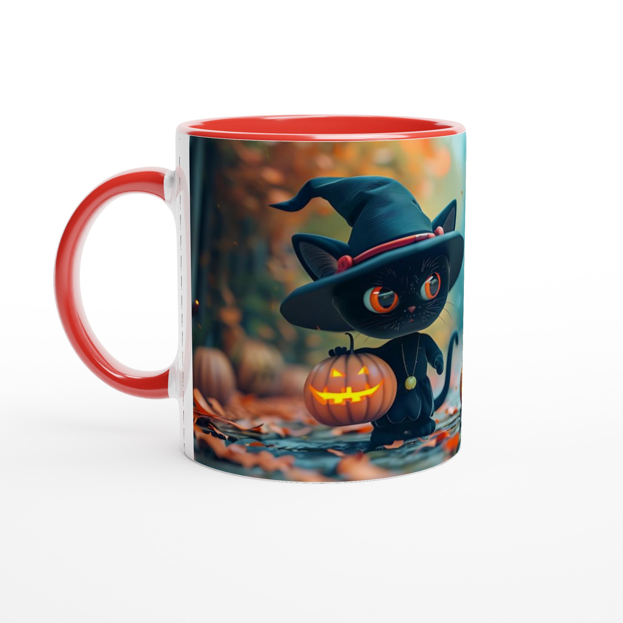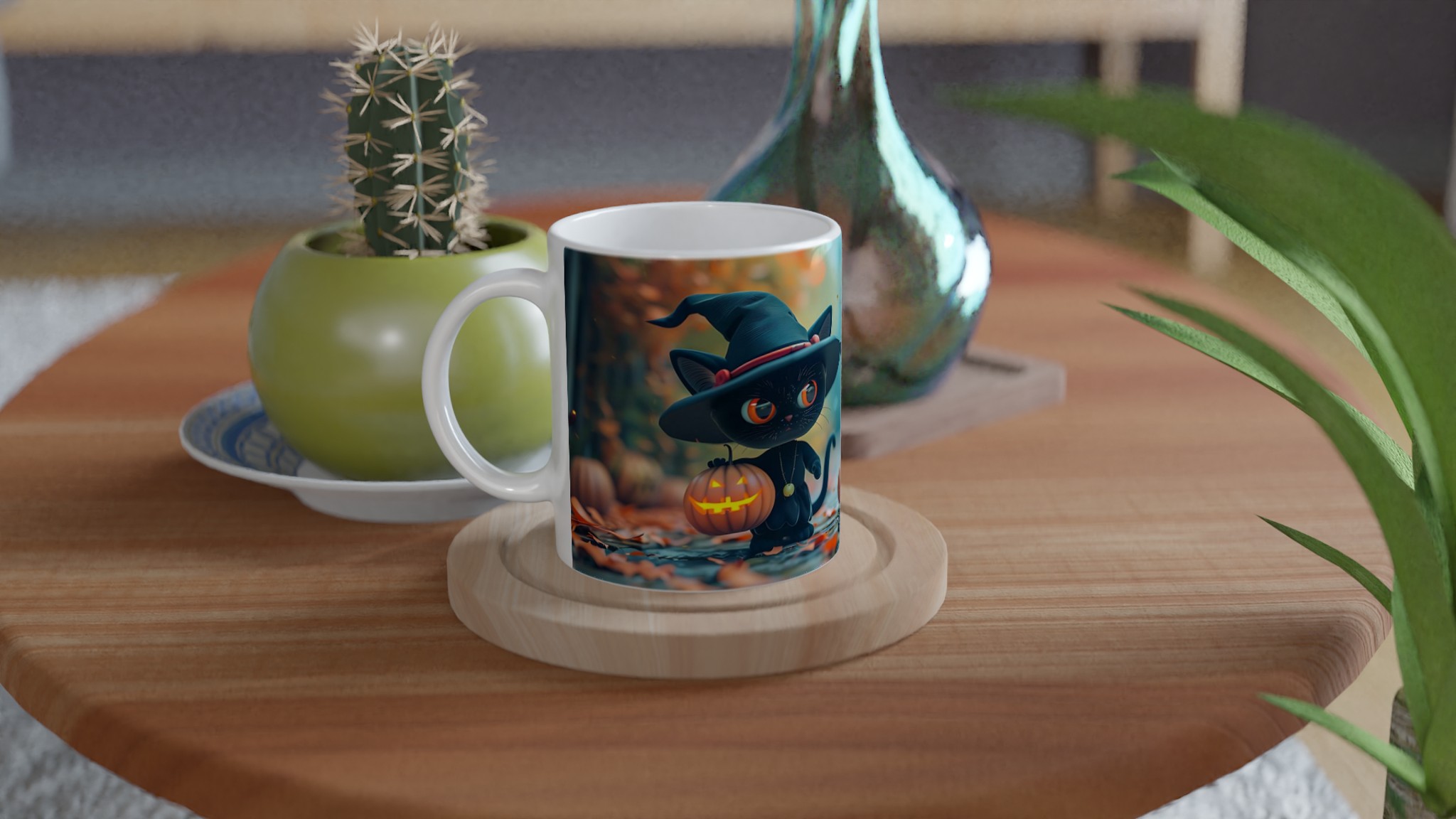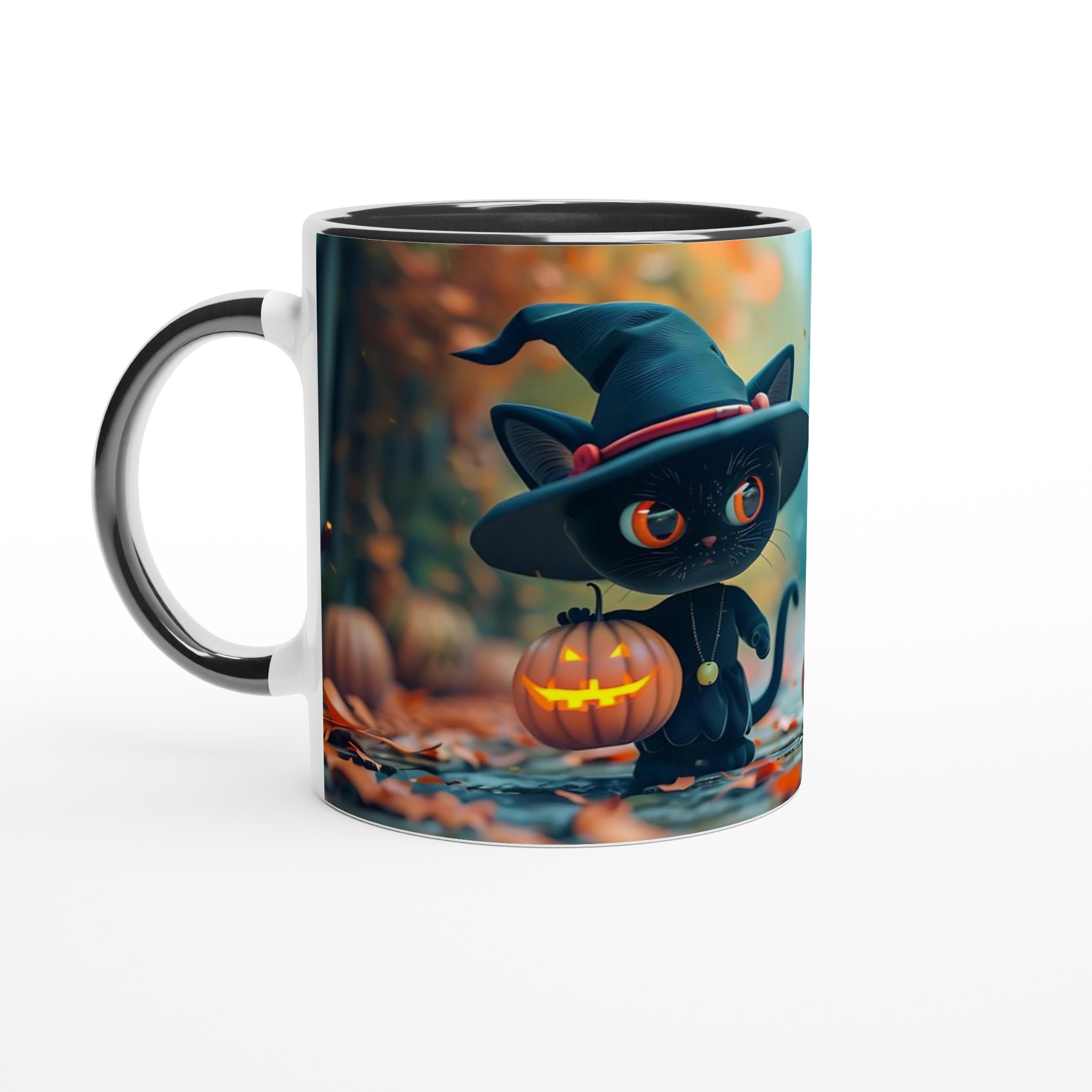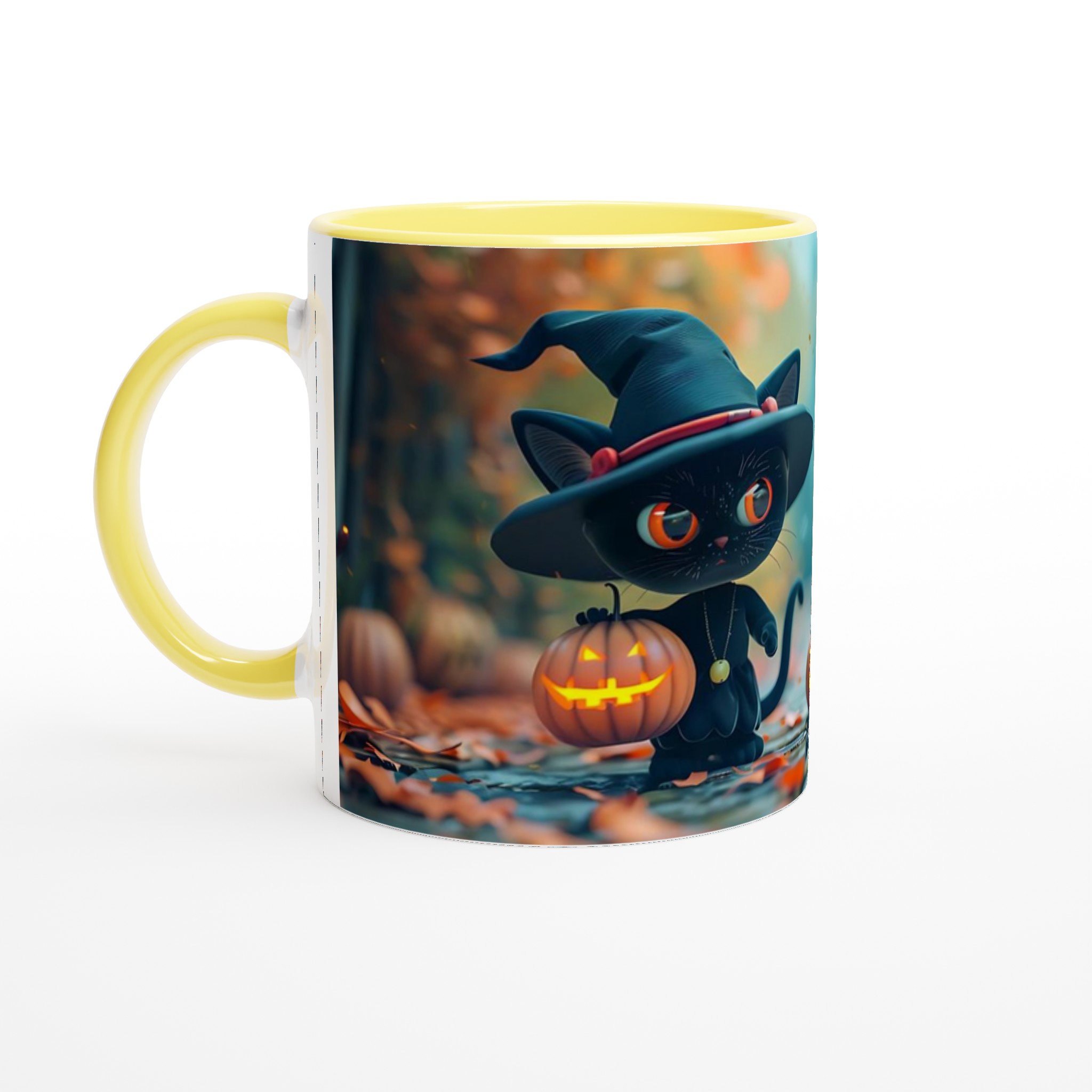 Charming Halloween Witchy Cat Ceramic Mug – Perfect for Spooky Season Sips, in Your Choice of 7 Vibrant Colors!