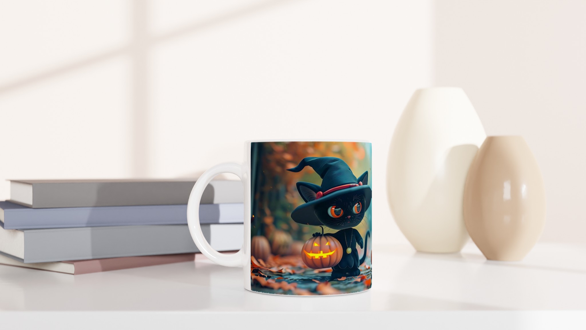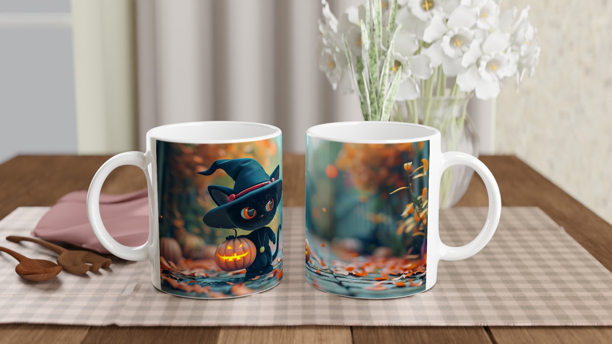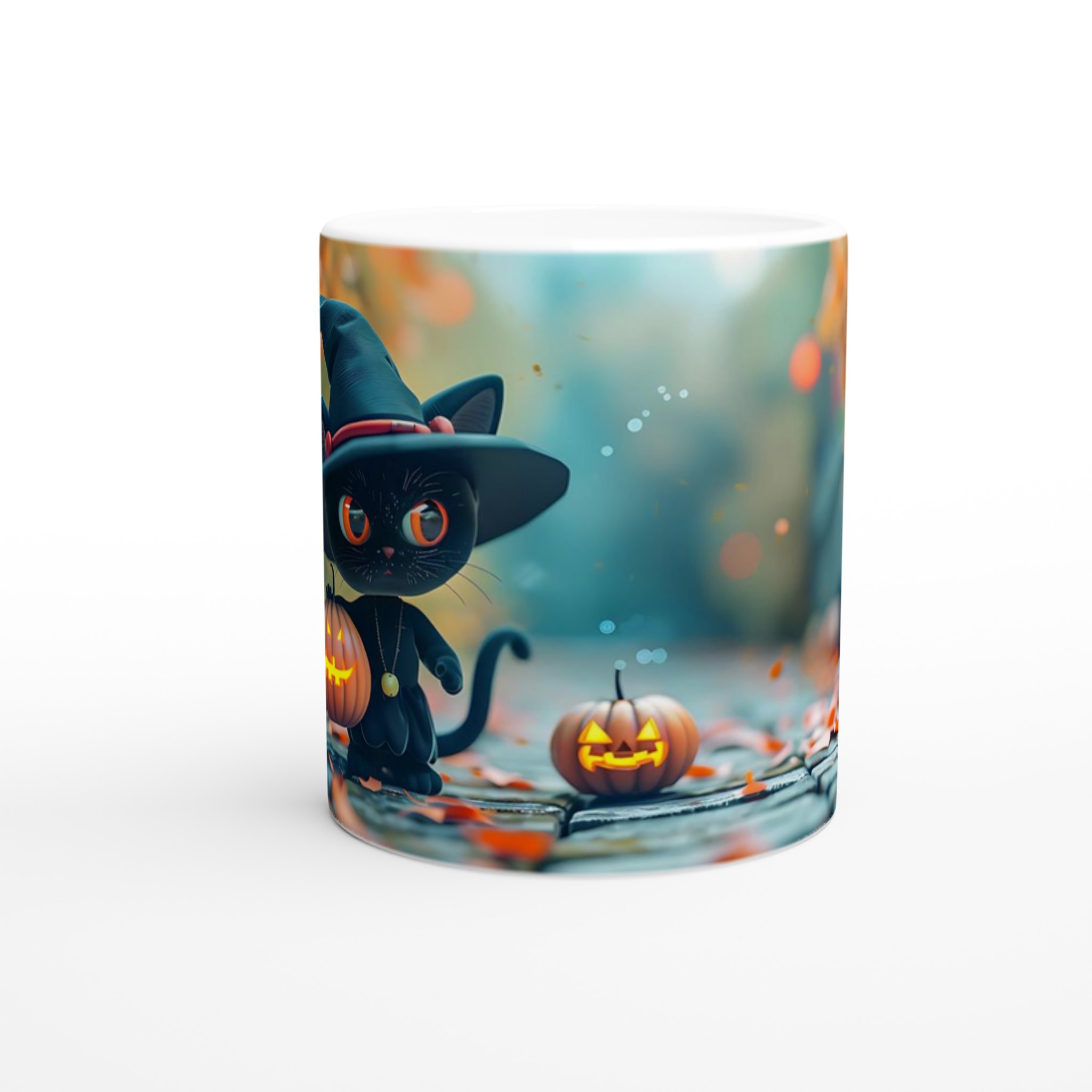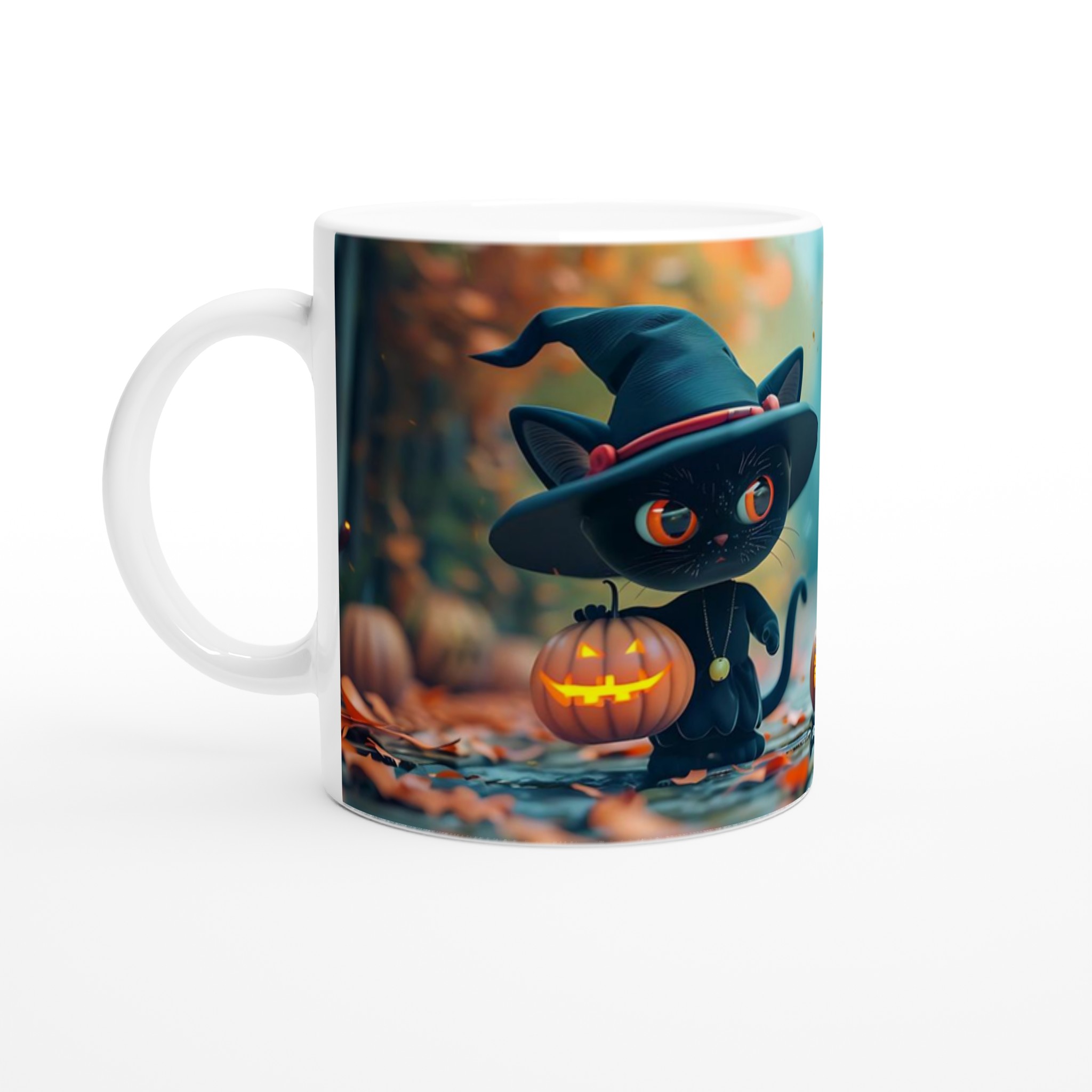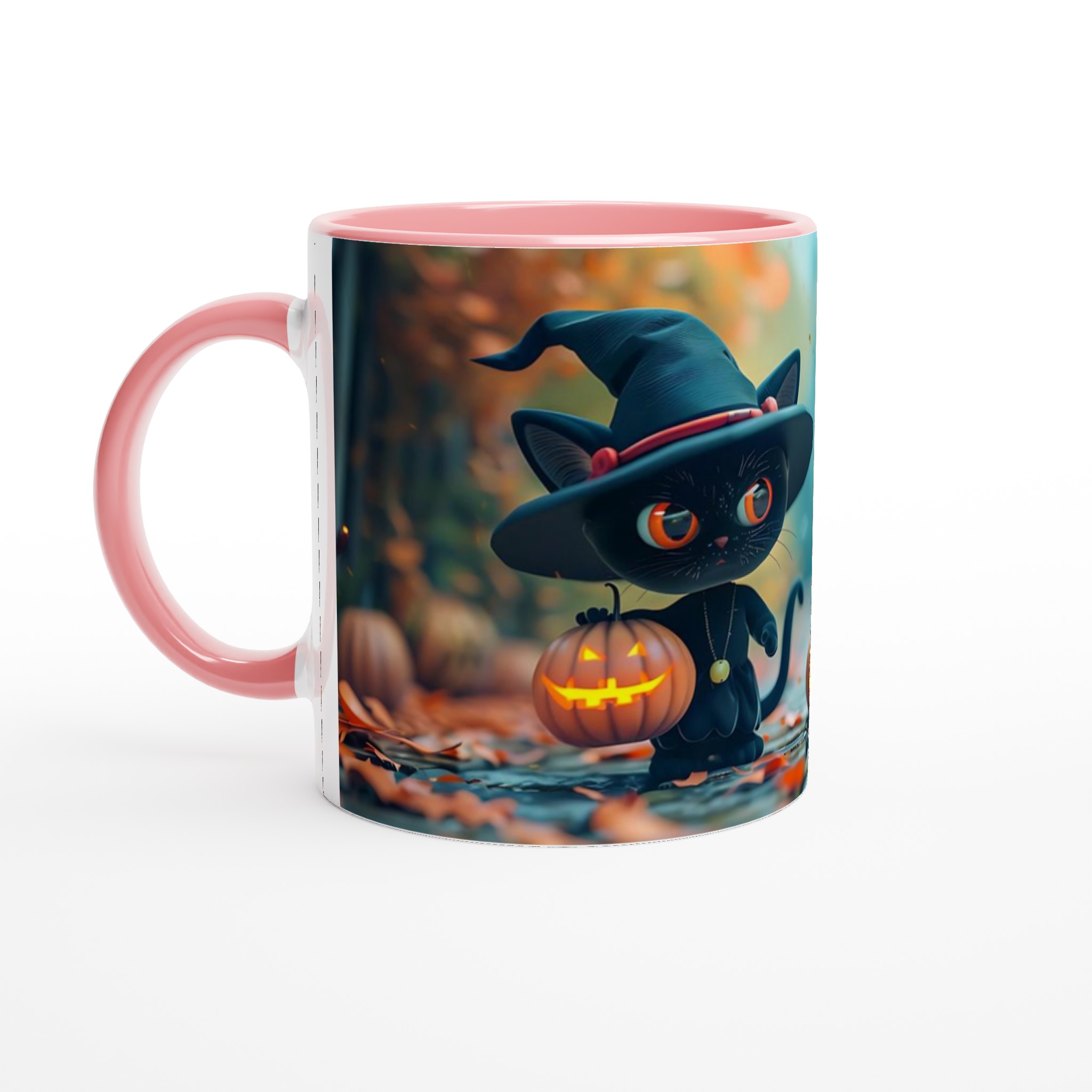Charming Halloween Witchy Cat Ceramic Mug – Perfect for Spooky Season Sips, in Your Choice of 7 Vibrant Colors!