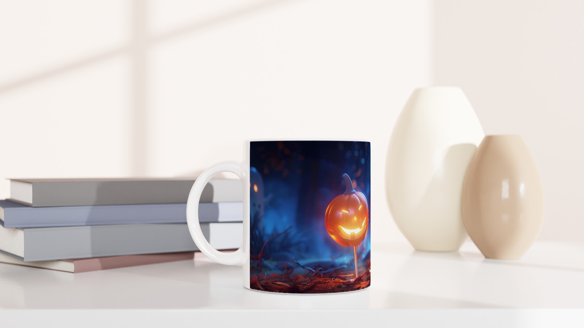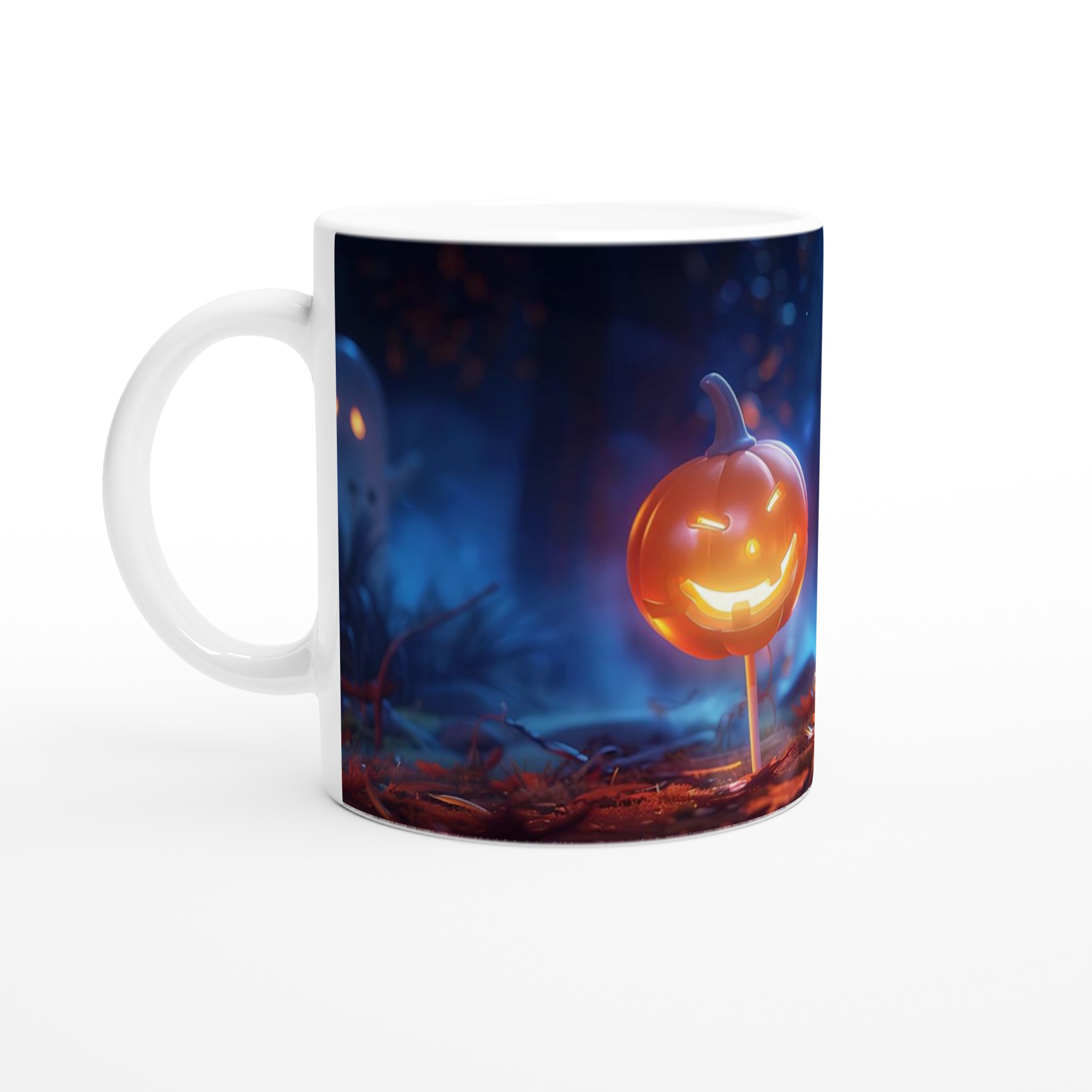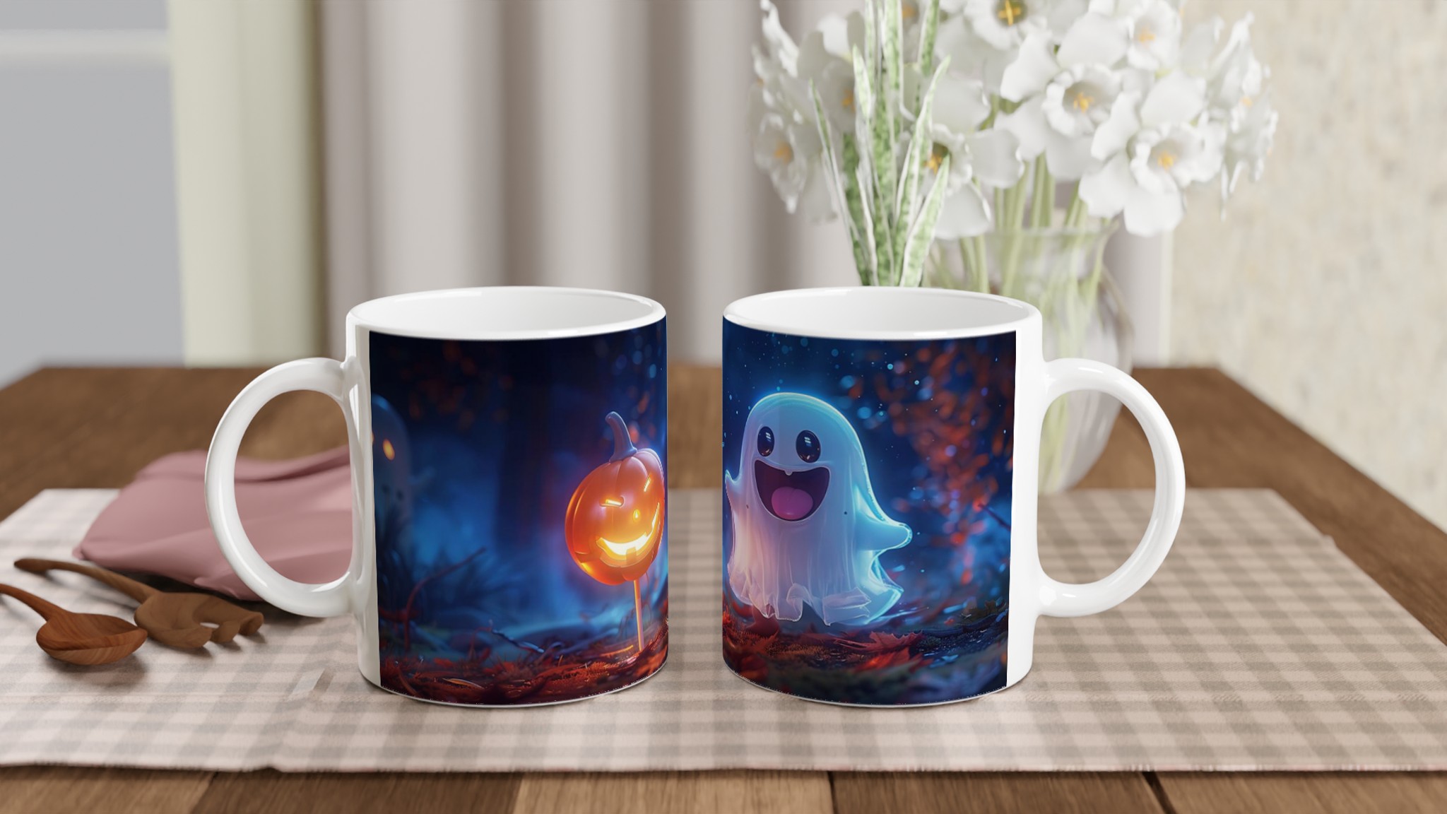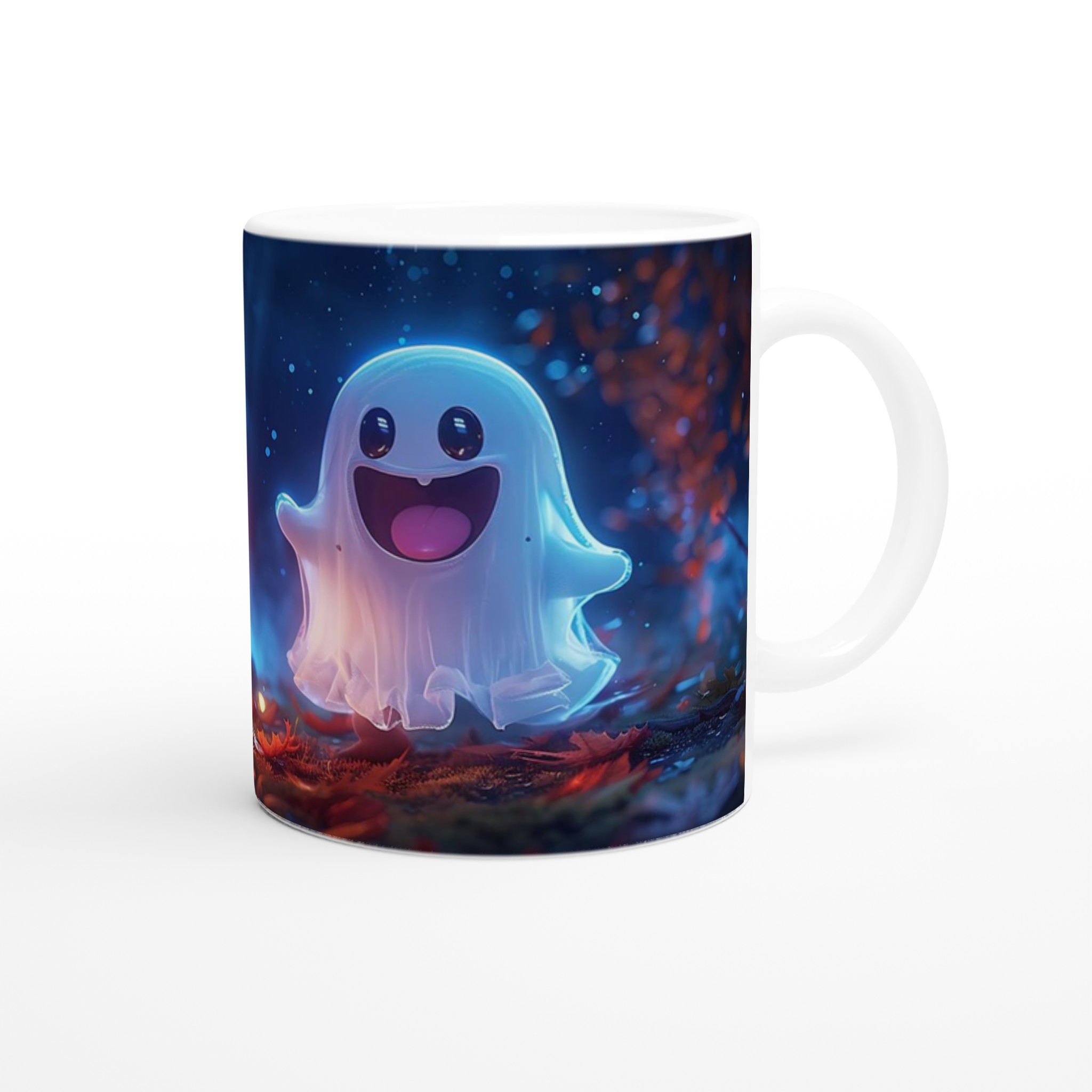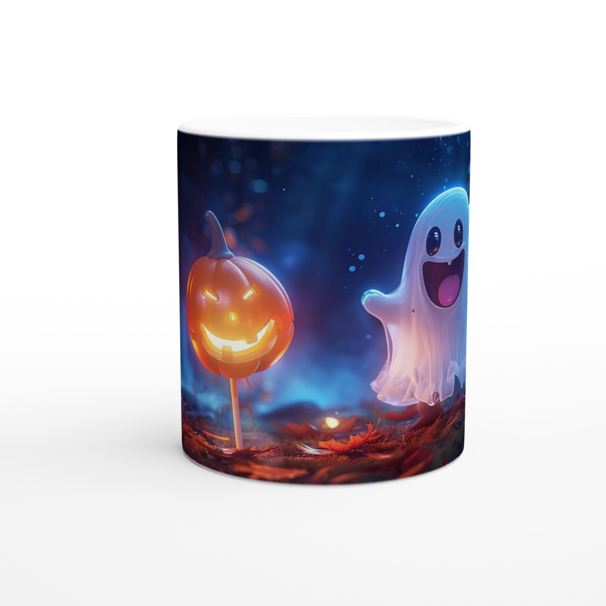 Spooky Fun Ceramic Mug: Cute Ghost & Jack-o’-Lantern Halloween Decor, 11oz Ceramic Mug in Your Choice of 7 Colors!