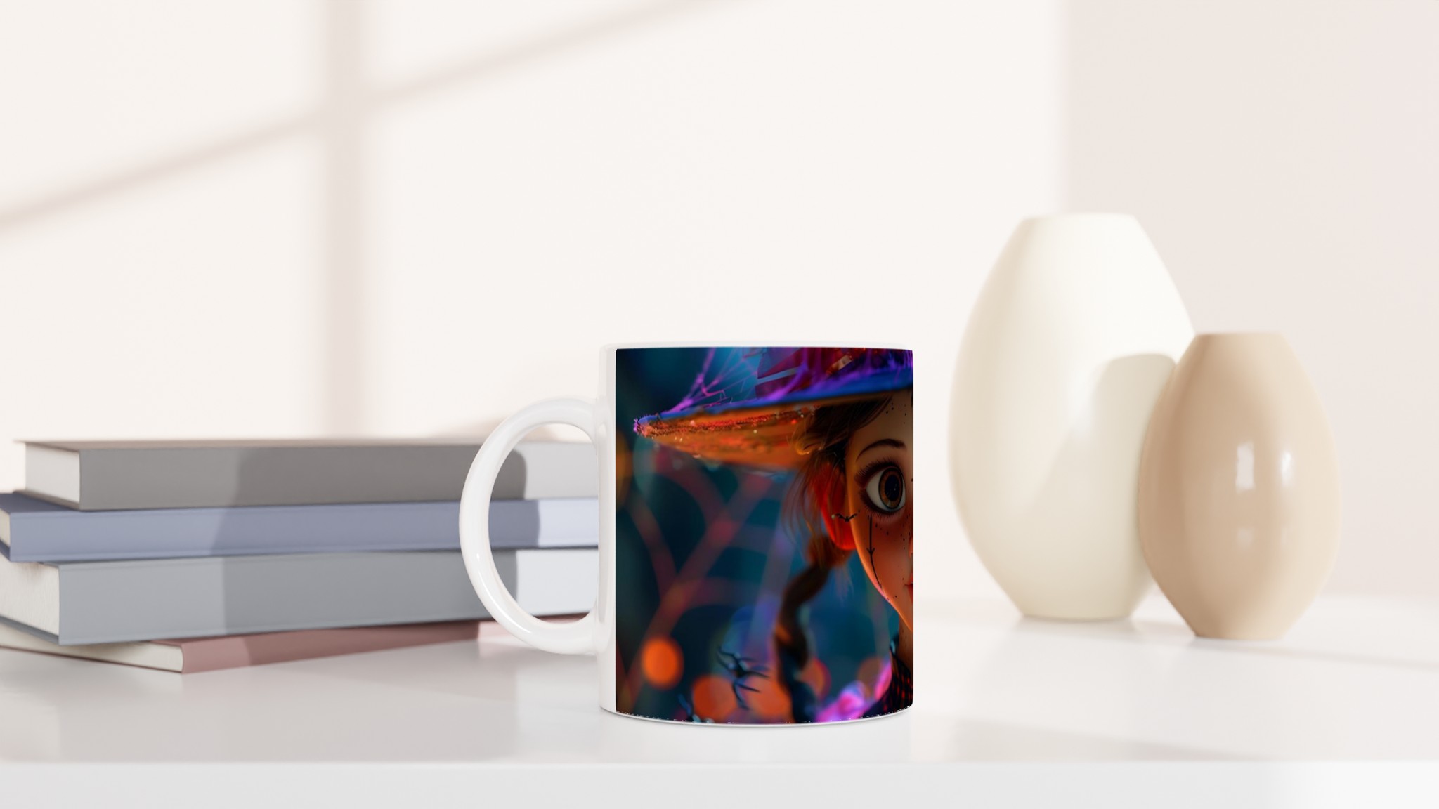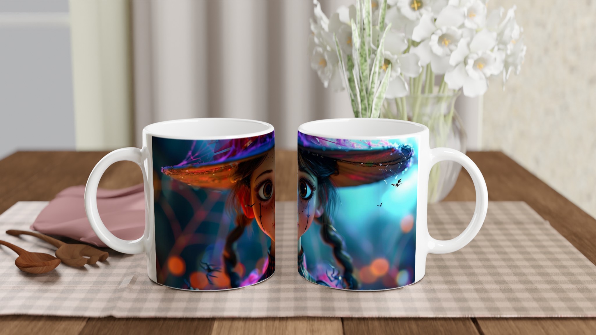 Enchanting Whimsical Witch Girl 11oz Ceramic Mug in Your Choice of Seven Magical Hues